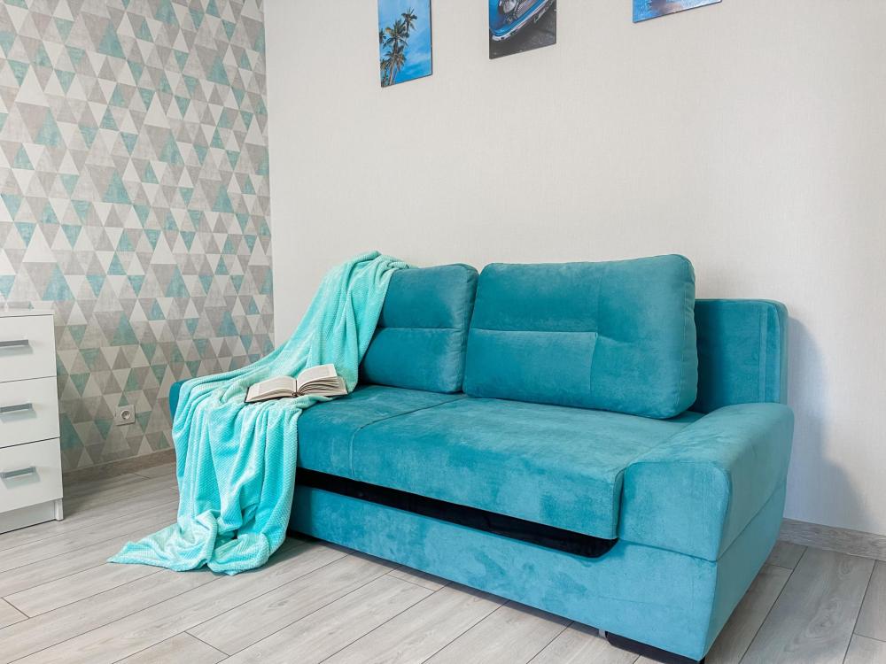 Комфортабельной кроватью 160х200 см. Заправлена чистым бельем.Раскладным диваном на 2х гостей напротив телевизор с множеством развлекательных каналов.На застекленном балконе организованна зона для отдыха.