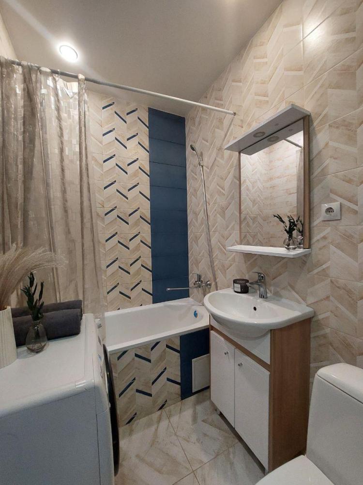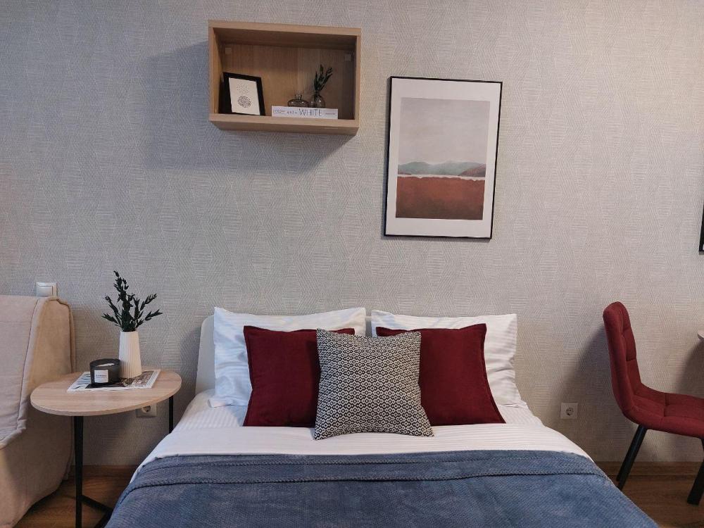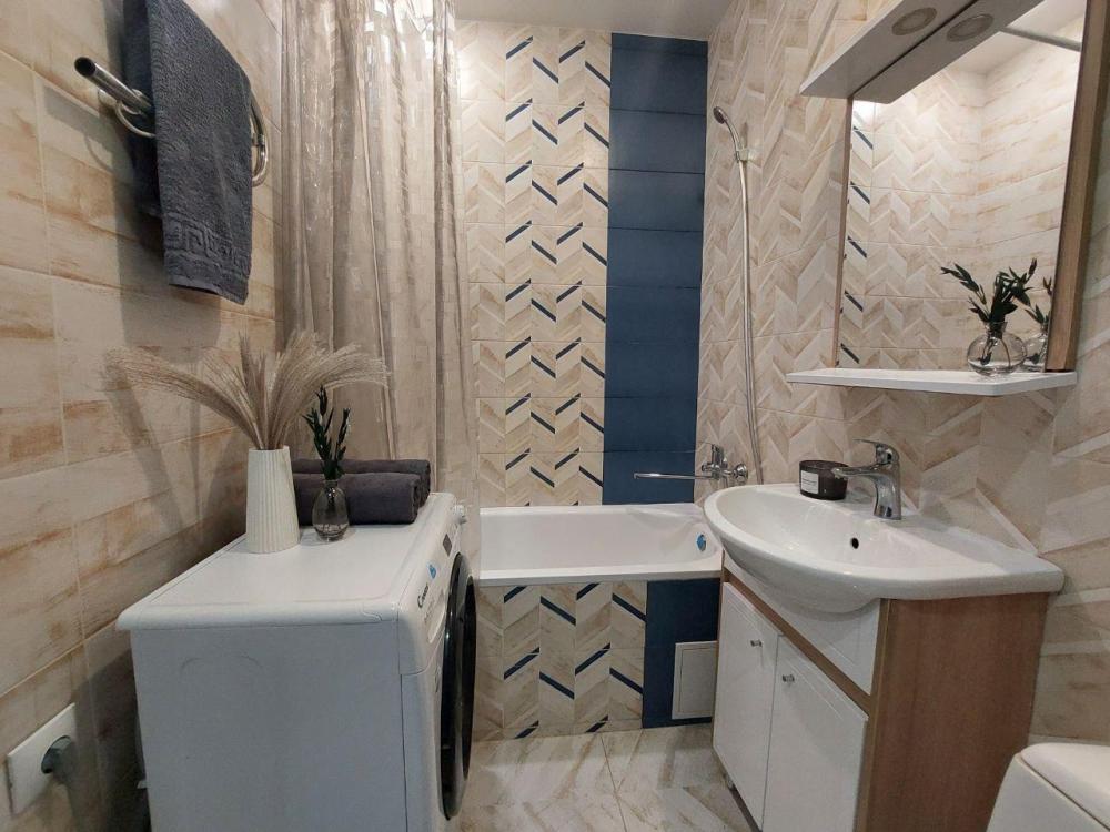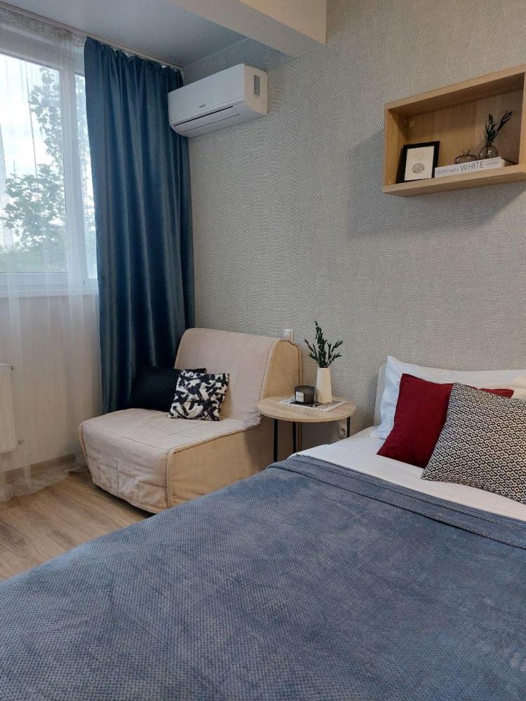 Уютные апартаменты студия с современным ремонтом. В квартире есть все необходимое для удобства: двуспальная кровать, раскладное кресло-кровать, мебель и техника, TV и сплит-система, беспроводной интернет, стиральная машина, микроволновка, холодильник, плита. Санузел с ванной и стиральной машиной.