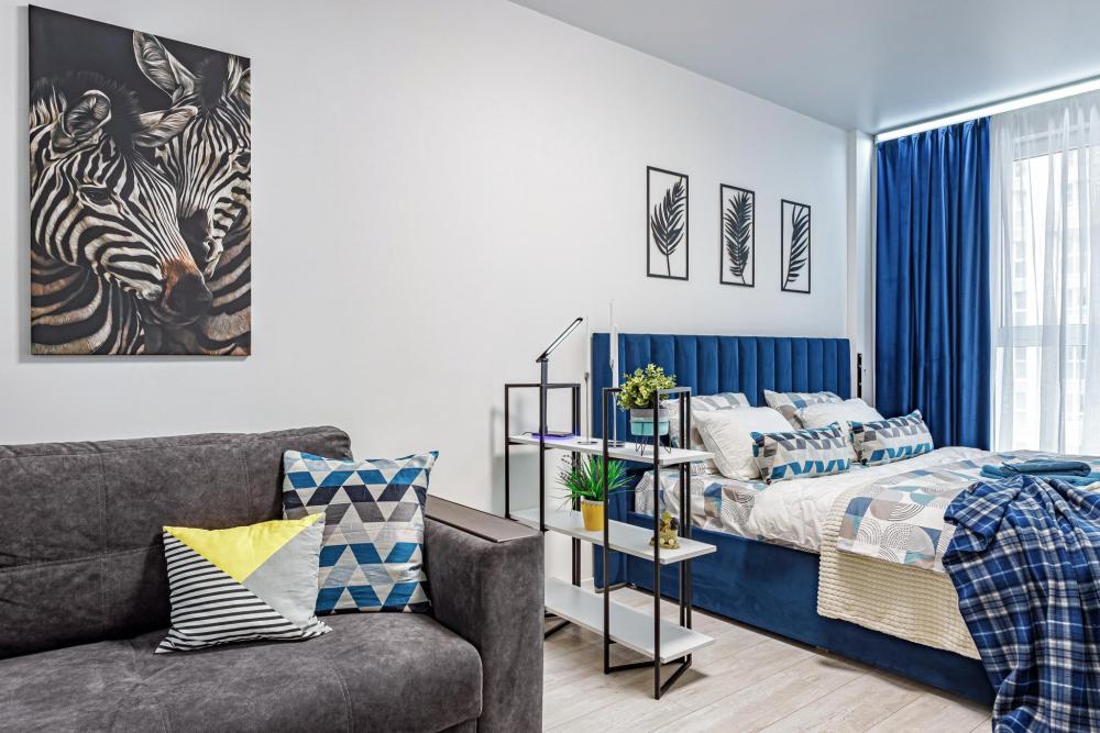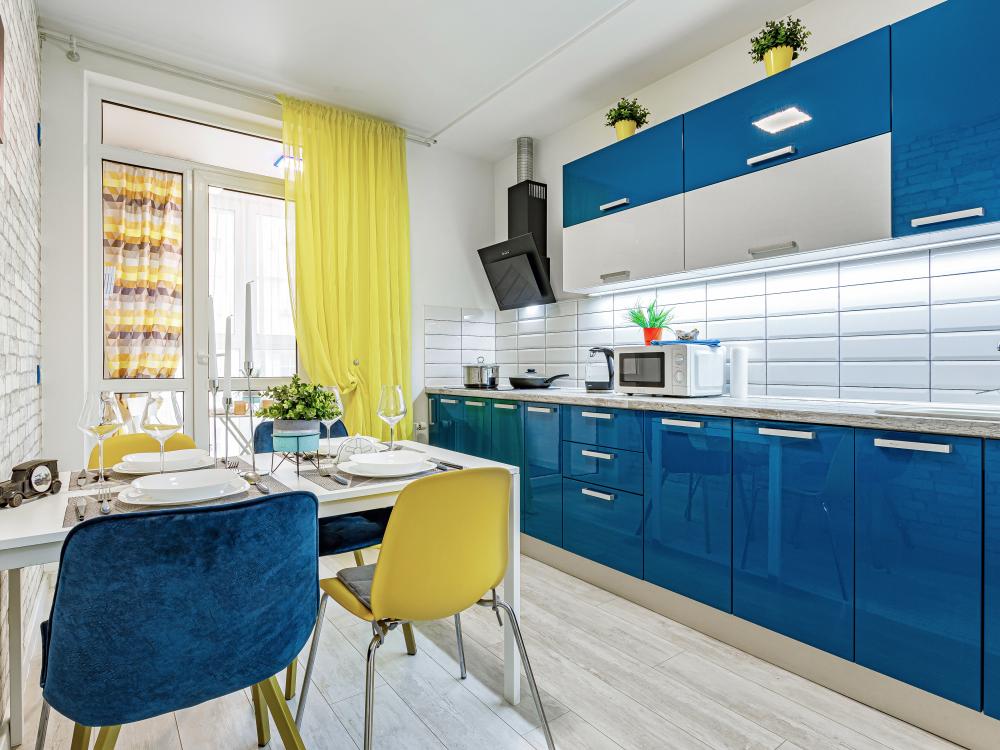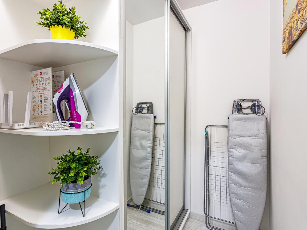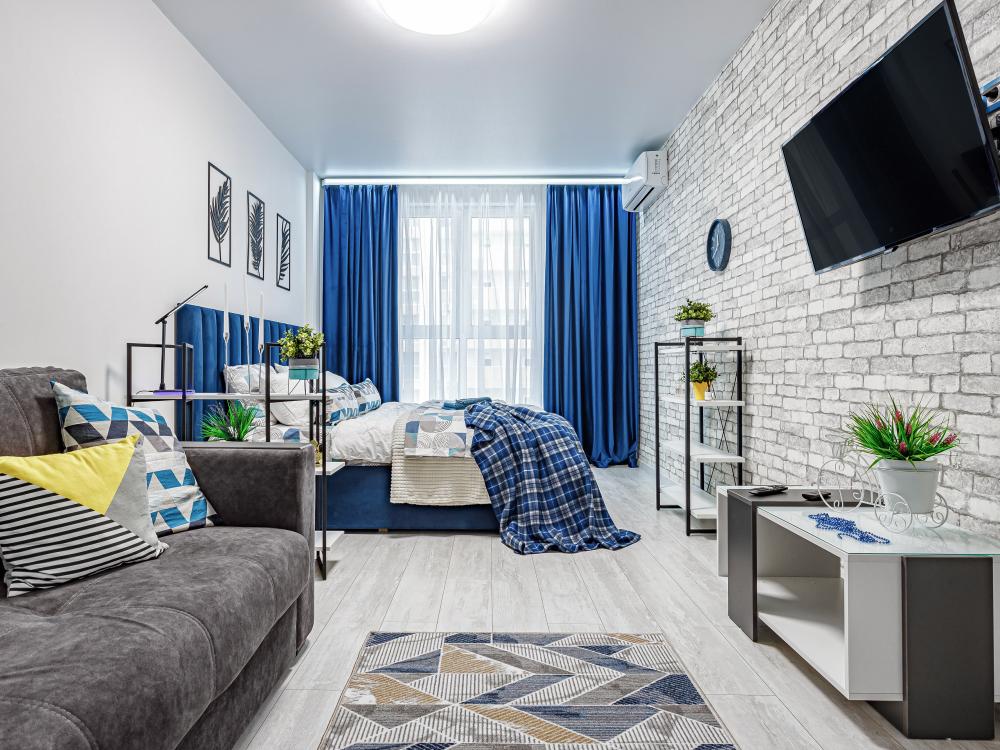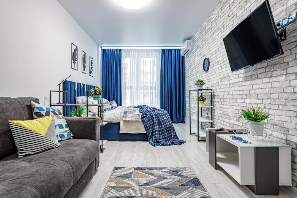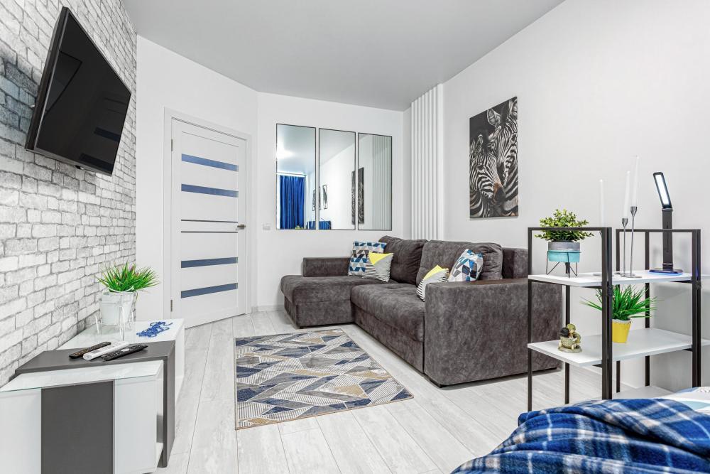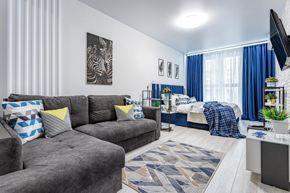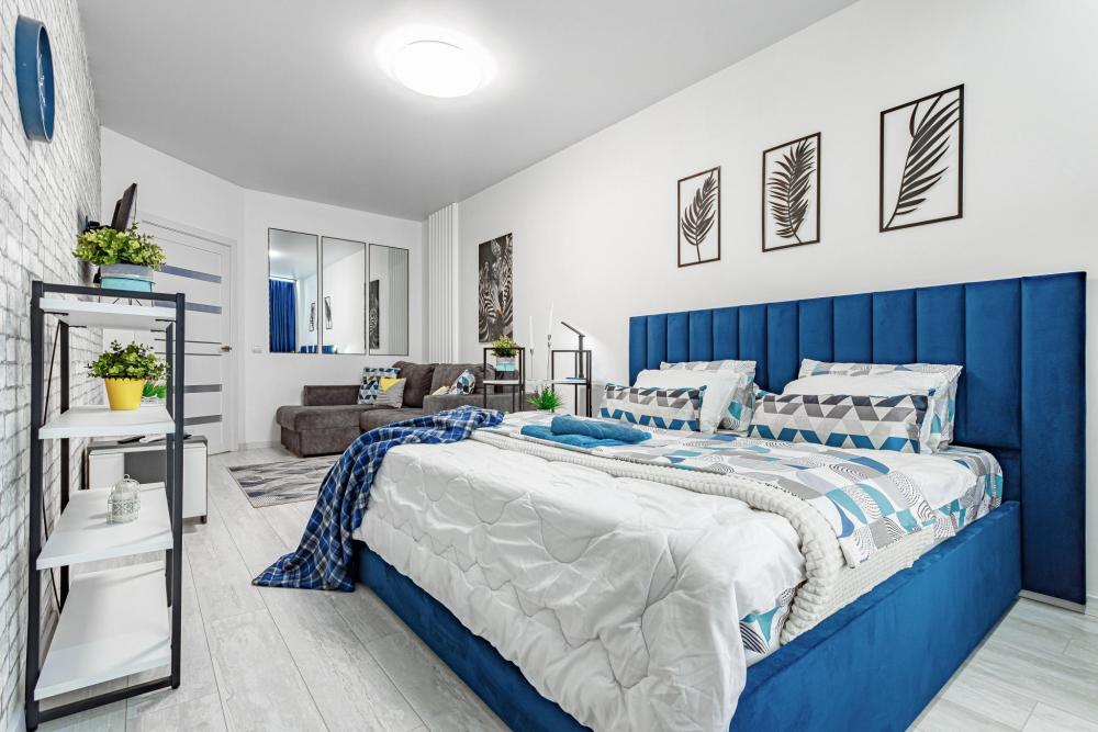 В квартире новый ремонт и идеальная чистота. Удобное размещение до 4 гостей. В квартире имеется все необходимое для комфортного проживания : большая двуспальная кровать King Size с ортопедическим матрасом, большой угловой двуспальный раскладной диван, оборудованная техникой и посудой кухня, ванная комната, утюг, гладильная доска, постельное белье и полотенца.