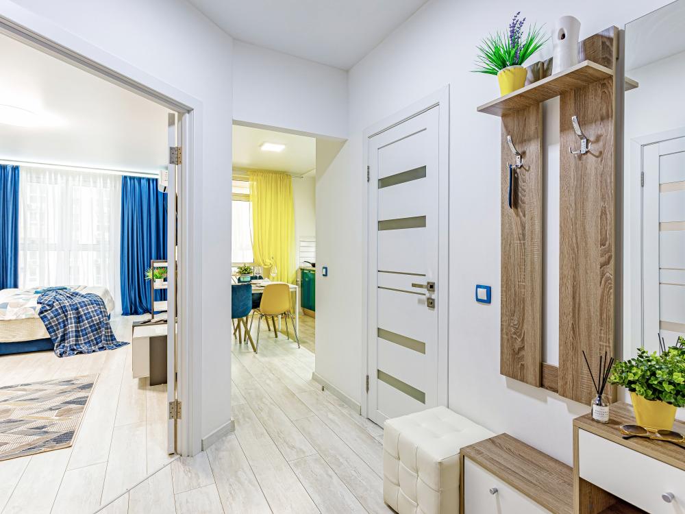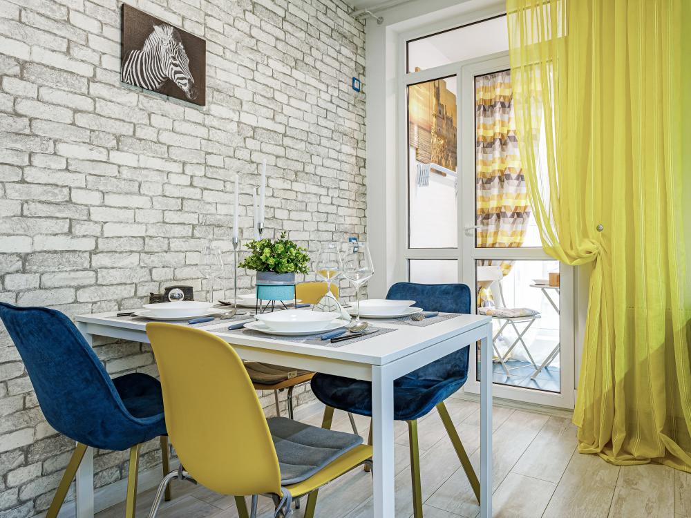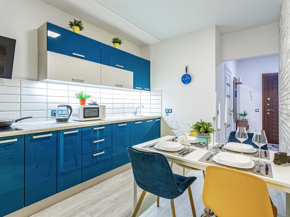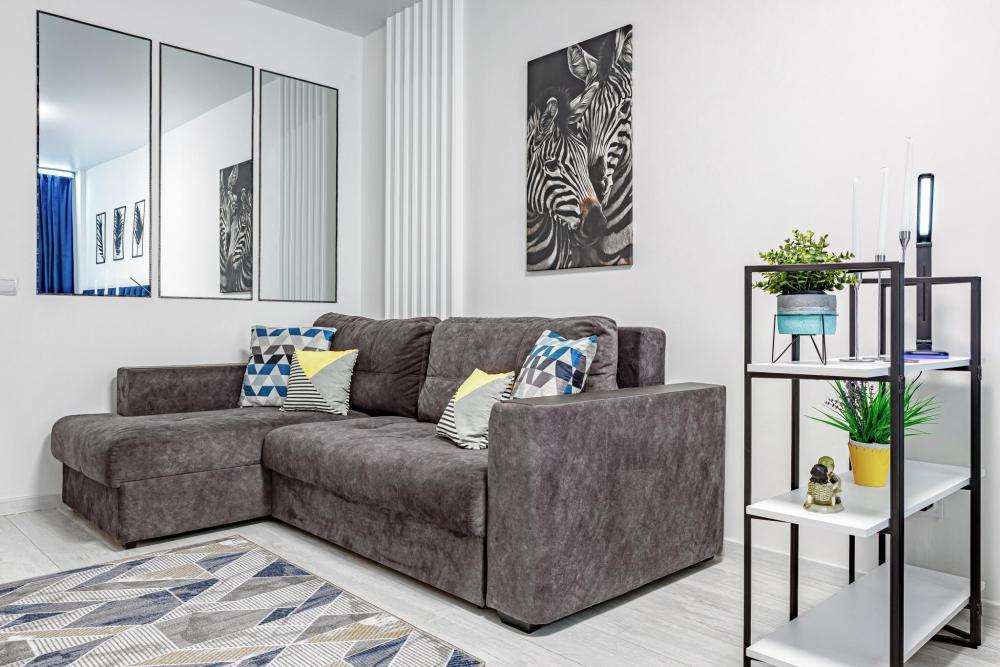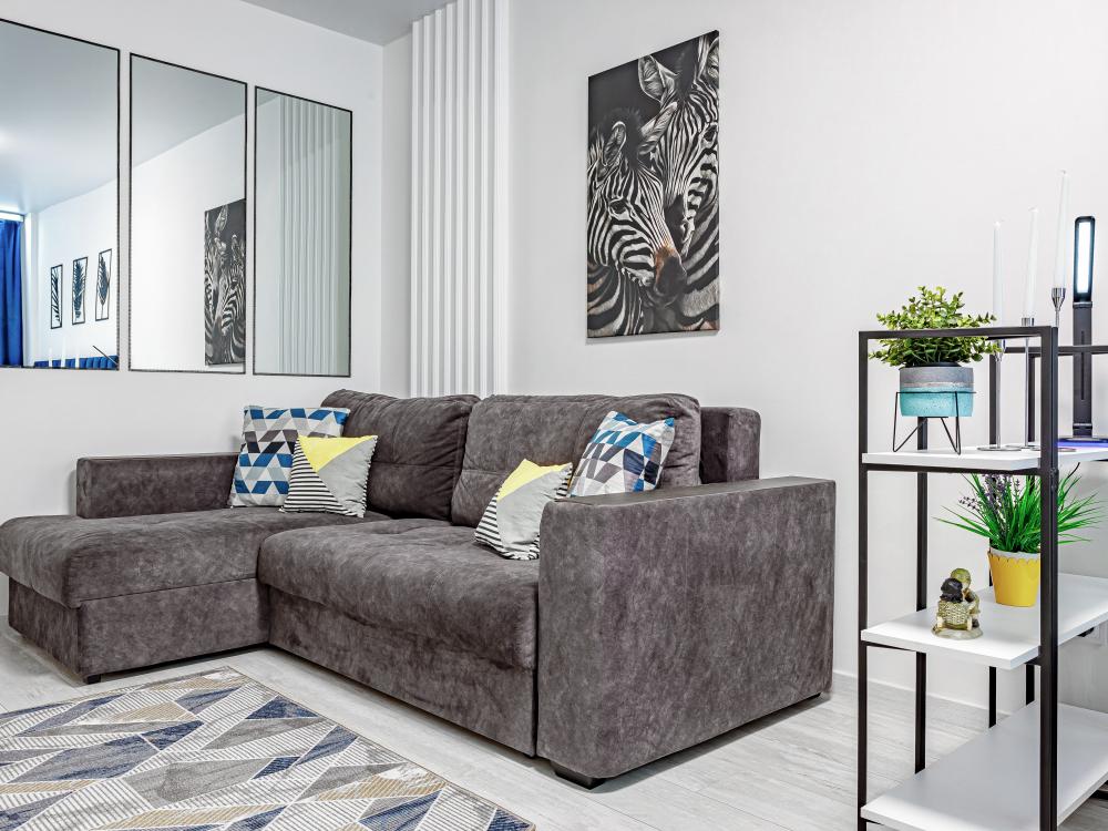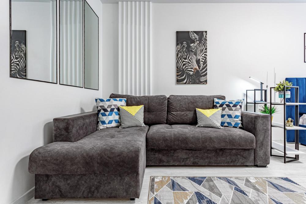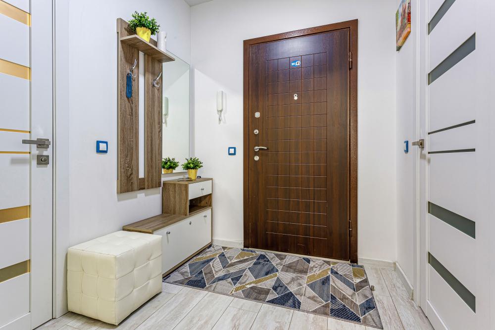 В квартире новый ремонт и идеальная чистота. Удобное размещение до 4 гостей. В квартире имеется все необходимое для комфортного проживания : большая двуспальная кровать King Size с ортопедическим матрасом, большой угловой двуспальный раскладной диван, оборудованная техникой и посудой кухня, ванная комната, утюг, гладильная доска, постельное белье и полотенца.