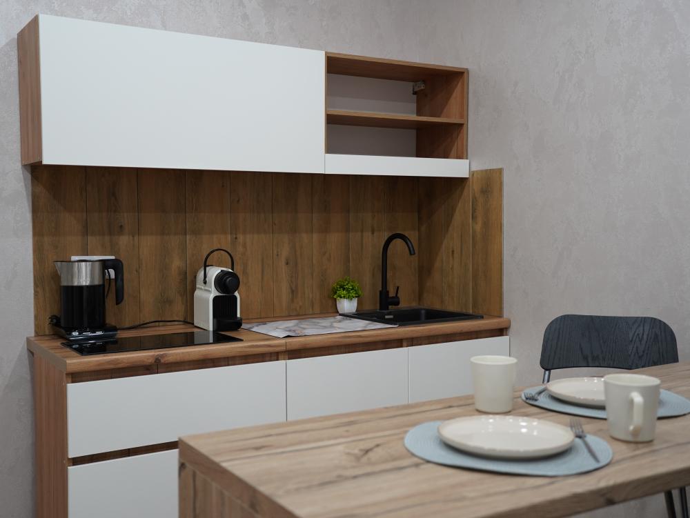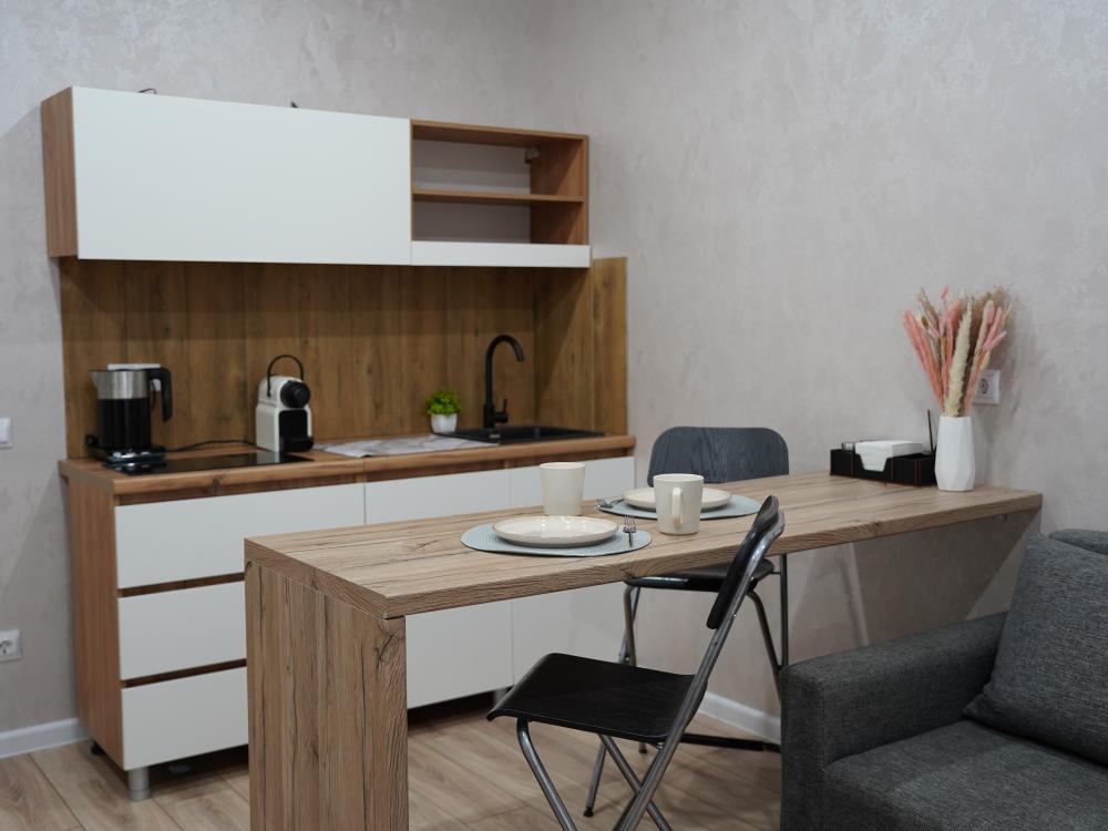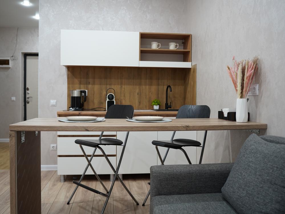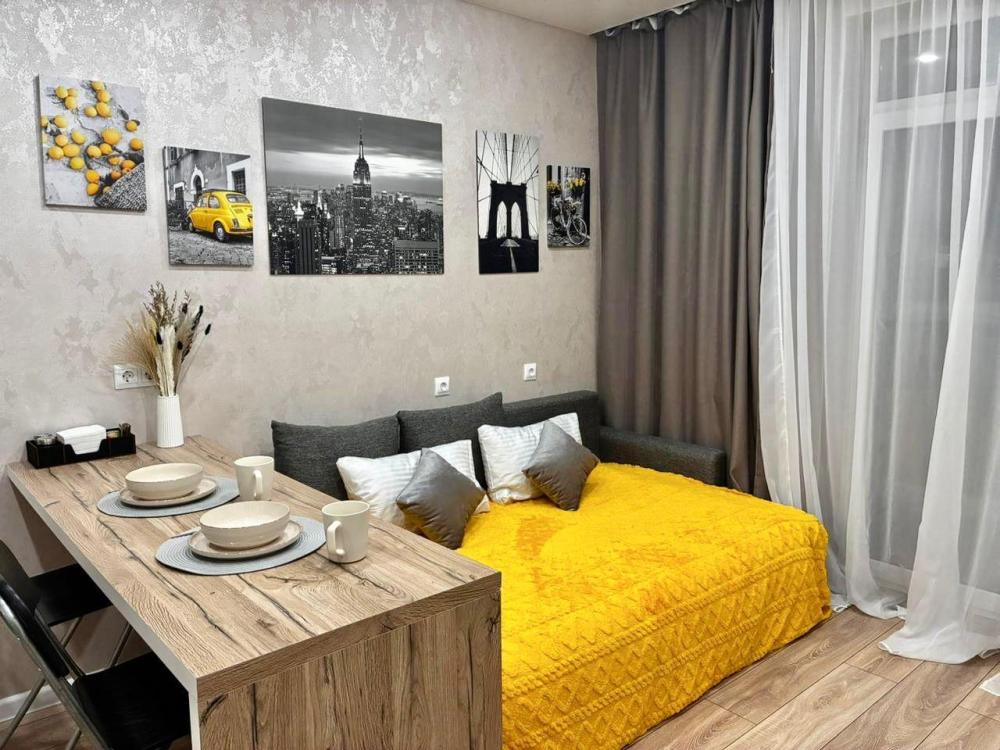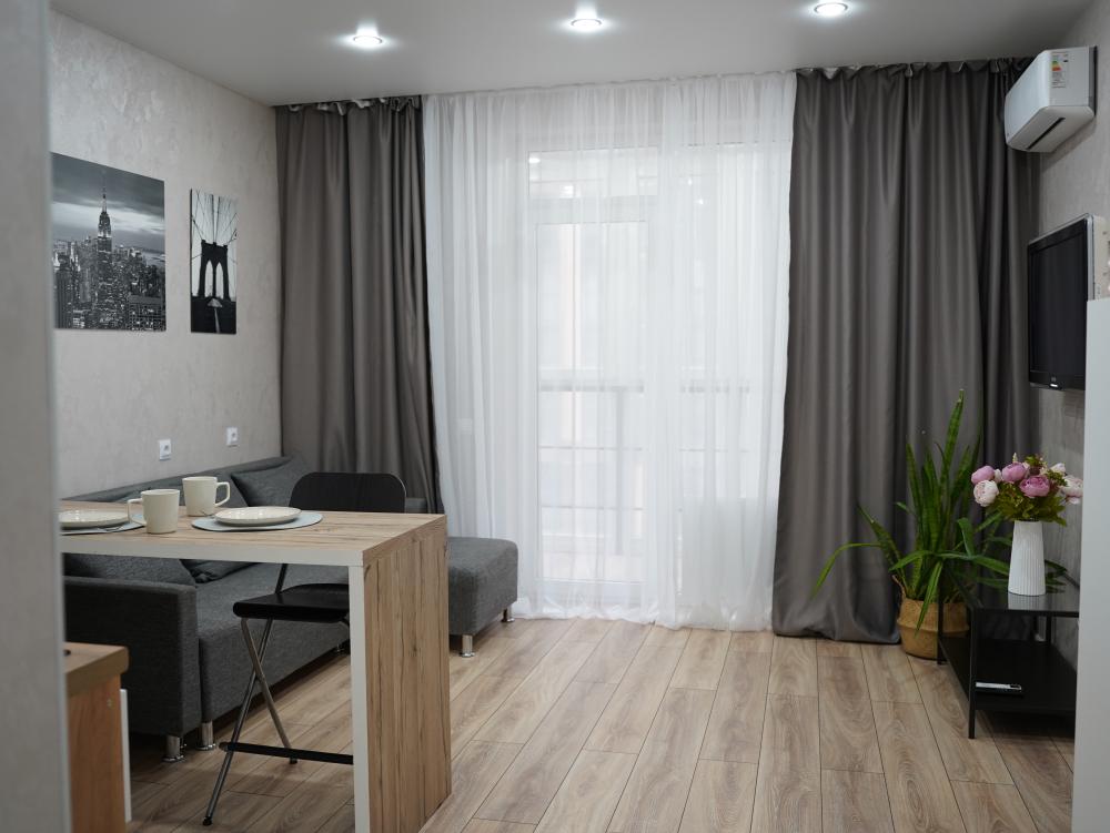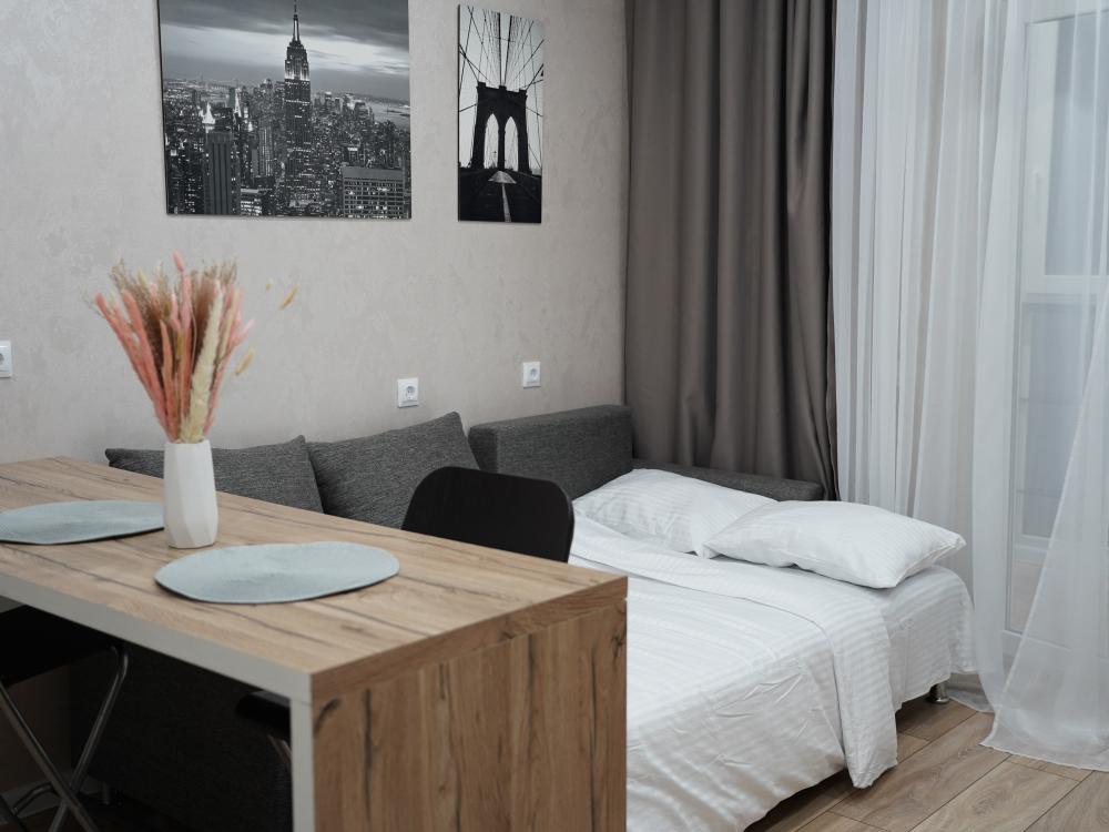 В апартаментах имеется все необходимое для комфортного проживания : раскладной диван, Wi-Fi, постельное бельё, полотенца, туалетные принадлежности, телевизор, холодильник, плита, кухонная посуда.