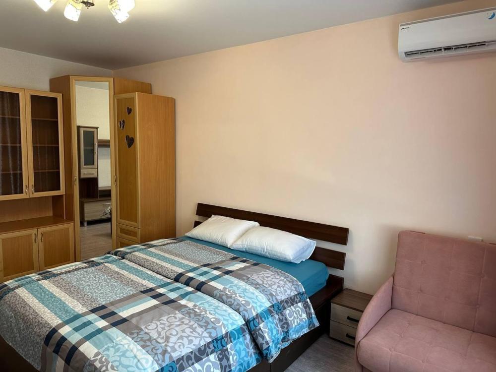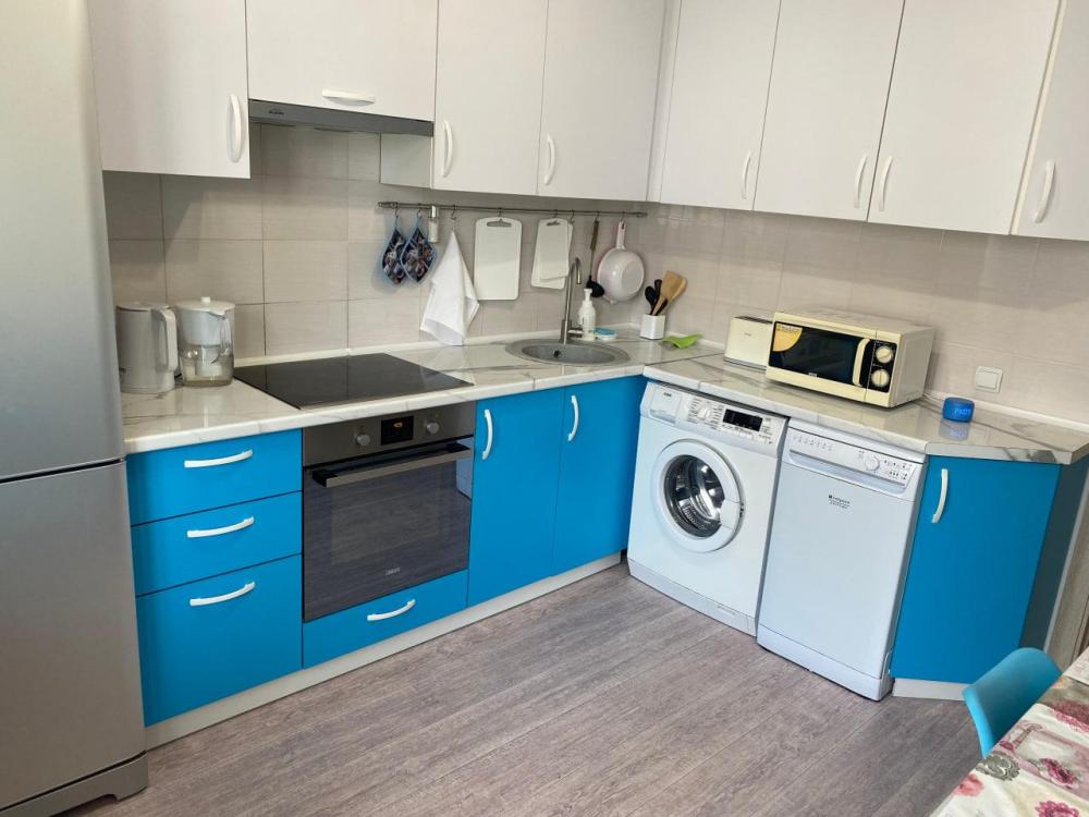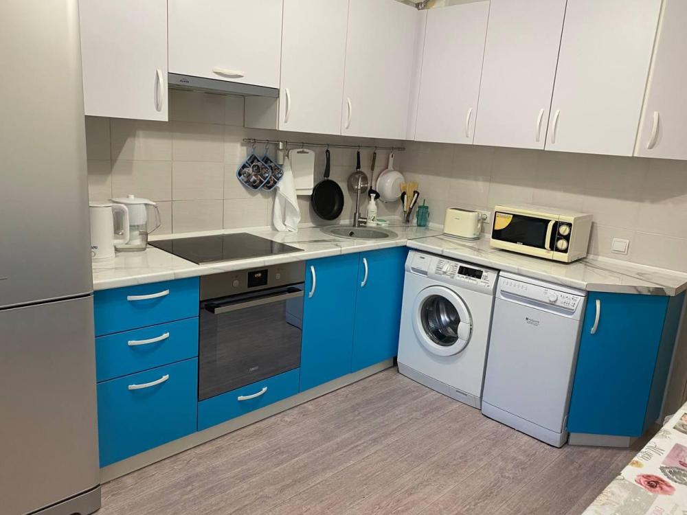 Есть всё необходимое: 2 кондиционера, стиральная и посудомоечная машинки, холодильник, духовая и варочная панель, микроволновая печь, тостер и чайник, гладильная доска и утюг, фен, сушилки для белья, тапочки и средства гигиены, кувшин для питьевой воды, постельное белье и полотенца на каждого гостя, шкафы для хранения вещей и зеркало в полный рост, продукты первой необходимости, а также бойлер на случай отключения воды. Двуспальная кровать с ортопедическим матрасом 160х200, раскладное кресло 80х200, диван-кровать 90х200, раскладной диван 140х200 Для приятного проведения досуга есть телевидение, Wi-fi, Яндекс станция Алиса и доска для рисования.