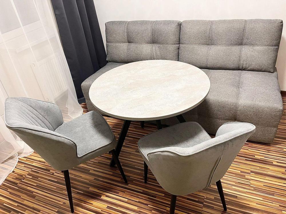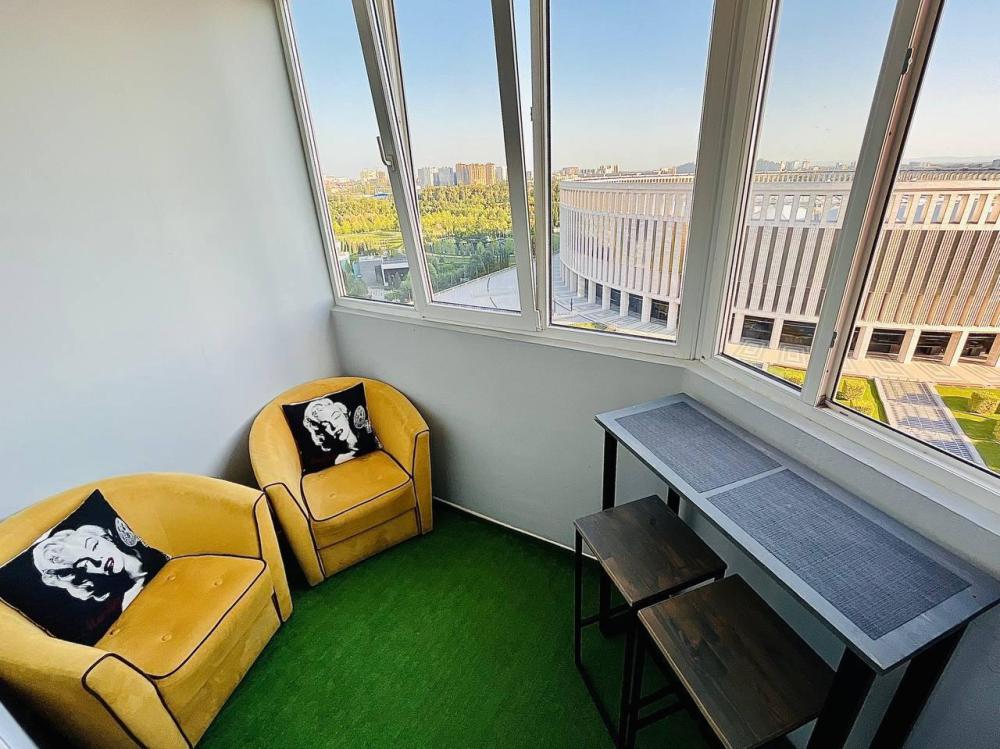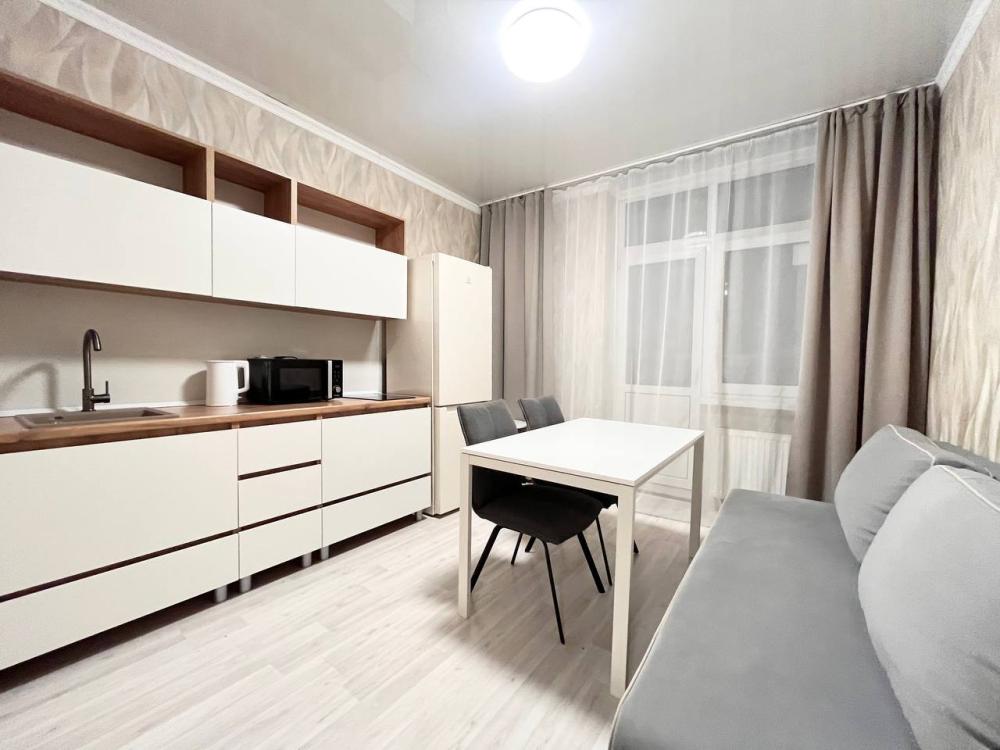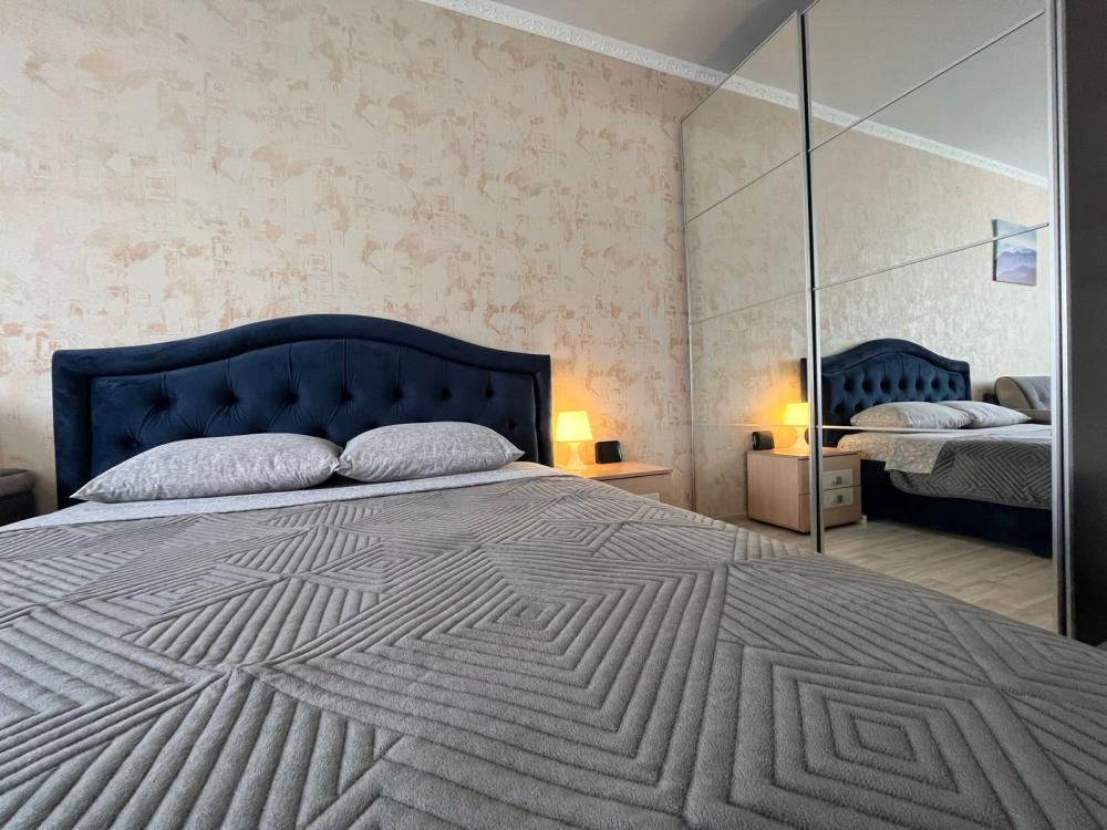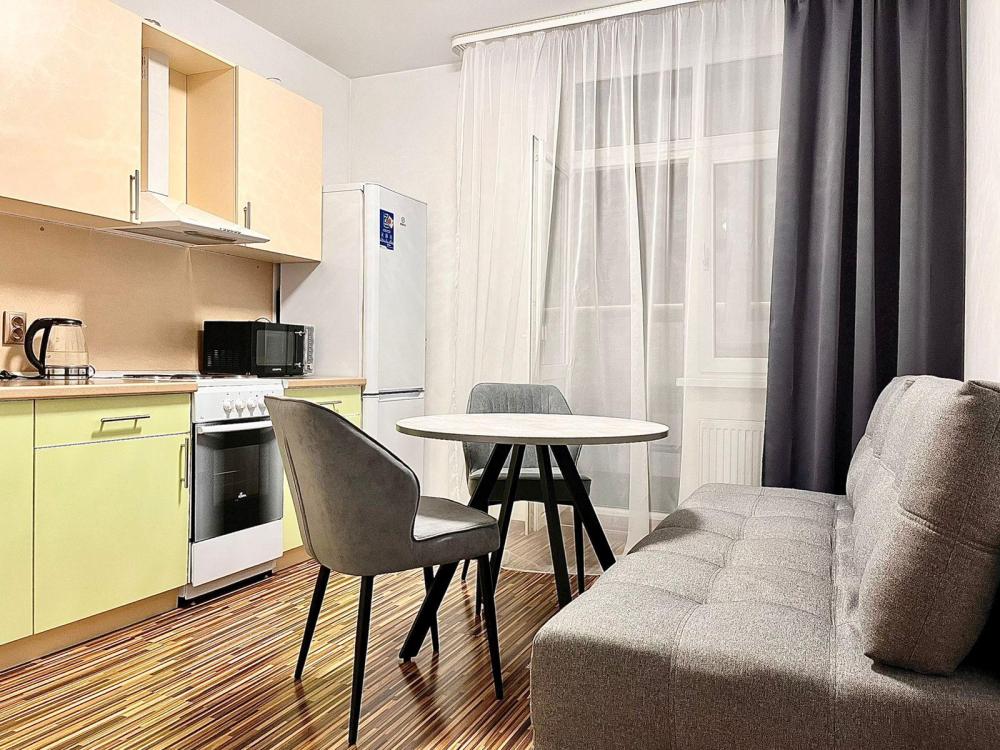 Апартаменты с видом на стадион, с возможностью размещения до шести гостей. Имеется все необходимое для комфортного проживания. Спальные места 2+2+2, двуспальная кровать с высоким матрасом Икеа, двухместный диван в комнате и доп. диван на кухне. Микроволновая печь, электроплита, чайник, холодильник, необходимая посуда. Телевизор смарт, интернет и телевидение, сплит.система.