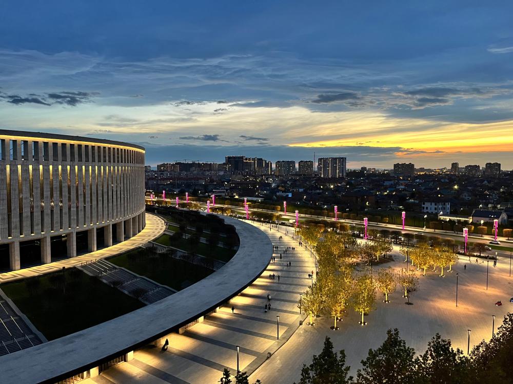 Рады приветствовать гостей в наших апартаментах "Панорама-Парк" рядом с современным парком Краснодар - Парк Галицкого, и футбольным стадионом Озон Арена. Создаем для всех наших гостей атмосферу комфорта, тепла и уюта! Категория апартаментов Комфорт+ Наш отел "Панорама-Парк" предлагает однокомнатный номер с балконом Комфорт+ со всеми удобствами, расположенный на 15 этаже, с видом на Озон Арену и парк Краснодар. В номере имеется своя кухня, сан.узел, просторная комната для отдыха, большой балкон с барной стойкой и панорамным видом на парк и Озон Арену. Комнаты оборудованы удобными спальными местами - двуспальная кровать с ортопедическим матрасом и два двухместных дивана. Расположение отеля - первая линия домов к парку Галицкого, с видом на Арену, высокий этаж. В шаговой доступности парк Облаков, Японский сад и новые локации - озеро любви с фонтаном Ротона, каньон Амфитеатр воды, Кроличья нора, Кафе Амави. Имеется все необходимое для удобства гостей и отличного отдыха в наших апартаментах. В наличии в номере вся бытовая техника, посуда и средства личной гигиены. Микроволновая печь, электроплита, чайник, холодильник, необходимая посуда. Телевизор, интернет и телевидение, сплит.система. Расстояние до центра города - ул.Красная и ул. Северная составляет 4 км. Рядом вся инфраструктура, удобная транспортная развязка, ходят маршрутные такси и автобусы, остановки 5 минут пешком от дома. Рядом расположены кафе быстрого питания, магазины и рестораны с отличным сервисом и разнообразными блюдами на любой вкус. Имеется подземный паркинг для авто, оплачивается отдельно. Район краевой клинической больницы, вблизи Екатерининская клиника, центр грудной хирургии, улицы: 40-летия Победы, Героев Разведчиков, Восточно-Кругликовская, Школьная, Российская.