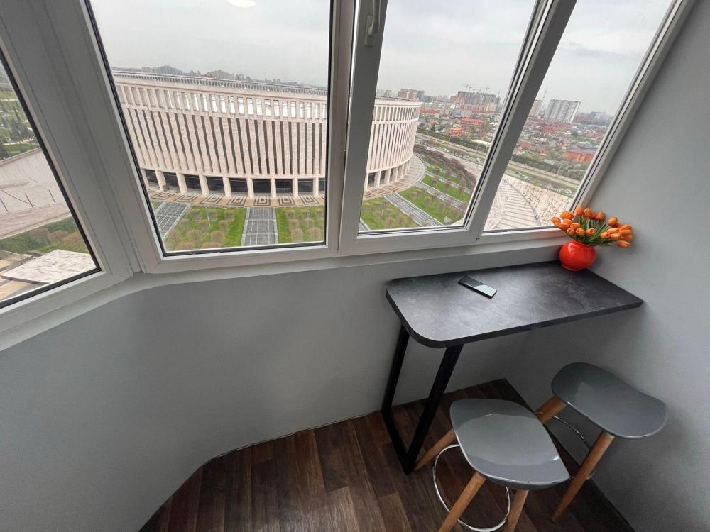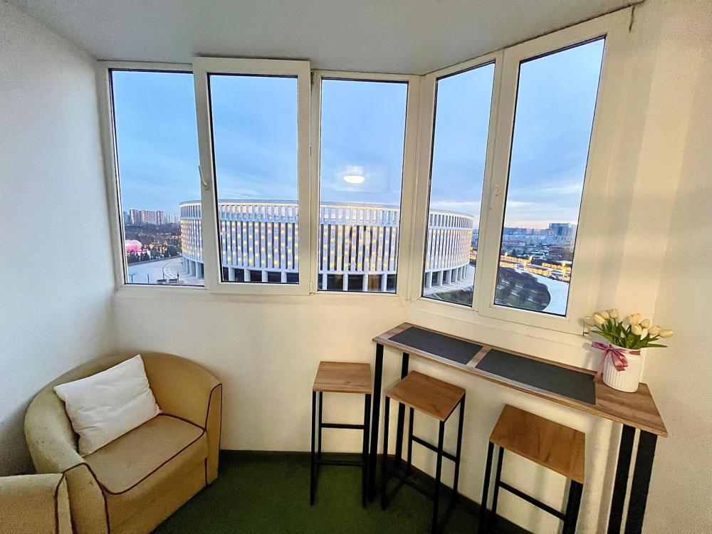 Рады приветствовать гостей в наших апартаментах "Панорама-Парк" рядом с современным парком Краснодар - Парк Галицкого, и футбольным стадионом Озон Арена. Создаем для всех наших гостей атмосферу комфорта, тепла и уюта! Категория апартаментов Комфорт+ Наш отел "Панорама-Парк" предлагает однокомнатный номер с балконом Комфорт+ со всеми удобствами, расположенный на 11 этаже, с видом на Озон Арену и парк Краснодар. В номере имеется своя кухня, сан.узел, просторная комната для отдыха, большой балкон с барной стойкой и панорамным видом на парк и Озон Арену. Комнаты оборудованы удобными спальными местами - двуспальная кровать с ортопедическим матрасом и два двухместных дивана. Расположение отеля - первая линия домов к парку Галицкого, с видом на Арену, высокий этаж. В шаговой доступности парк Облаков, Японский сад и новые локации - озеро любви с фонтаном Ротона, каньон Амфитеатр воды, Кроличья нора, Кафе Амави. Имеется все необходимое для удобства гостей и отличного отдыха в наших апартаментах. В наличии в номере вся бытовая техника, посуда и средства личной гигиены. Микроволновая печь, электроплита, чайник, холодильник, необходимая посуда. Телевизор, интернет и телевидение, сплит.система. Расстояние до центра города - ул.Красная и ул. Северная составляет 4 км. Рядом вся инфраструктура, удобная транспортная развязка, ходят маршрутные такси и автобусы, остановки 5 минут пешком от дома. Рядом расположены кафе быстрого питания, магазины и рестораны с отличным сервисом и разнообразными блюдами на любой вкус. Имеется подземный паркинг для авто, оплачивается отдельно. Район краевой клинической больницы, вблизи Екатерининская клиника, центр грудной хирургии, улицы: 40-летия Победы, Героев Разведчиков, Восточно-Кругликовская, Школьная, Российская.