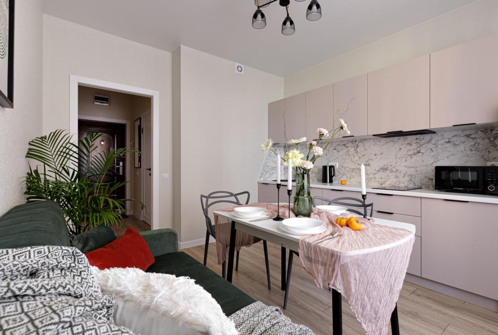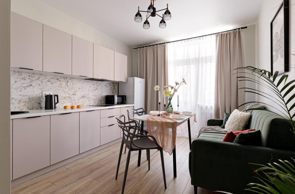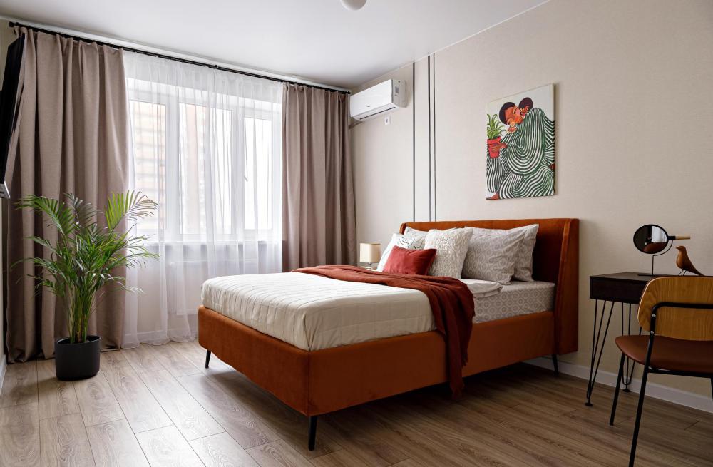 В квартире есть все необходимое для комфортного проживания: просторная двуспальная кровать Ascona 160х200, ортопедический матрас, удобный диван спальное место 140х200 шторы blackout, телевизор со SMART TV, кондиционер, стиральная машина, кухня со всей бытовой техникой микроволновка, мультиварка, кухонная утварь, посуда на 4 персоны, стол, стулья, чайник, утюг, фен, холодильник, беспроводной WI-FI скоростной. Гостям предоставляется постельное белье и полотенце.