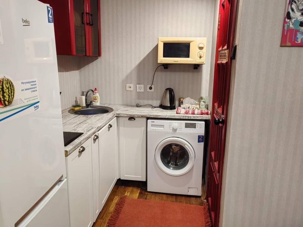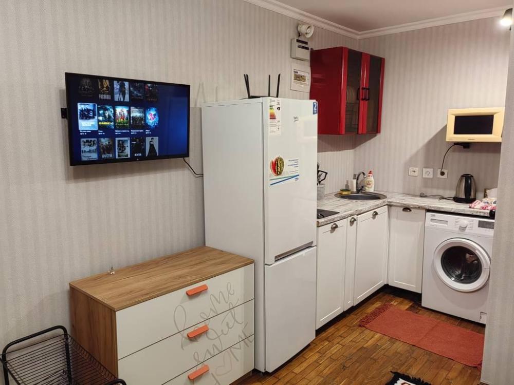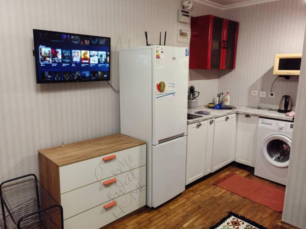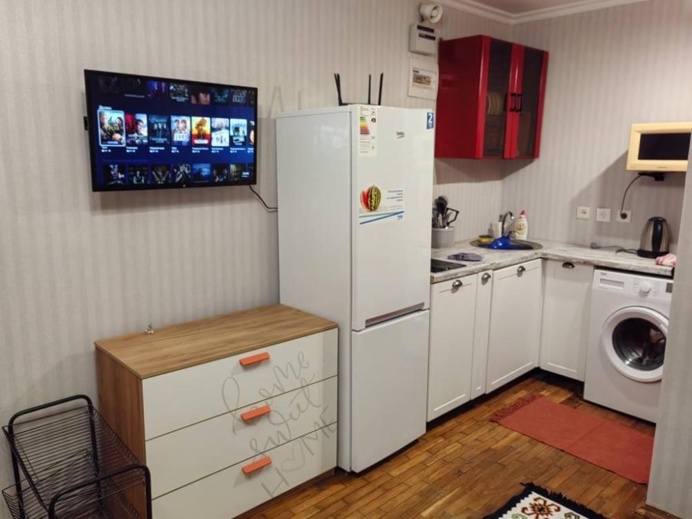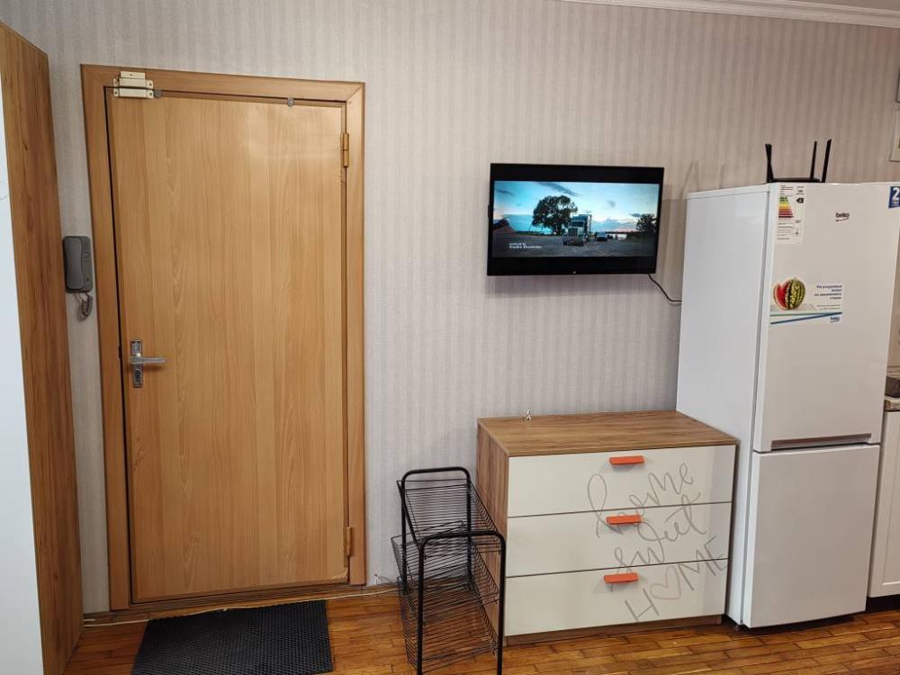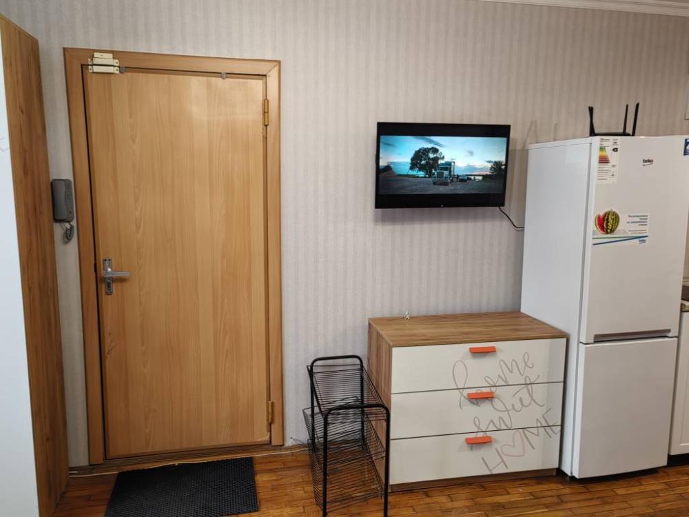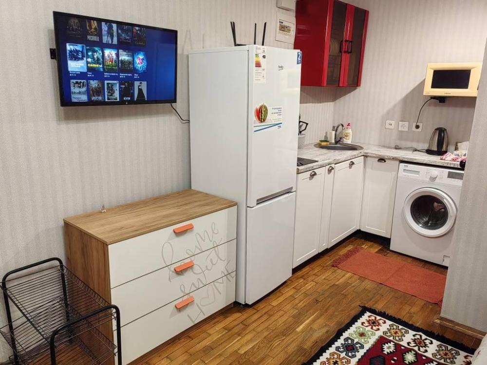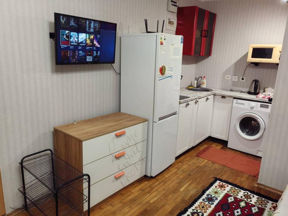 Уютные апартаменты студия. В студии все необходимое для комфортного проживания: двуспальный диван, кухня с обеденной зоной, техникой и посудой, санузел, душ. Всегда свежее белье и махровые полотенца, средства личной гигиены, посуда, стиральная машинка, электроплита, фен, ТВ и Wi-Fi.