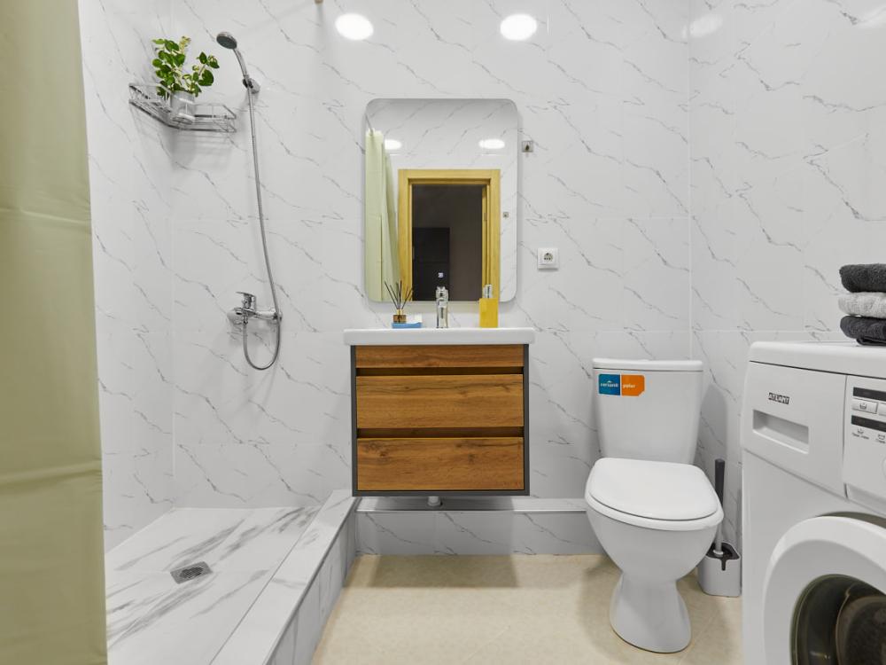 Вся необходимая техника: стиральная машина, кондиционер, микроволновая печь, фен.
