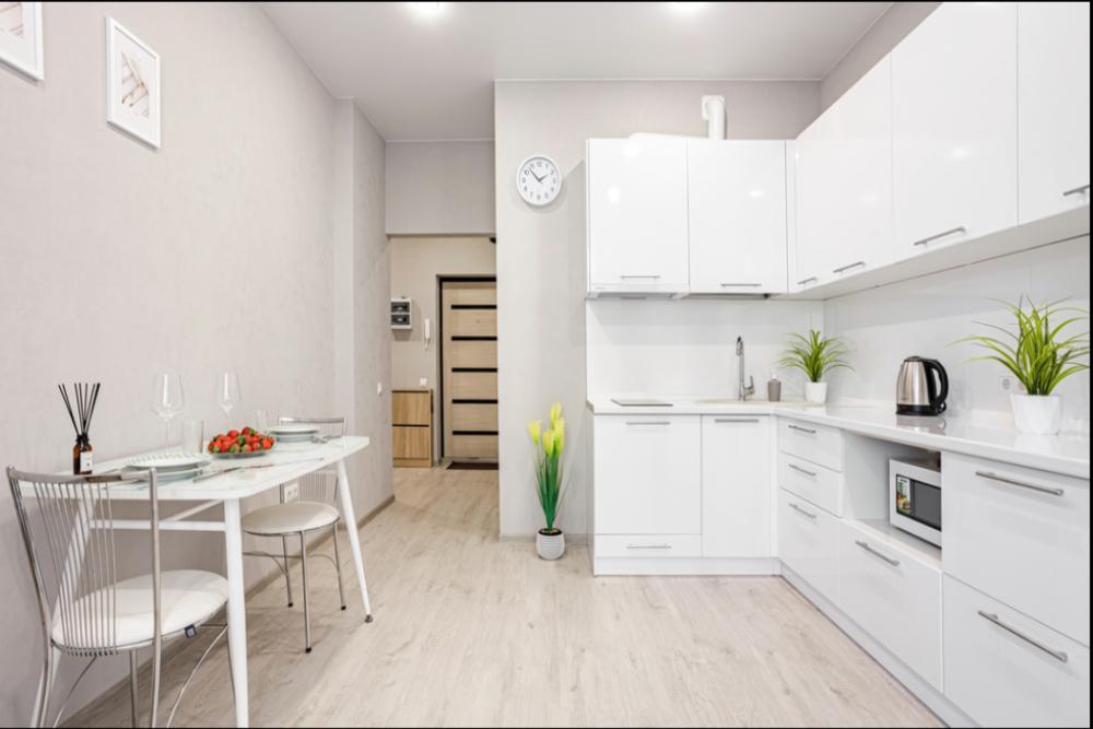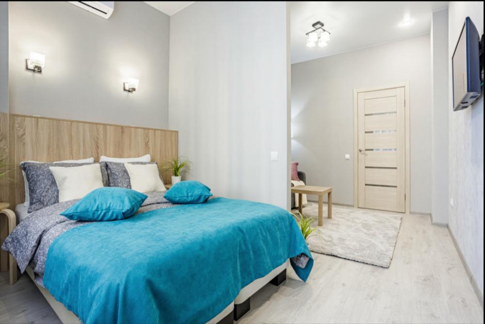 Апартаменты в уникaльном по свoeму cозданию комплeкce ЖK "Арбат". Для размещения до 4-х гостей. Уютная квартира с комфортной кроватью и удобным матрасом. Для комфортного проживания гостей апартаменты оборудованы всем необходимым: двуспальная кровать, раскладной диван, туалетно-гигиенические принадлежности, фен, гладильная доска, сушилка для одежды, постельное бельё, полотенца, шторы Вlасk Оut.