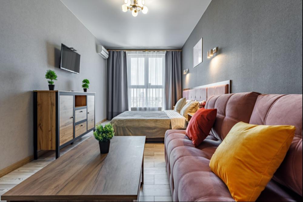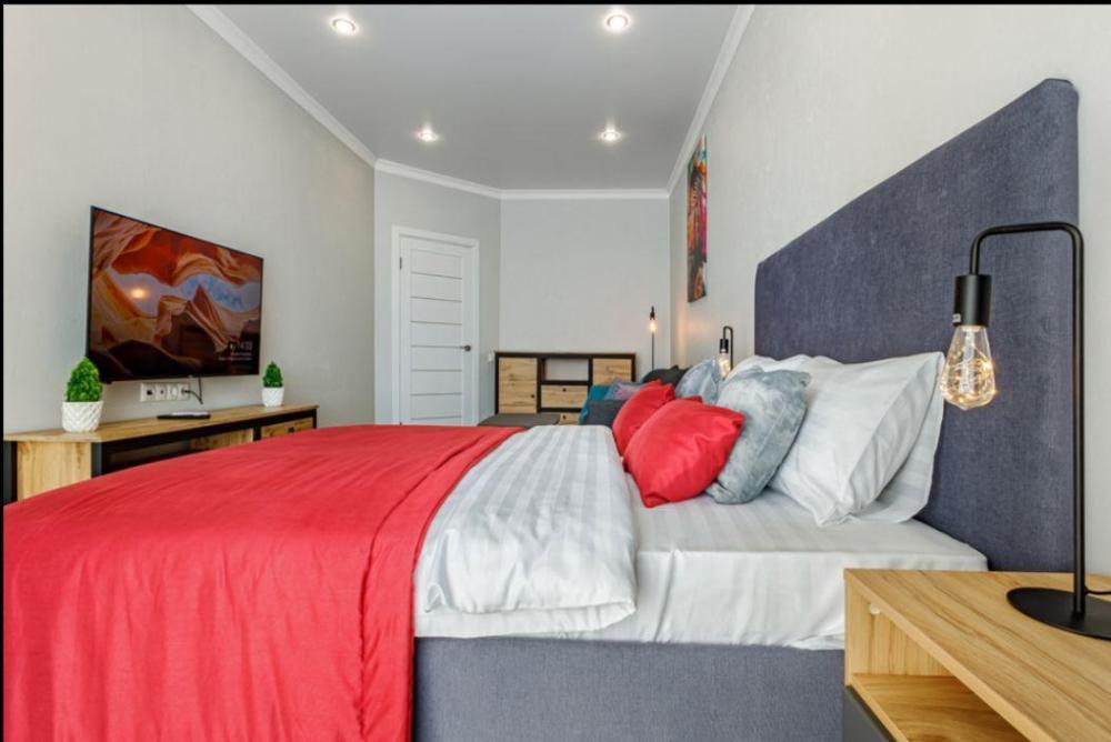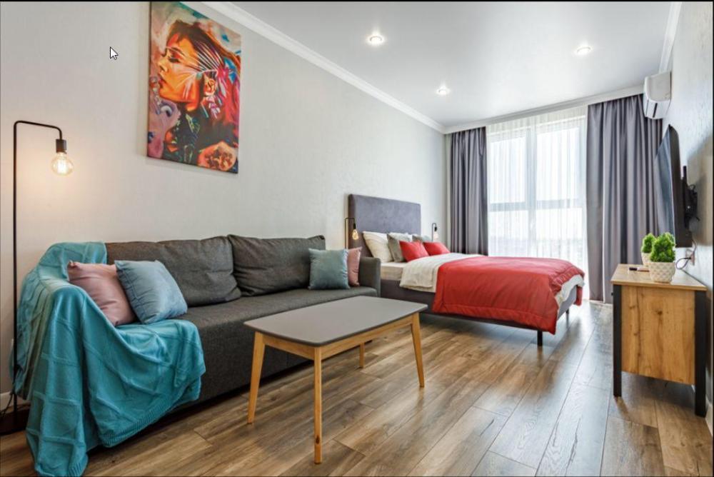 Уютнaя квapтира с комфортной кроватью и удобным матрасом. Апартаменты укомплектованы всем необходимым для проживания: двуспальная кровать, диван, фен, гладильная доска, сушилка для одежды, постельное бельё, полотенца, шторы Вlасk Оut.