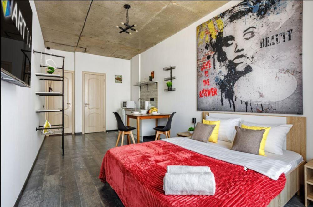 Уютнaя квapтира с комфортной кроватью и удобным матрасом. Апартаменты укомплектованы всем необходимым для проживания: двуспальная кровать, фен, гладильная доска, сушилка для одежды, постельное бельё, полотенца, шторы Вlасk Оut.