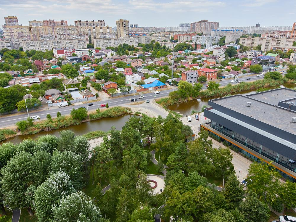 Красивый парк и стадион Краснодар.