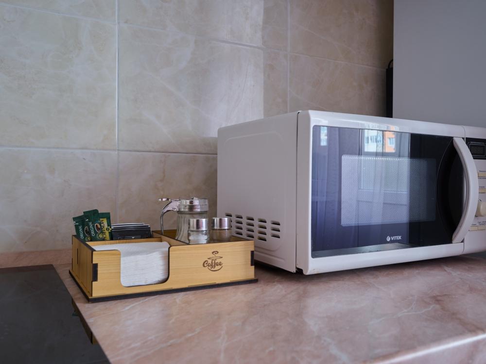 Вся необходимая техника: стиральная машина, кондиционер, микроволновая печь, фен.