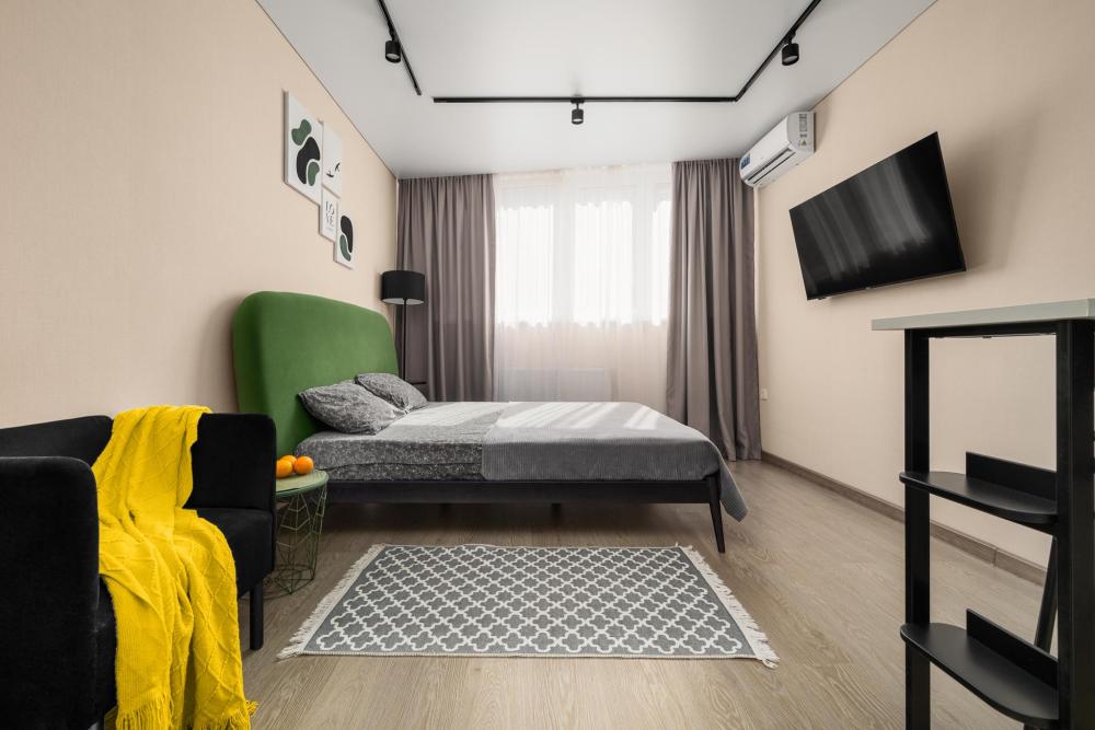 Апартаменты расположены в самом центре города, среди развитой инфраструктуры и в непосредственной близости от главной достопримечательности города - парка Галицкого. В квартире есть, все что нужно для комфортного проживания: большая двуспальная кровать с очень качественным матрасом, кресло-кровать, телевизор, высокоскоростной интернет, свежее постельное белье и полотенца, современная бытовая техника и посуда для приготовления и приема пищи, кондиционер, водонагреватель, фен, утюг, сушилка для белья, гладильная доска.