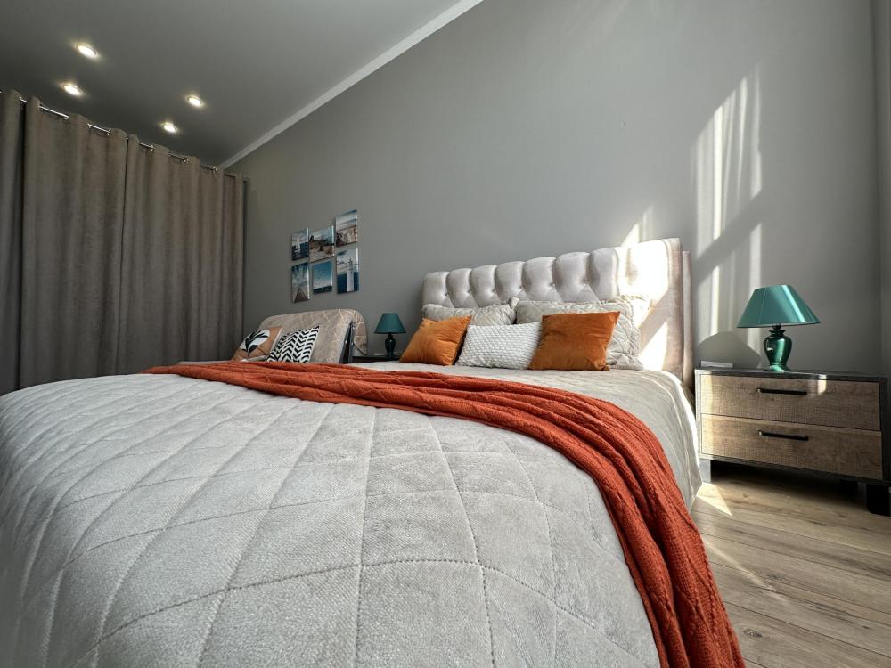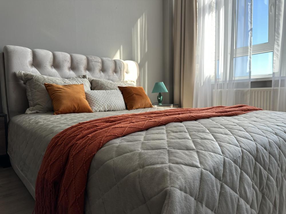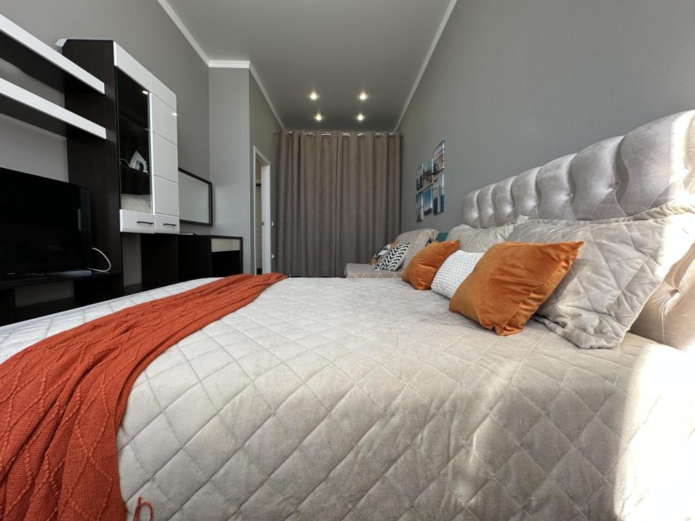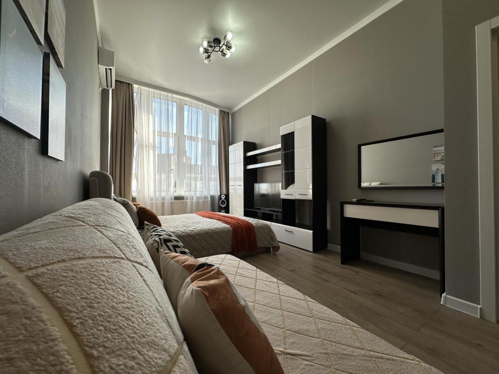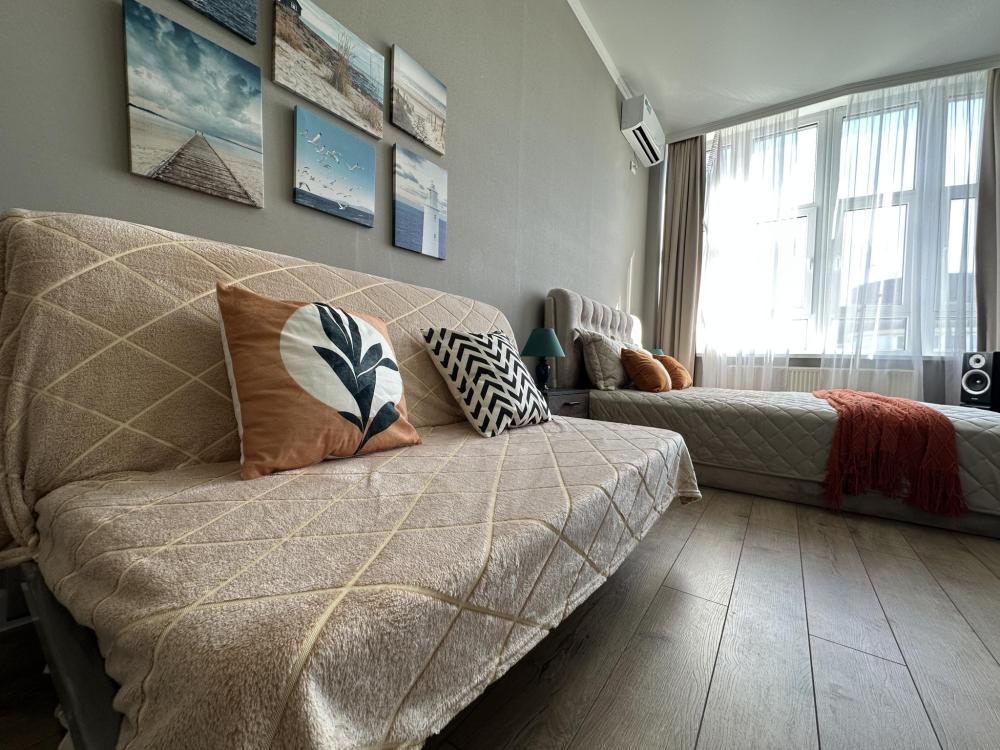 В квартире: стиральная машина, водонагреватель, холодильник, микроволновка, электрочайник, печь, посуда, фен, утюг, гладильная доска, чистое постельное бельё и полотенца, Wi‑Fi, Smart‑TV.