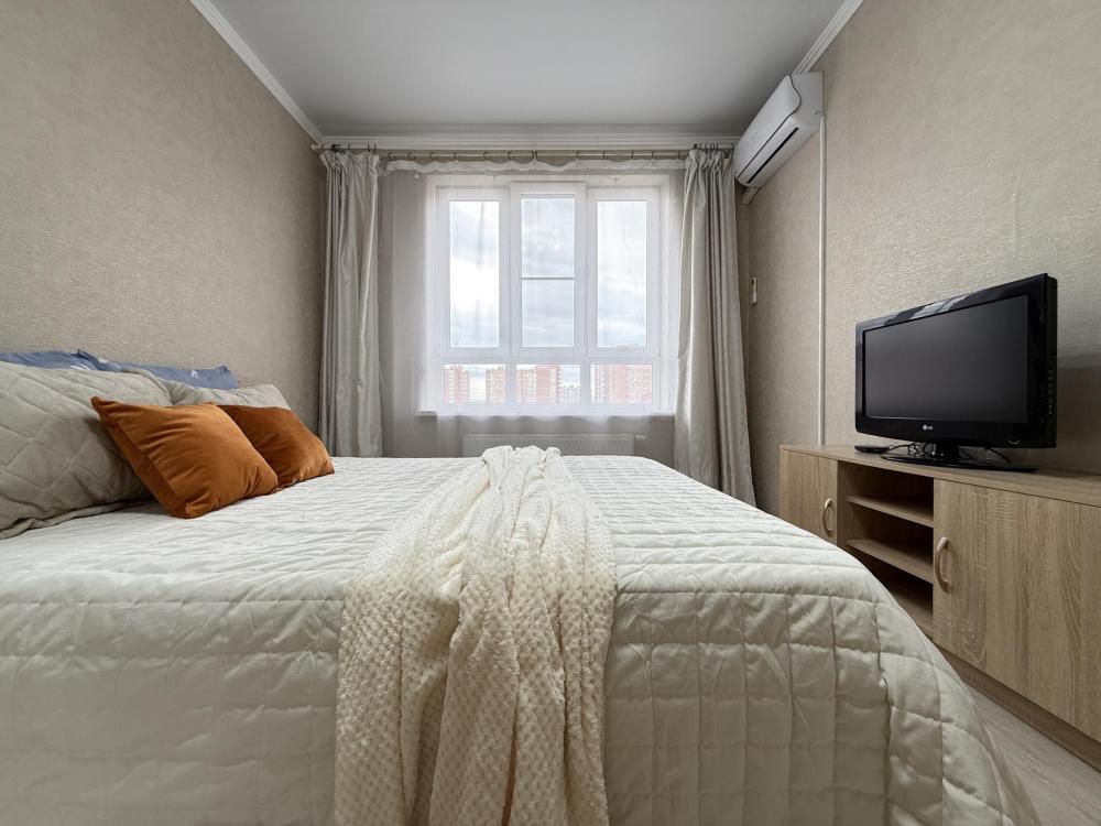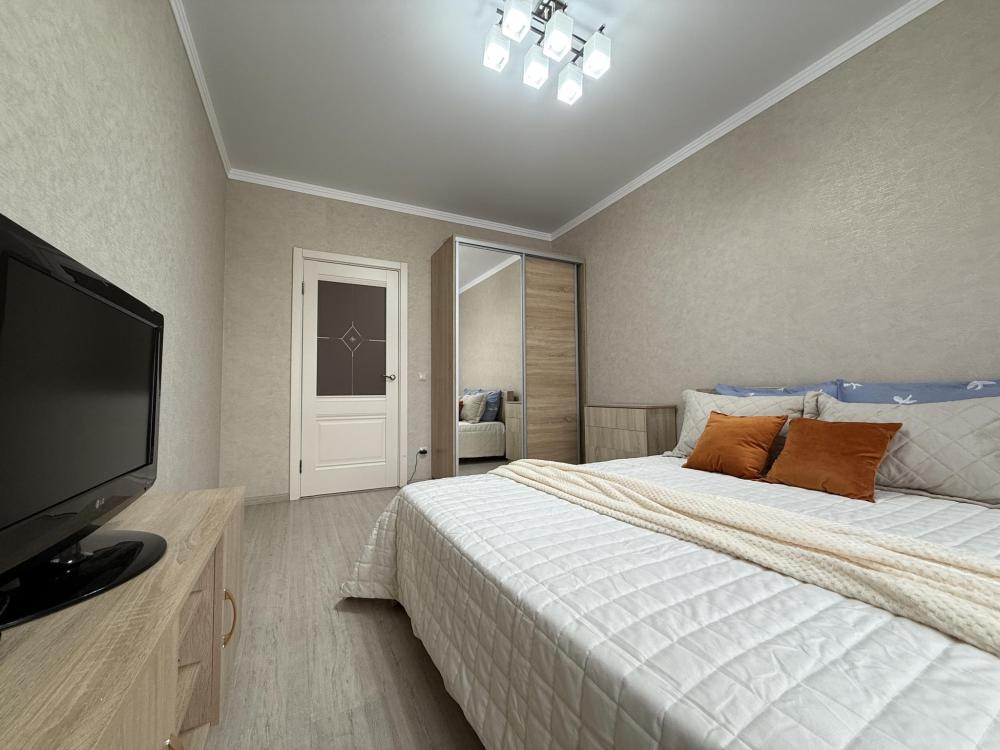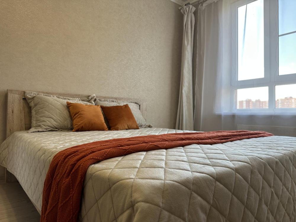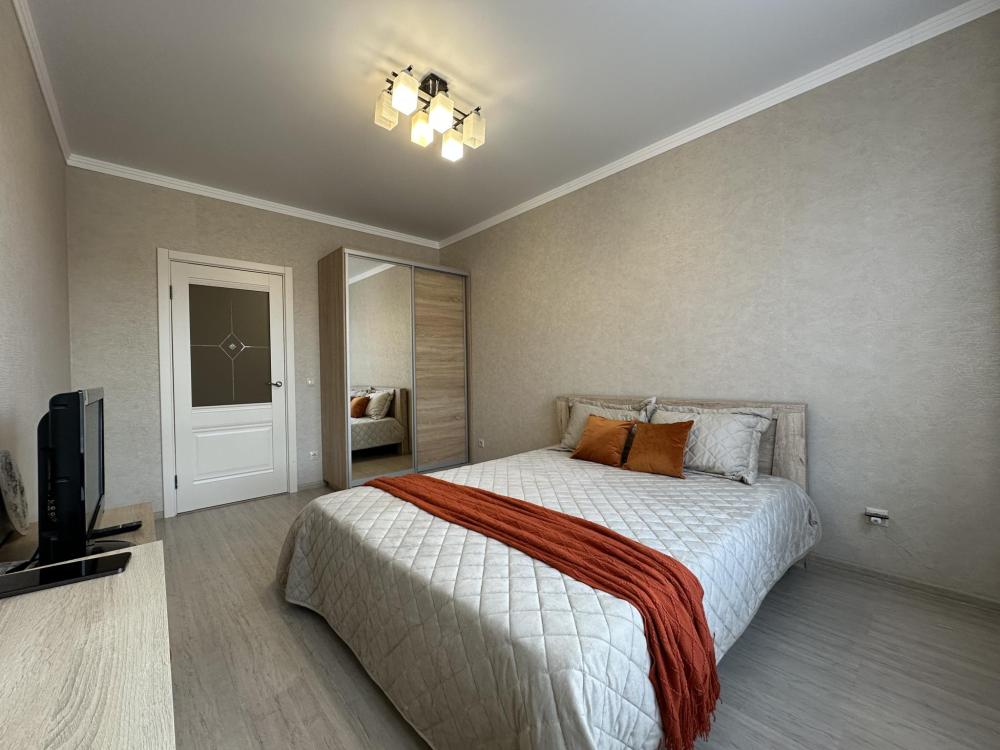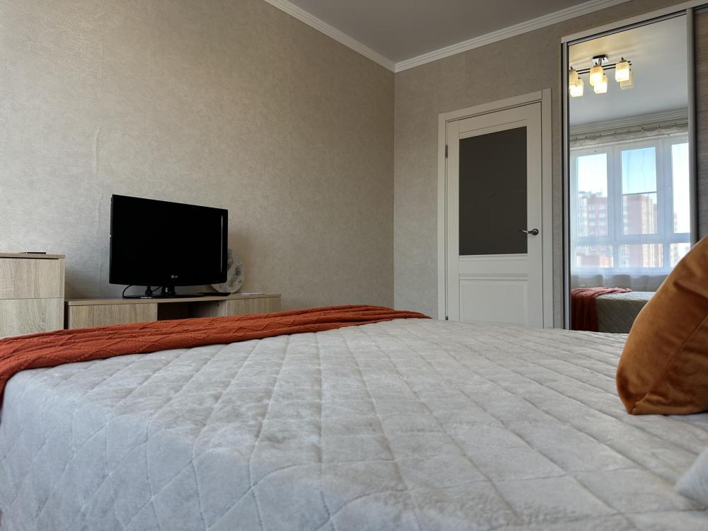 Двухкомнатные апартаменты по улице Героев Разведчиков на 10-м этаже. Для комфортного проживания гостей апартаменты оборудованы всем необходимым: стиральная машина, холодильник, микроволновка, электрочайник, печь, посуда, фен, утюг, гладильная доска, чистое постельное бельё и полотенца, Wi‑Fi, Smart‑TV.