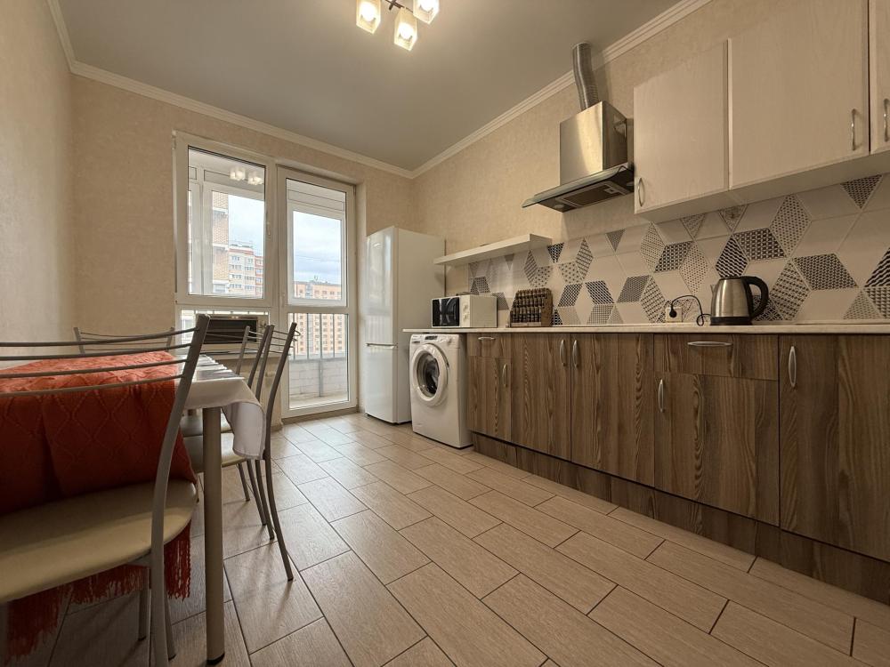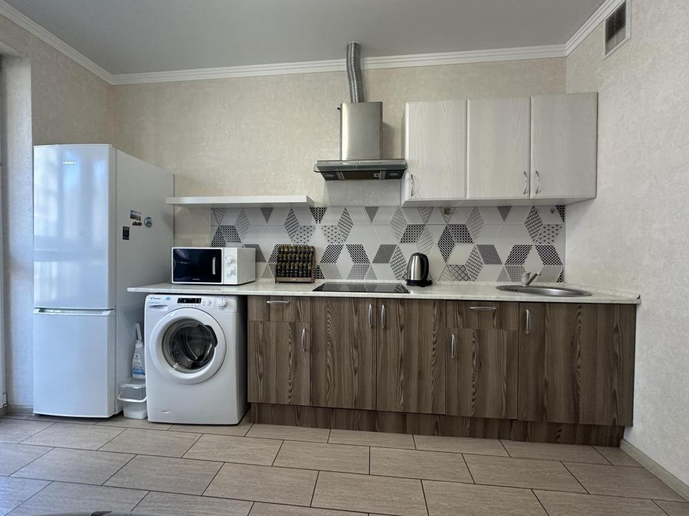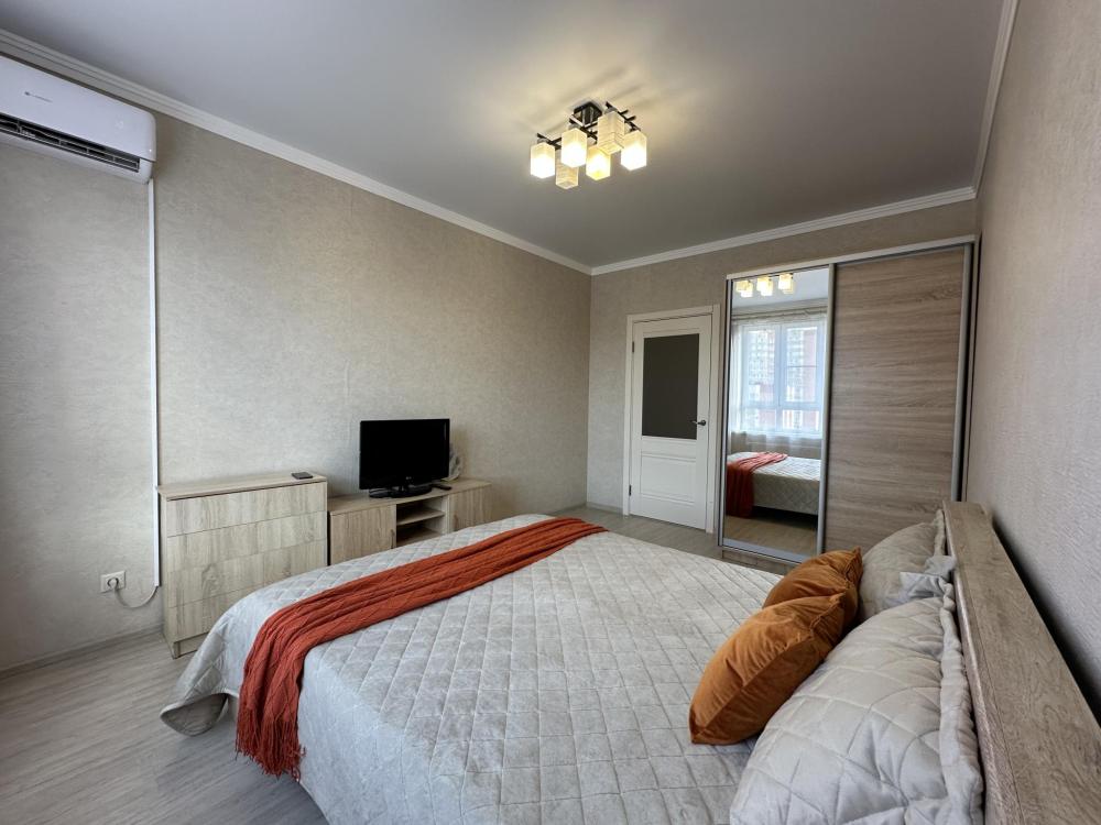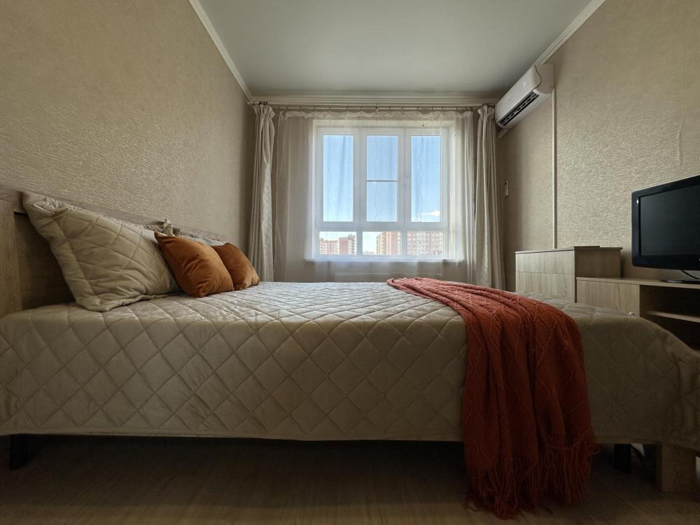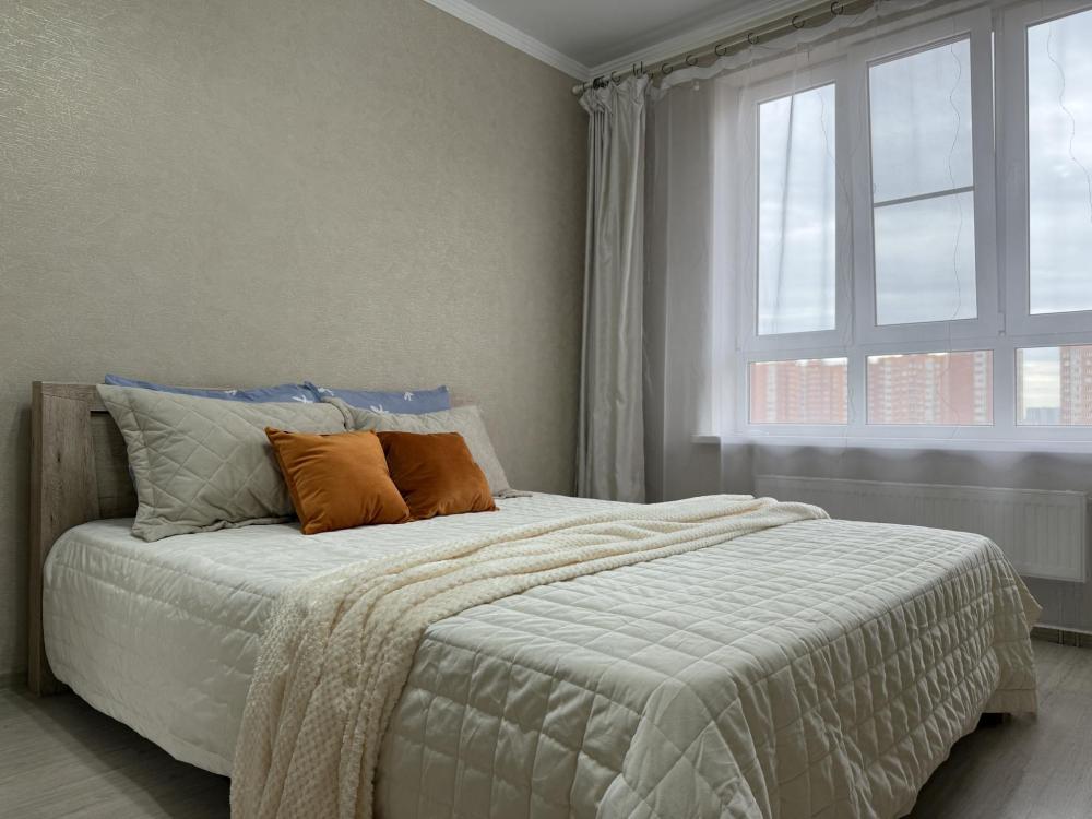 Двухкомнатные апартаменты по улице Героев Разведчиков на 10-м этаже. Для комфортного проживания гостей апартаменты оборудованы всем необходимым: стиральная машина, холодильник, микроволновка, электрочайник, печь, посуда, фен, утюг, гладильная доска, чистое постельное бельё и полотенца, Wi‑Fi, Smart‑TV.