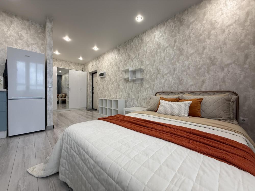 В квартире: стиральная машина, водонагреватель, кондиционер, холодильник, микроволновка, духовой шкаф, варочная панель, вся необходимая посуда, фен, утюг, гладильная доска, чистое постельное бельё, полотенца, Wi‑Fi, Smart‑TV, прямой вид на стадион и парк Галицкого.