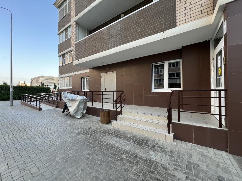 Студия на 8 этаже с двуспальным диваном и балконом, кондиционер. Есть кухонная зона и собственная ванная комната. Новый ЖК с паркингом во дворе.