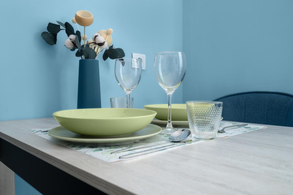 На кухне полный комплект техники для приготовления и разогрева еды ???; для сервировки стола есть полный комплект посуды ??