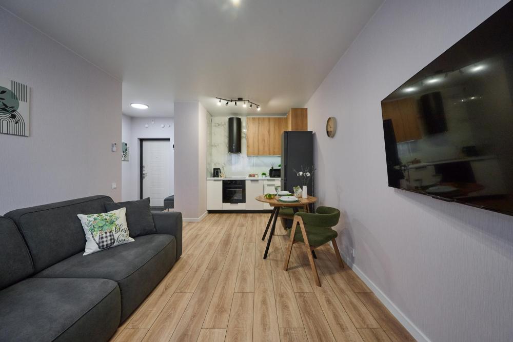 Евродвухкомнатная квартира (комната+кухня гостиная) идеально подходит для комфортного размещения до 4-х гостей. Бесконтактное заселение 24/7 позволит вам заселиться в удобное для вас время, не тратя время на ожидание. В вашем распоряжении: -Уютная двухспальная кровать с ортопедическим матрасом -Удобный большой раскладной диван в кухне-гостиной -Белоснежное постельное белье и полотенца -Два современных Smart-TV -Две сплит-системы для поддержания комфортной температуры. -Полностью оборудованная кухня с холодильником, индукционной плитой, чайником, микроволновой печью, посудомоечной машиной и всей необходимой посудой. -Просторная ванная комната, средства личной гигиены:зубной набор, мыло, шампунь, гель для душа, ватные диски, палочки и тапочки. -ен и гладильные принадлежности. -Высокоскоростной Wi-Fi. -Зона отдыха на лоджии с панорамным видом из окна -Чай/кофе, конфеты, также в квартире установлен трехступенчатый фильтр для очистки воды.