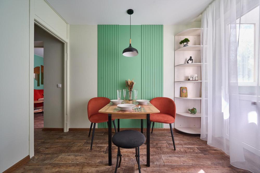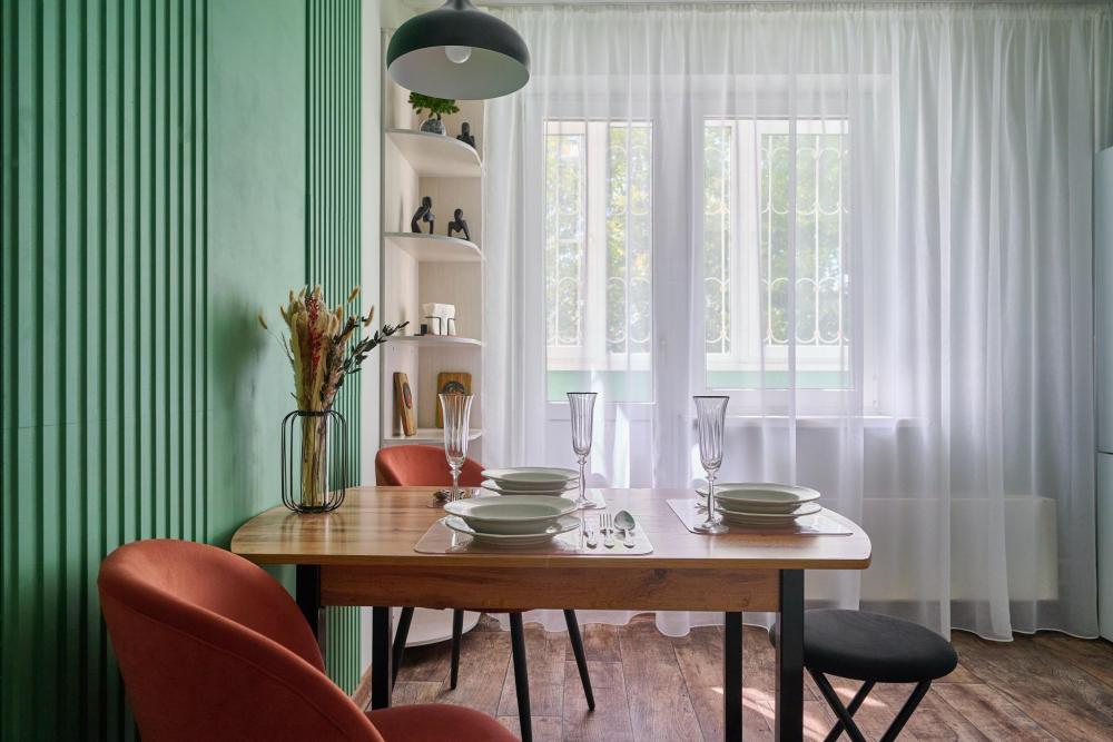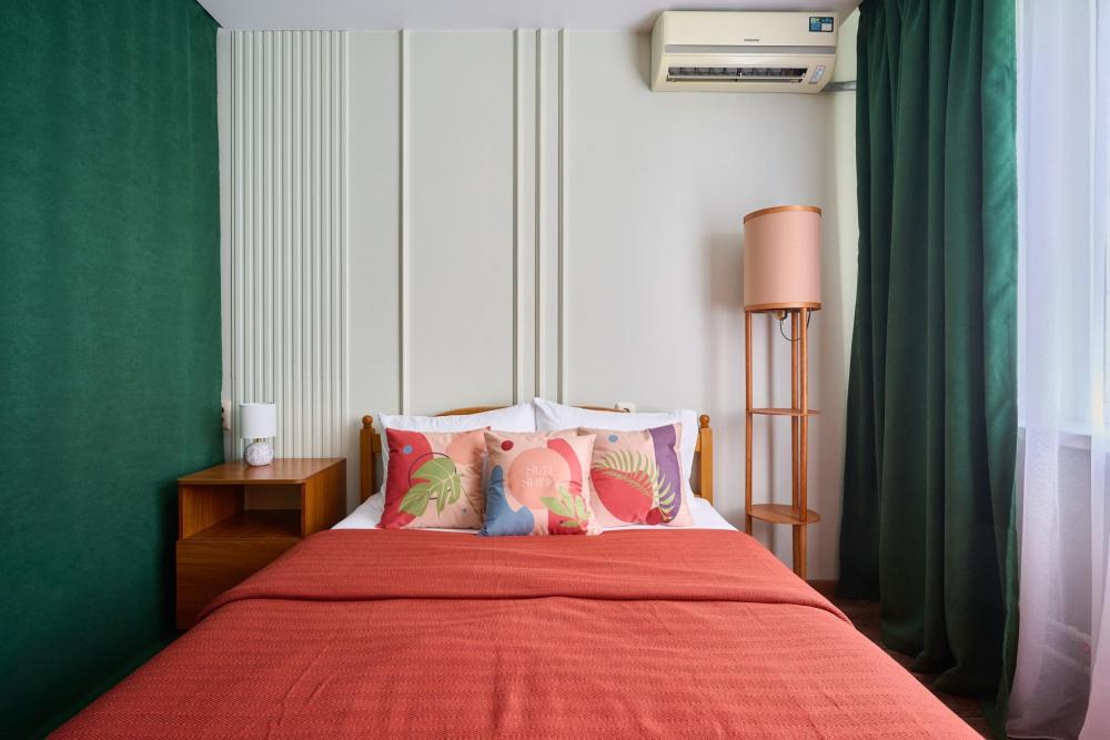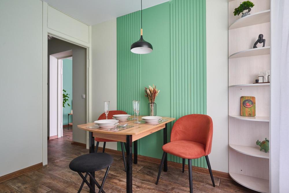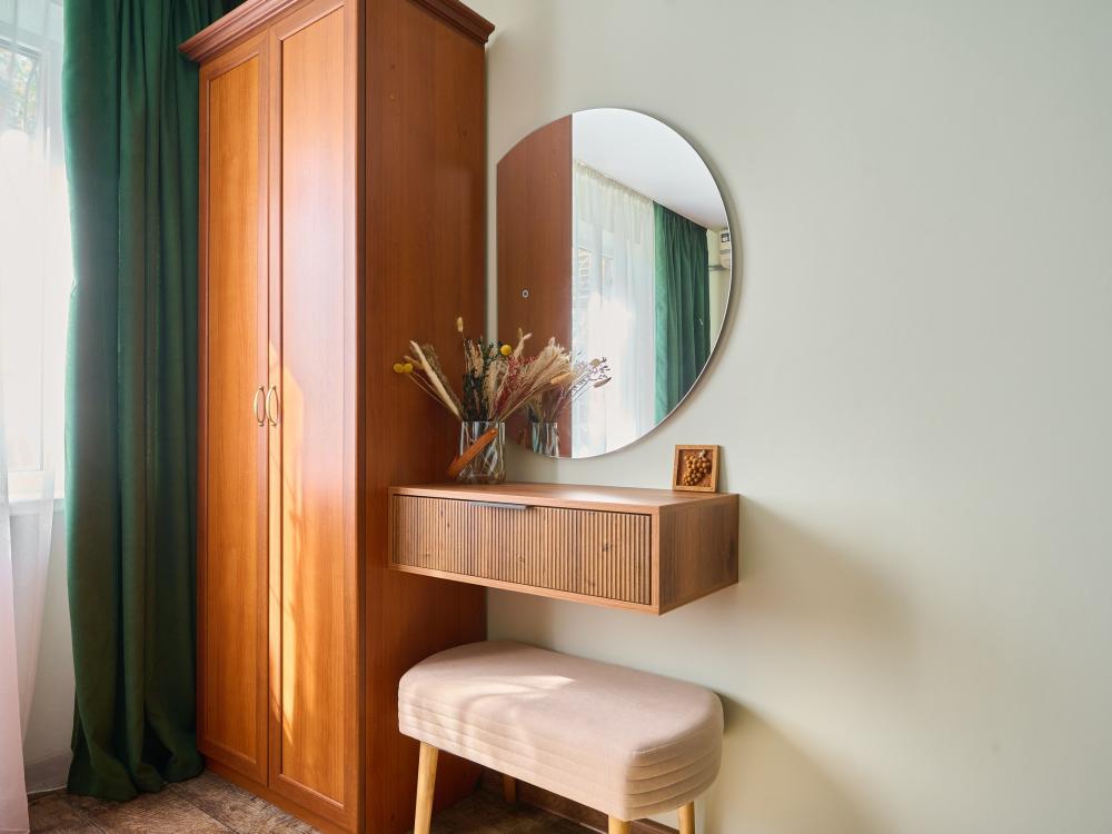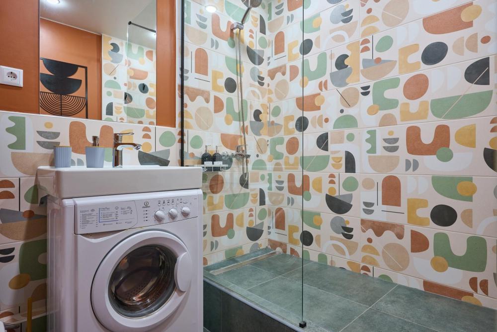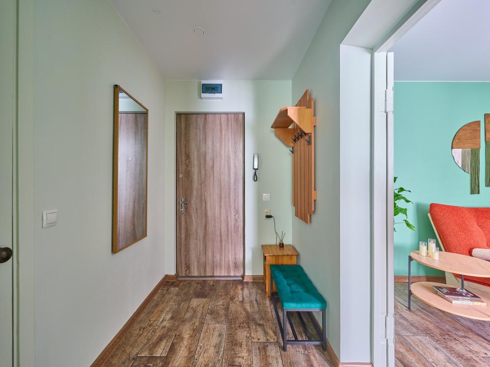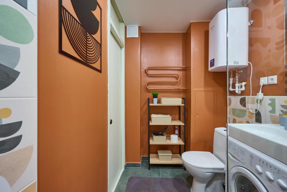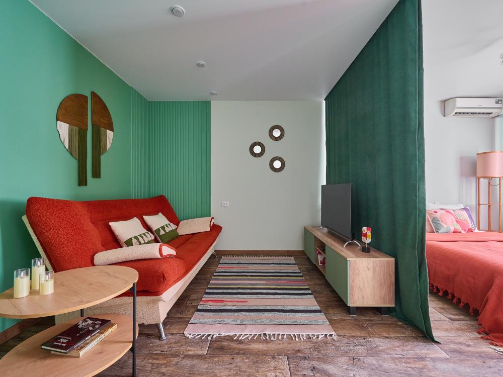 -комната: двуспальная кровать, белоснежное постельное белье, диван-книжка, Smart-TV, кондиционер, Wi-Fi; - кухня: вся кухонная мебель, холодильник, электрическая плита, вытяжка, микроволновая печь, электрический чайник, тостер, турка для кофе, комплект посуды и столовых приборов; - санузел совмещенный: удобная душевая зона, полотенца по количеству гостей, фен, средства гигиены, водонагреватель, стиральная машина; - утюг, гладильная доска, сушилка для белья.