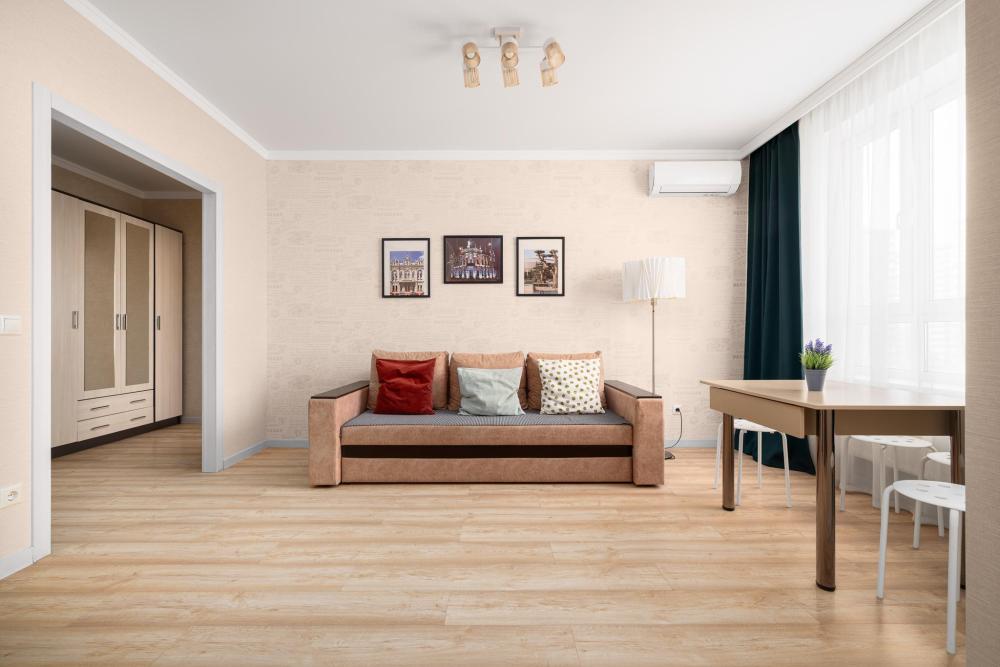 Комфортное проживание до 7 гостей. 1 комната - 2х спальная кровать. 2 комната - 2х спальный диван и 1 спальная кровать. кухня - 2х спальный диван.