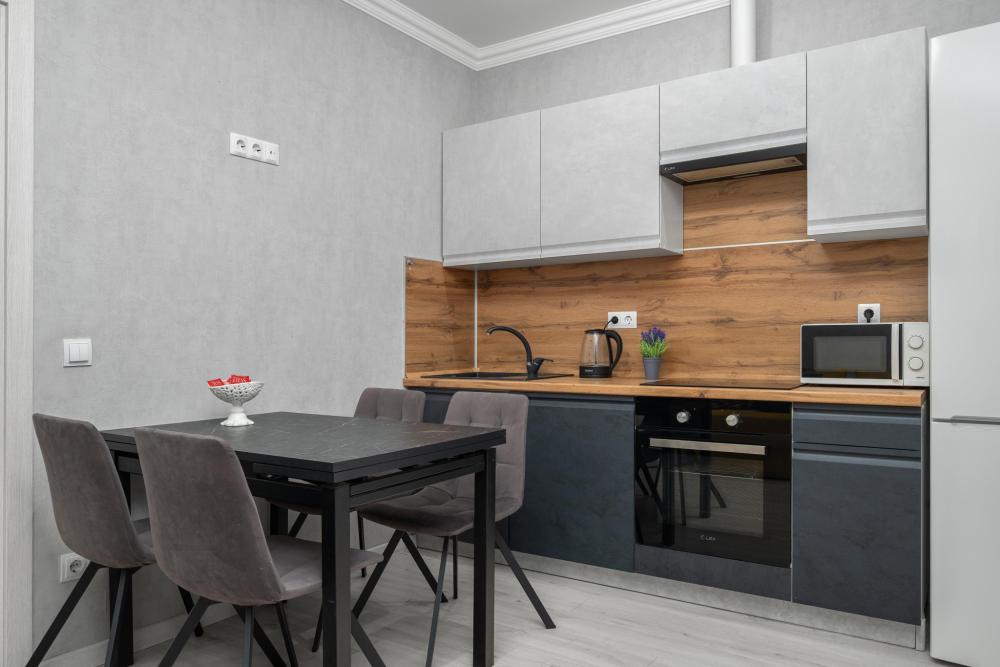 Размещение до 6 гостей. - Двуспальная кровать. - 2х-местный раскладной диван + диван на кухне