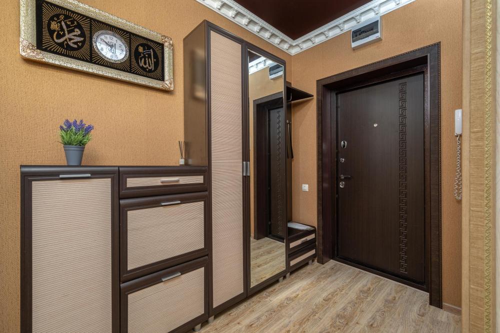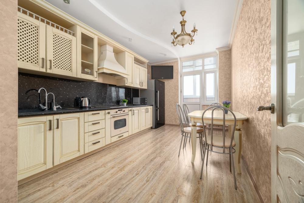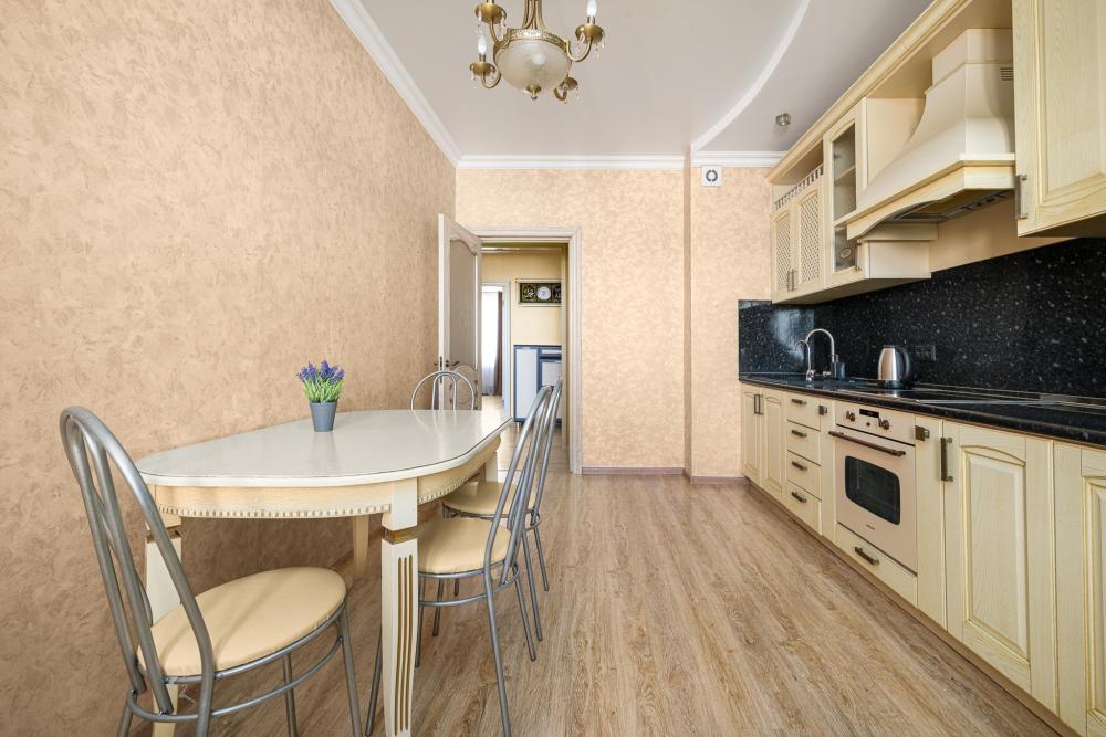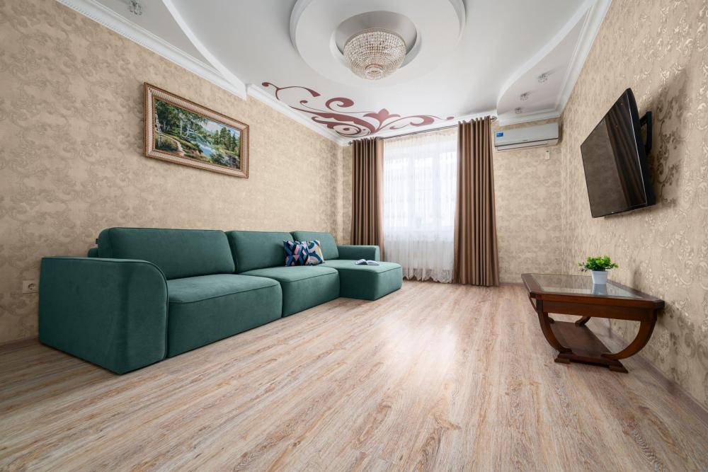 Размещение до 5 гостей: кровать 2х спальная в комнате, диван 2х местный раскладной в комнате, диван 1 местный раскладной на кухне.