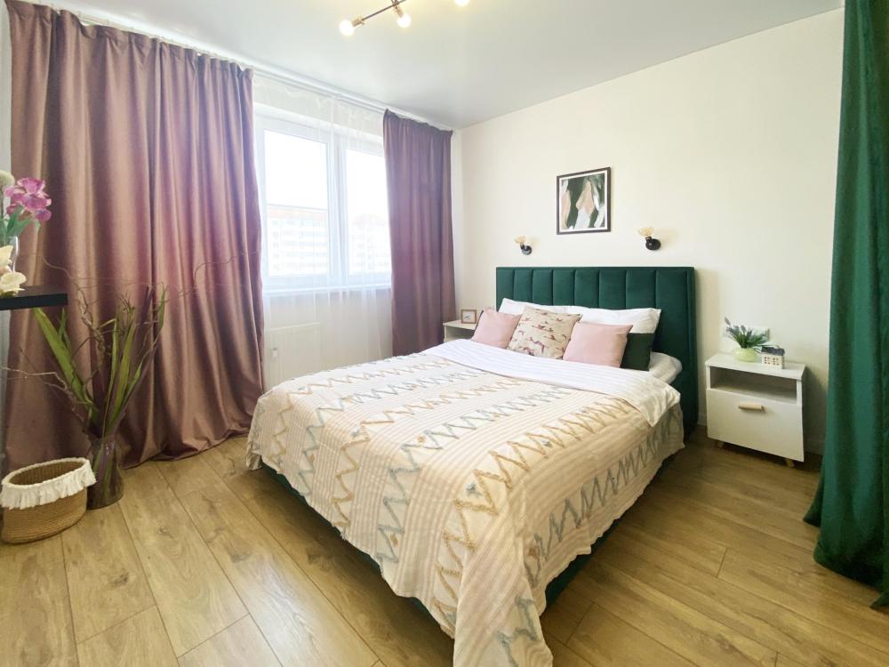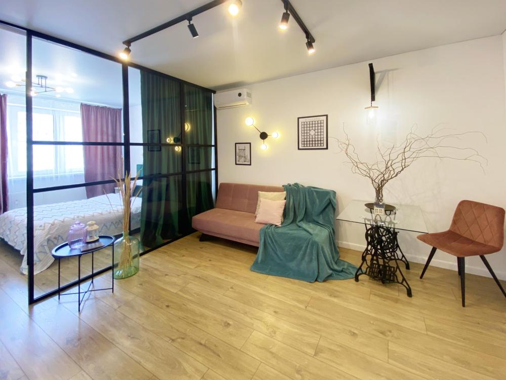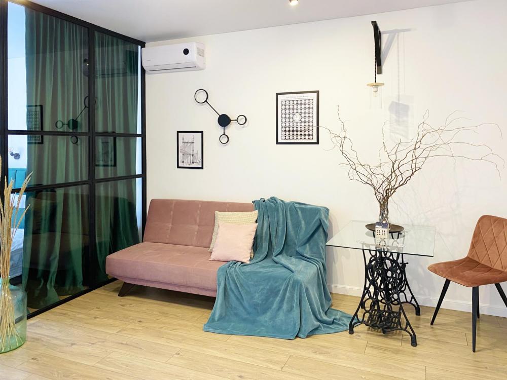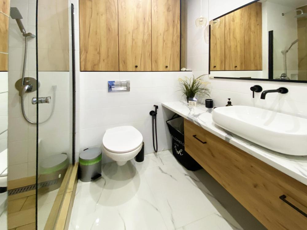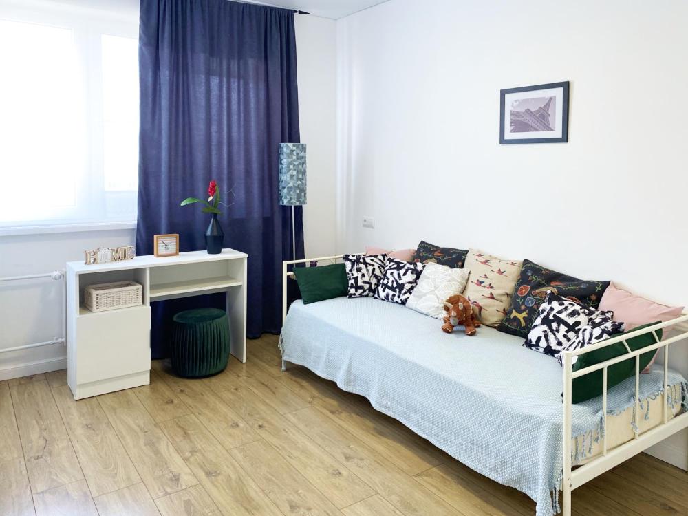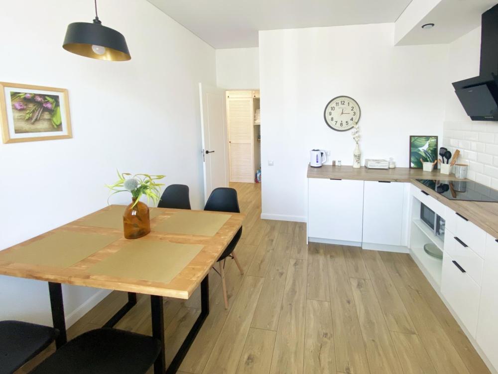 Пpoсторные cемeйные двуxкoмнатныe aпаpтамeнты. Есть все необходимое для комфортного размещения 5 гостей: кровать двуспальная с удобным матрасом + двухместный диван-кровать + кровать полуторка, свежее, белоснежное постельное белье и мягкие полотенца, смарт ТВ с доступом к контенту интернет-сервисов, кондиционер (сплит-система), стиральная машина с функцией сушки, посудомоечная машина, микроволновая печь, холодильник, варочная индукционная панель, чайник, фен, утюг, полностью укомплектованная мебелью и посудой просторная кухня с обеденной зоной. Детский уголок: стол и стул. Зеркало в полный рост, рабочая зона: стол и 4 стула, балкон с панорамным видом, просторная ванная комната с душем, гигиенический душ, высокоскоростной Wi-Fi, ночная подсветка.