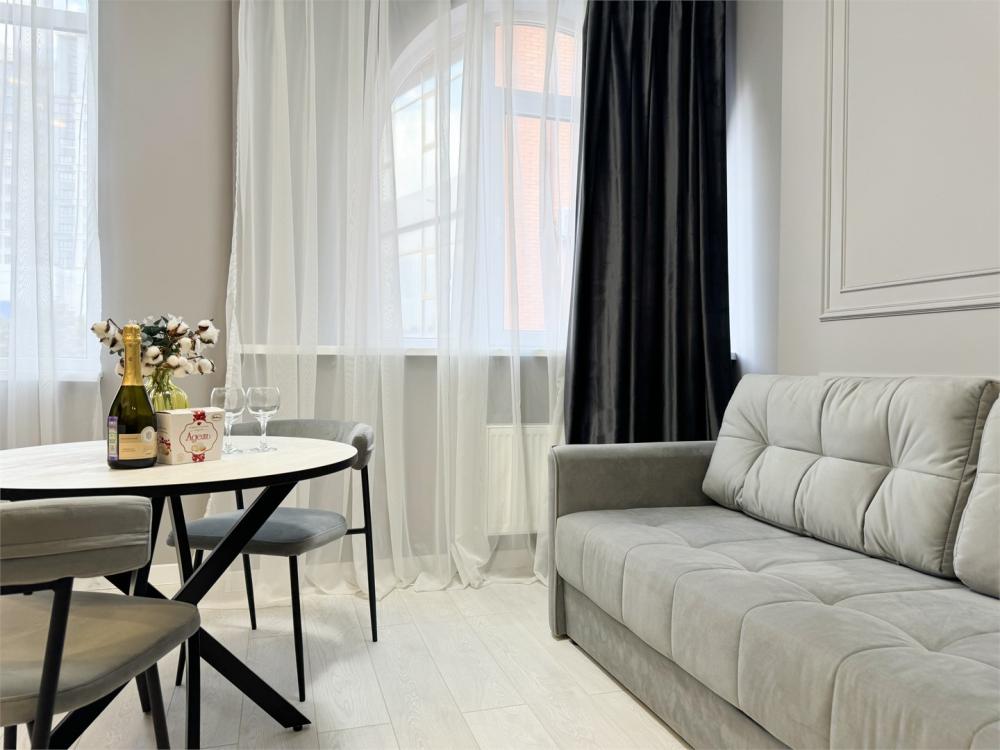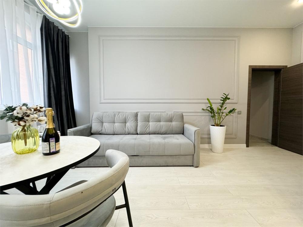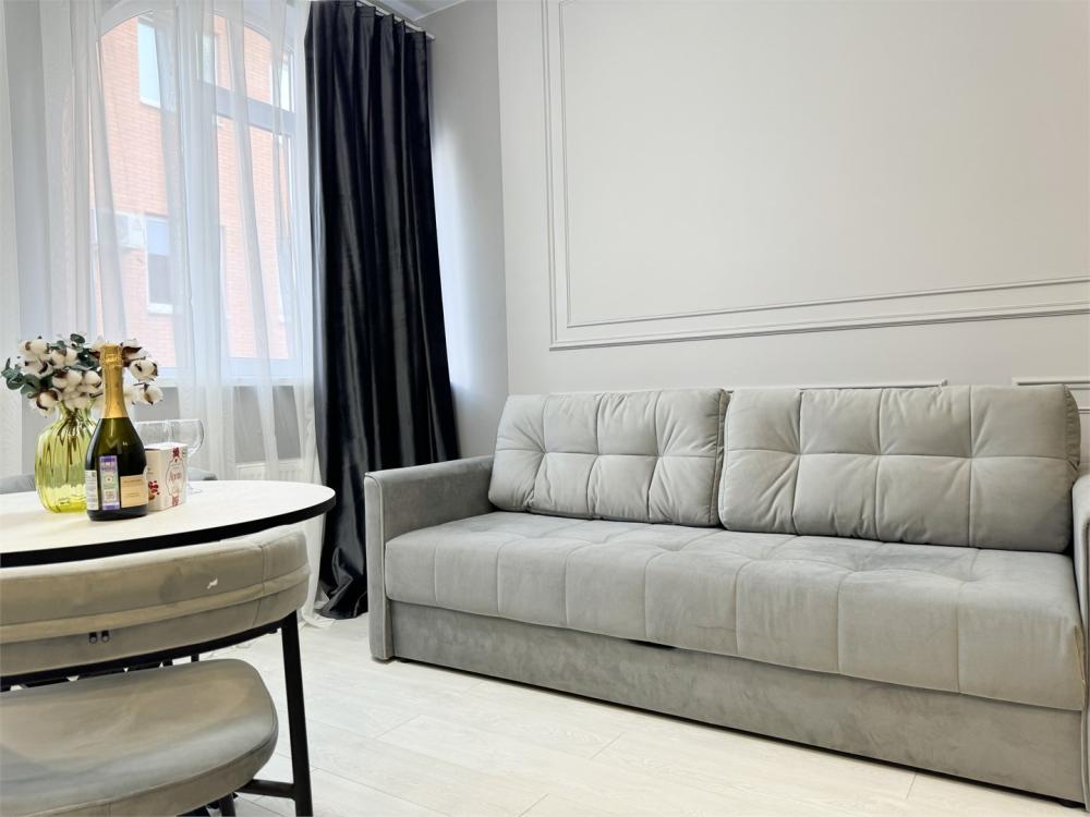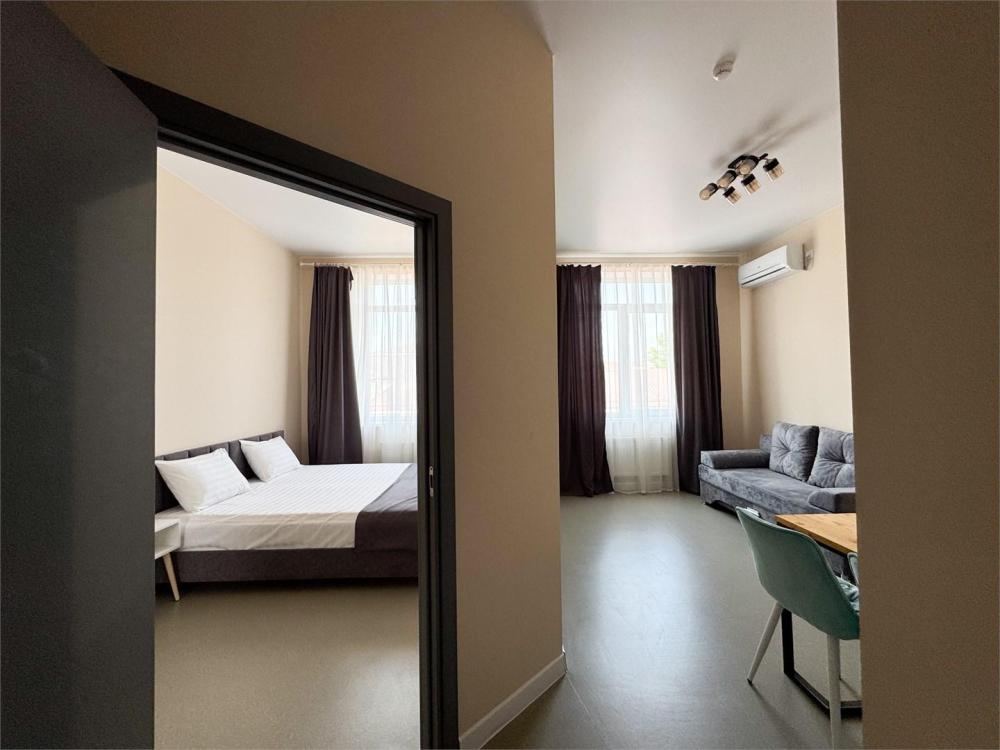 В комнате гостиная и спальня с межкомнатной дверью; двуспальная кровать (DBL), ортопедический матрас, мягкая мебель, ТВ, мини-холодильник, Wi-Fi, чайник, чашки, чай и кофе. Совмещенный санузел с ванной, фен, гигиенические средства, косметические средства, полотенца, сушилка для белья. Доп. место – раскладывающийся диван.