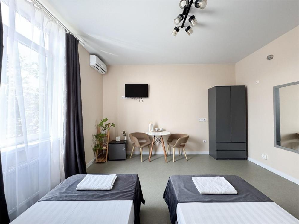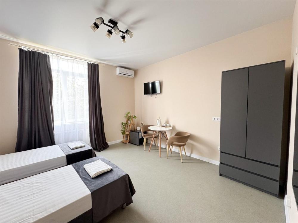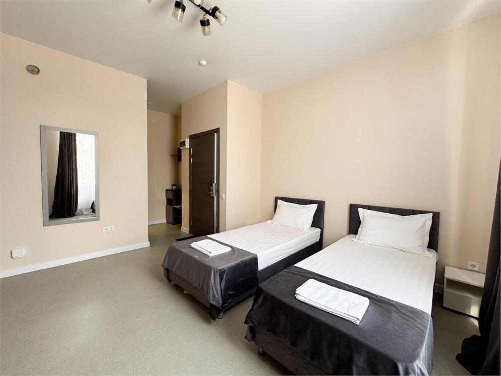 В комнате кровати системы трансформер (TWIN/ DBL), ортопедический матрас, мягкая мебель, ТВ, мини-холодильник, Wi-Fi, чайник, чашки, чай и кофе. Совмещенный санузел с ванной, фен, гигиенические средства, косметические средства, полотенца, сушилка для белья).