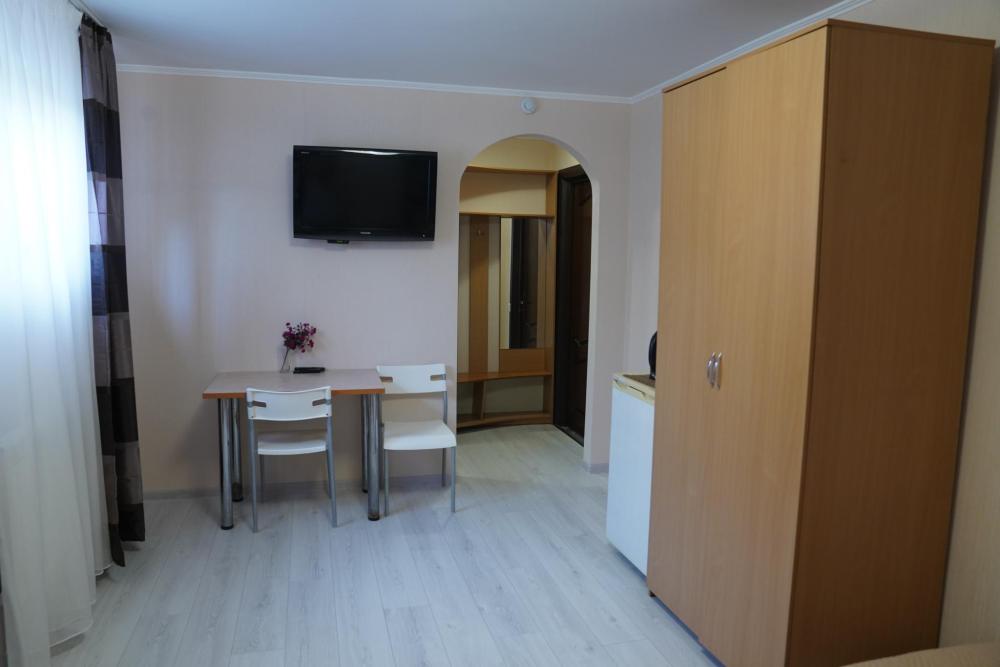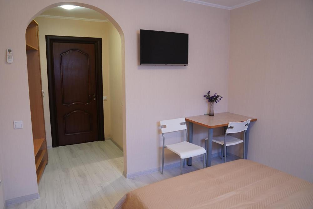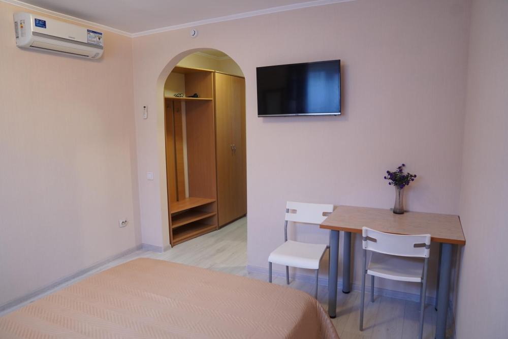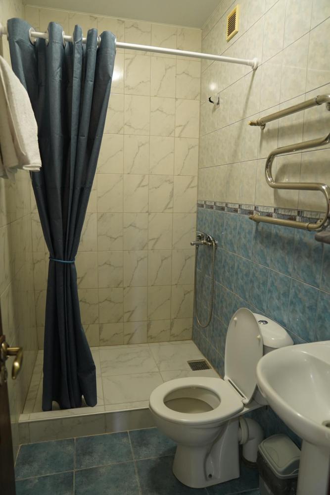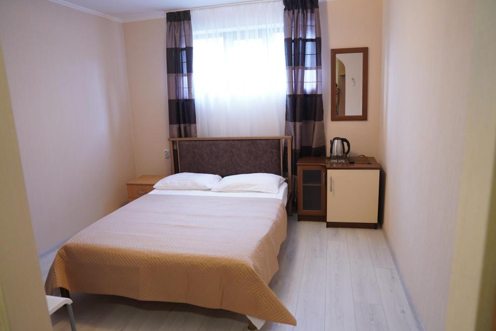 Двухместный номер В номере: двуспальная кровать, стол, стулья, шкаф, прикроватные тумбочки, кондиционер, набор постельного белья, телевизор. В ванной: туалет, раковина, душевая кабина, средства личной гигиены, тапочки, зеркало, набор полотенец.
