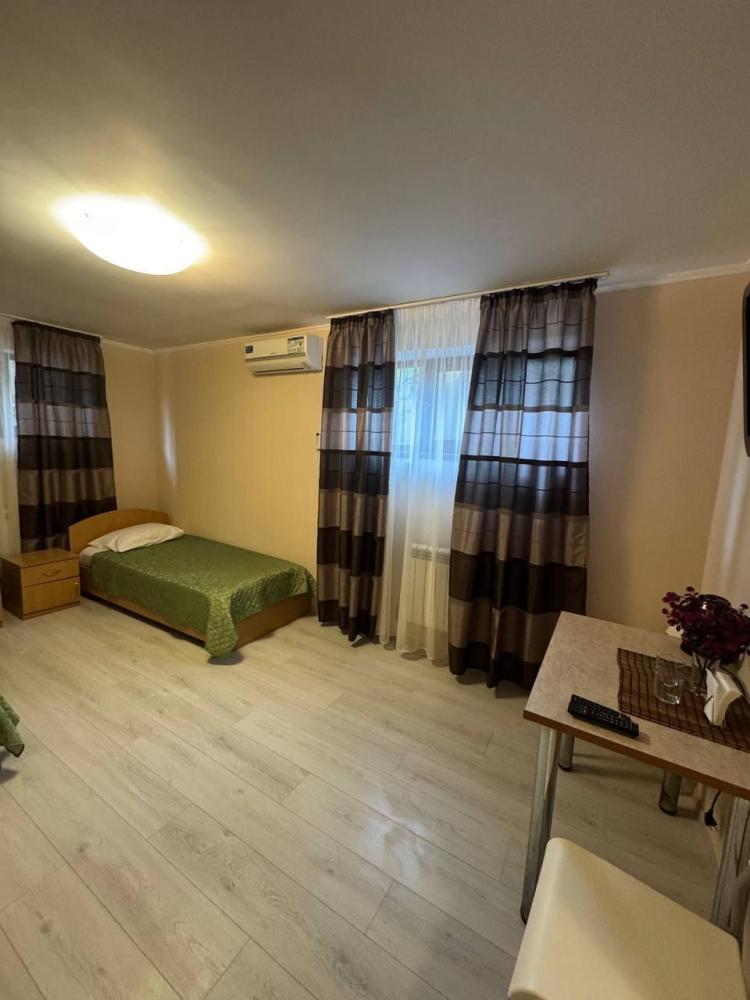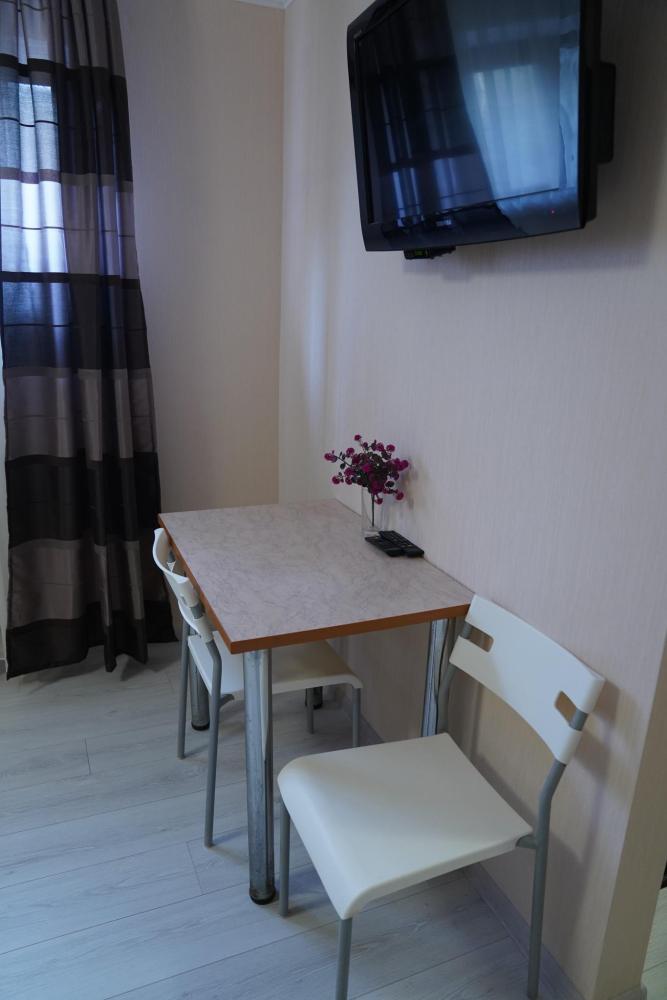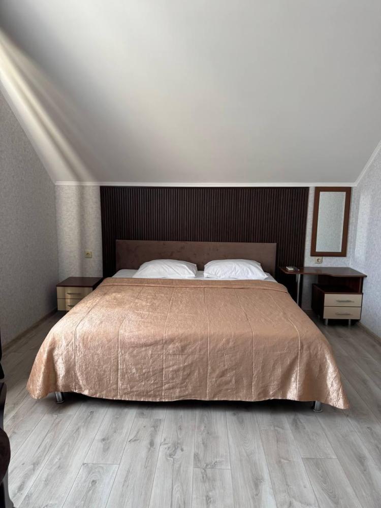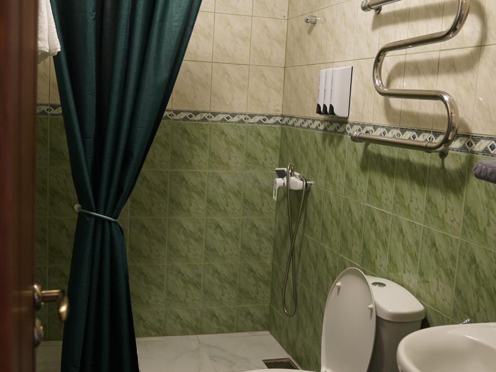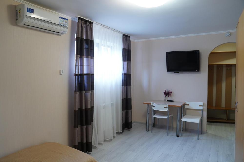 Двухместный номер В номере: двуспальная кровать, стол, стулья, шкаф, прикроватные тумбочки, кондиционер, набор постельного белья, телевизор. В ванной: туалет, раковина, душевая кабина, средства личной гигиены, тапочки, зеркало, набор полотенец.