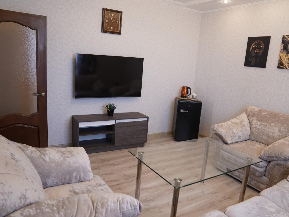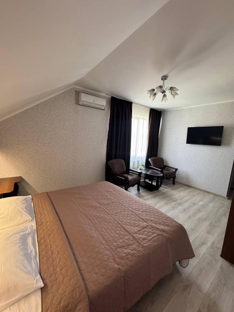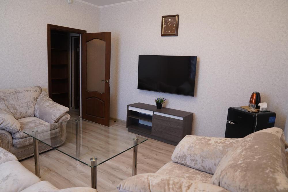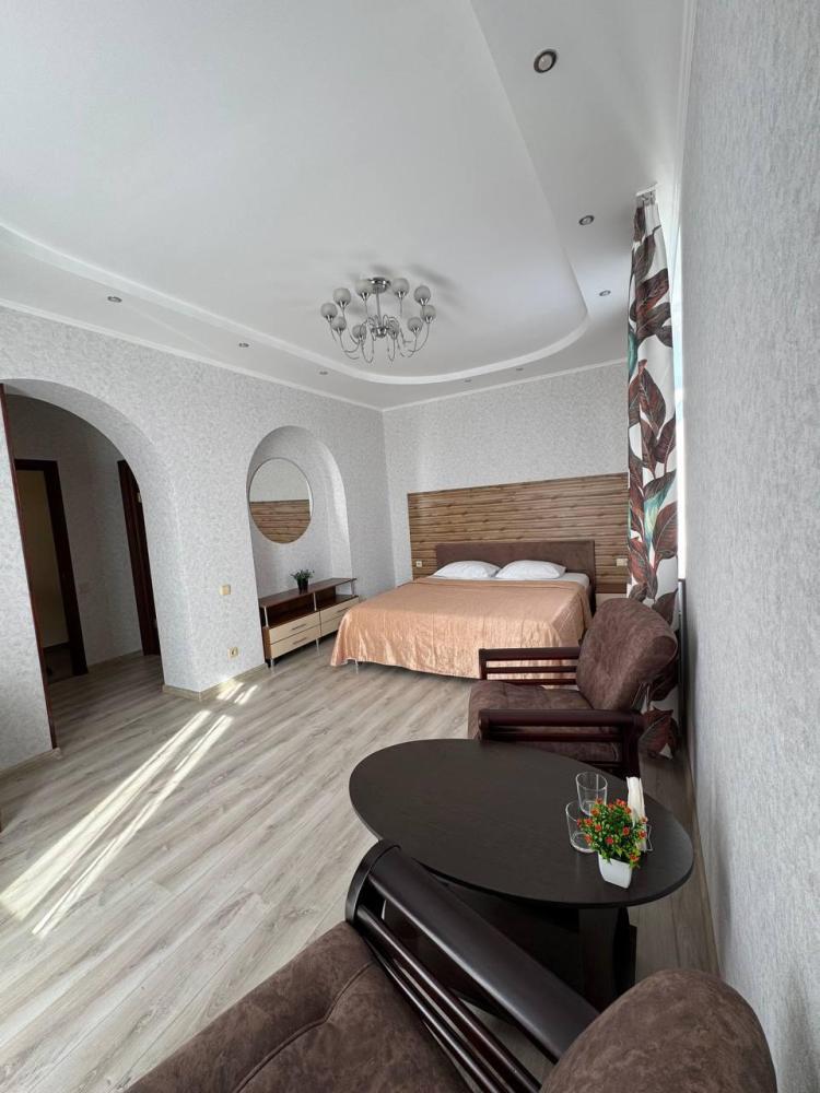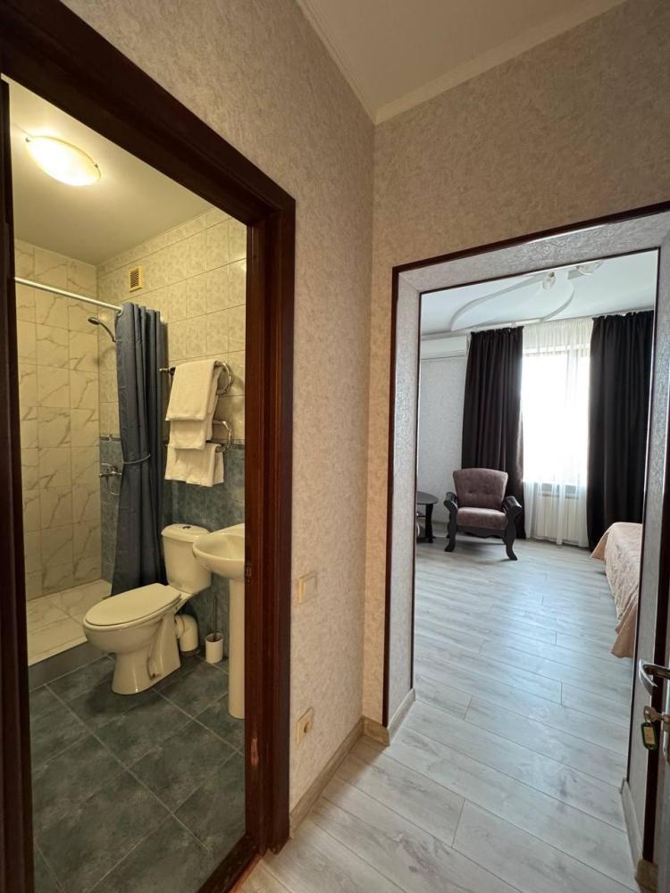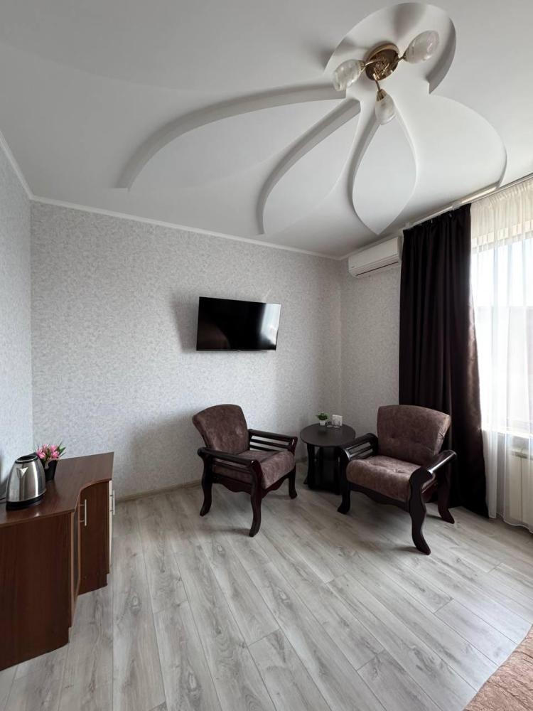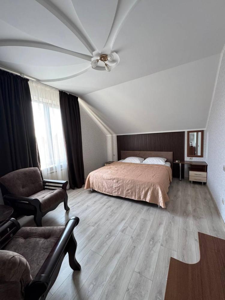 Двухместный номер. В номере: двуспальная кровать, прикроватная тумбочка, туалетный столик, шкаф-купе, кондиционер, зеркало, журнальный столик,кресла, набор постельного белья, телевизор, холодильник. В ванной: унитаз, раковина, душевая кабина, средства личной гигиены, тапочки, зеркало, набор полотенец.
