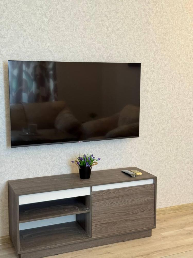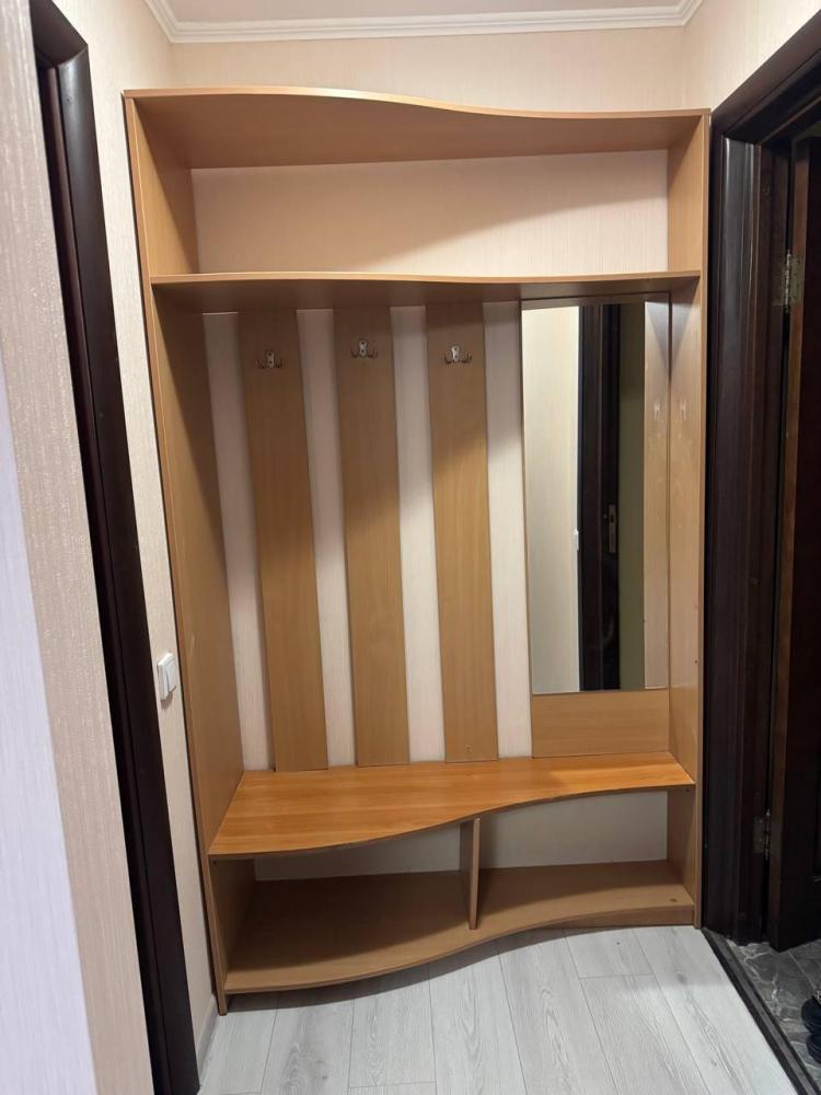 В комнате: двуспальная кровать, шкаф, прикроватная тумбочка, туалетный столик, шкаф-купе, кондиционер, зеркало, журнальный столик, кресла, телевизор. В ванной: унитаз, раковина, душевая кабина, средства личной гигиены, зеркало, набор полотенец.