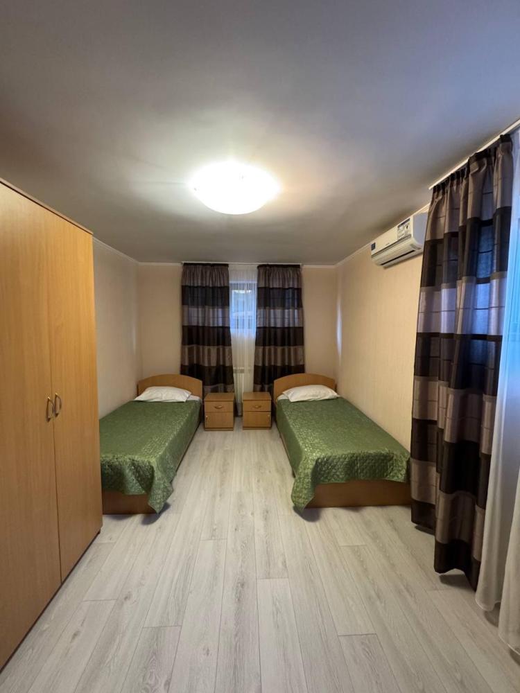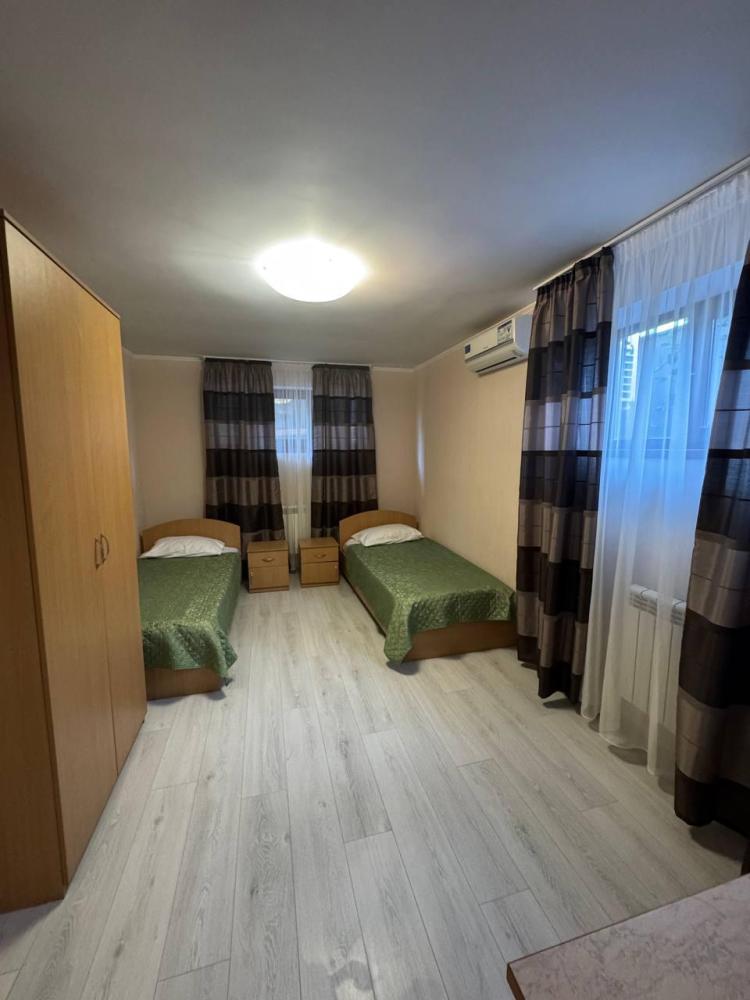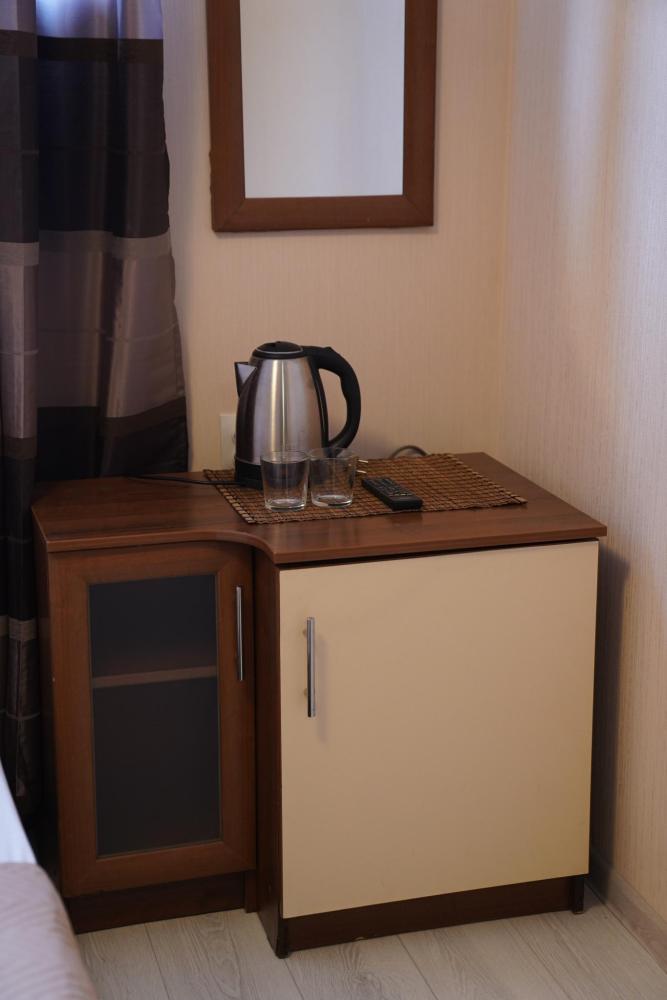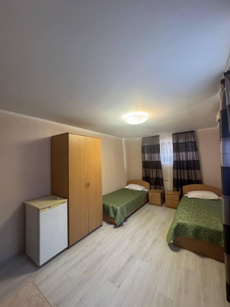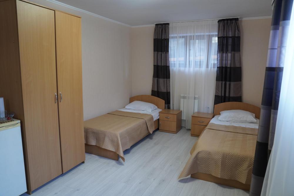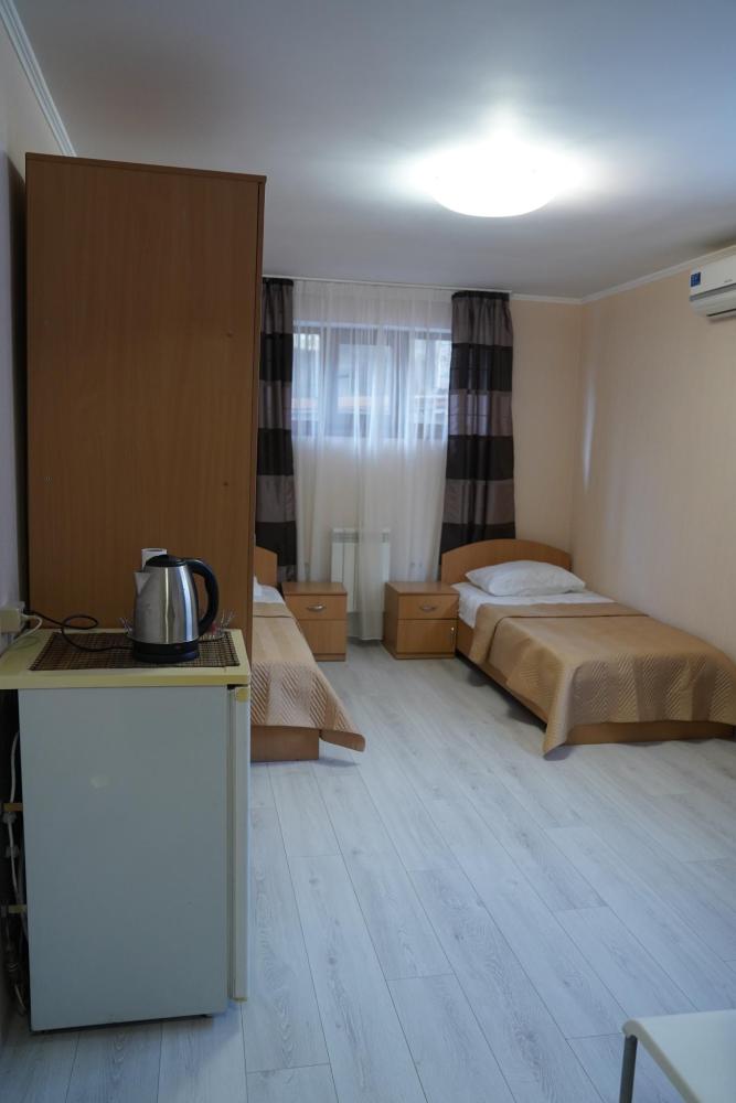 В номере: 2 односпальные кровати, стол, стулья, шкаф, прикроватные тумбочки, зеркало, кондиционер, набор постельного белья, телевизор, холодильник. В ванной: туалет, раковина, душ, средства личной гигиены, зеркало, набор полотенец, фен.