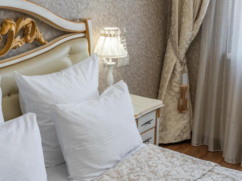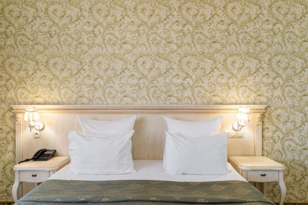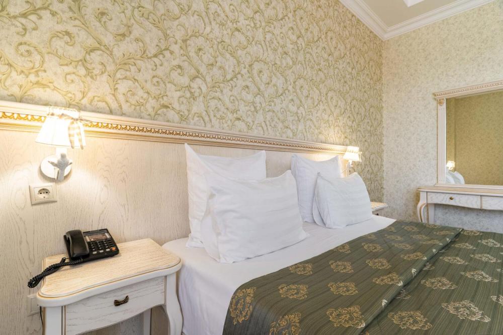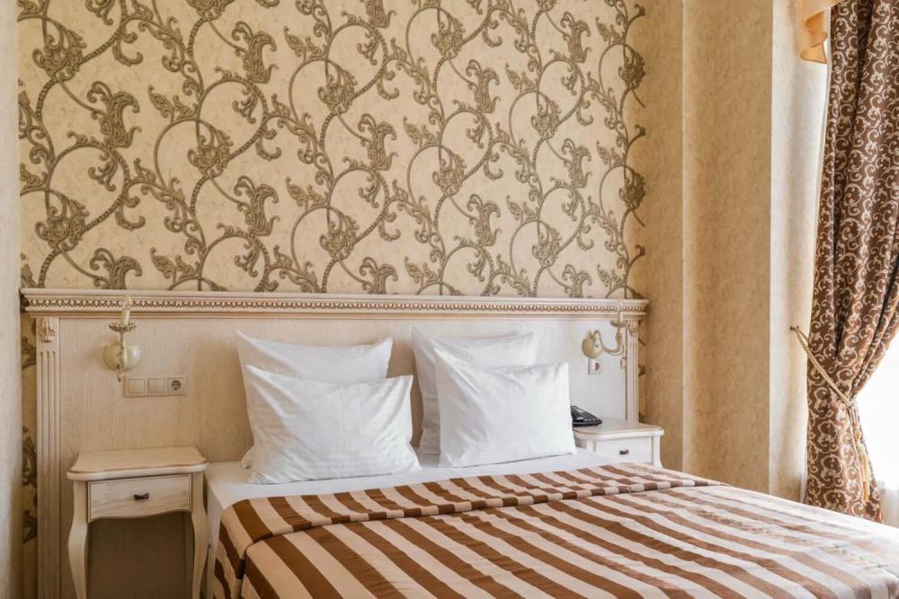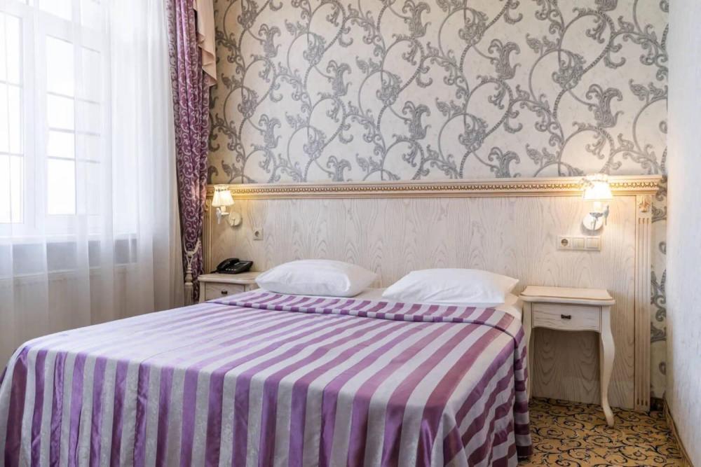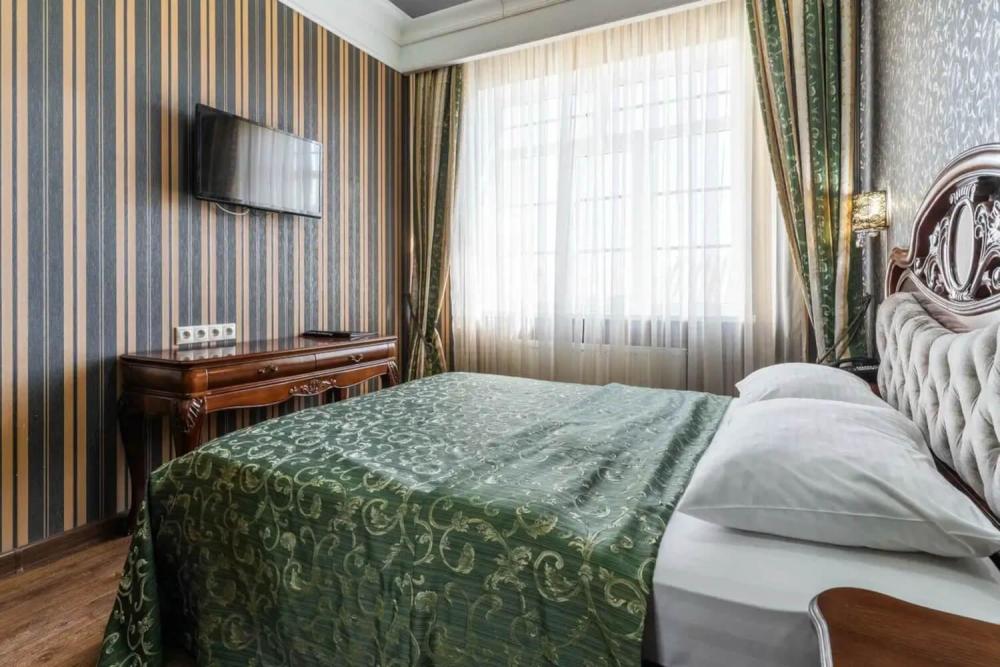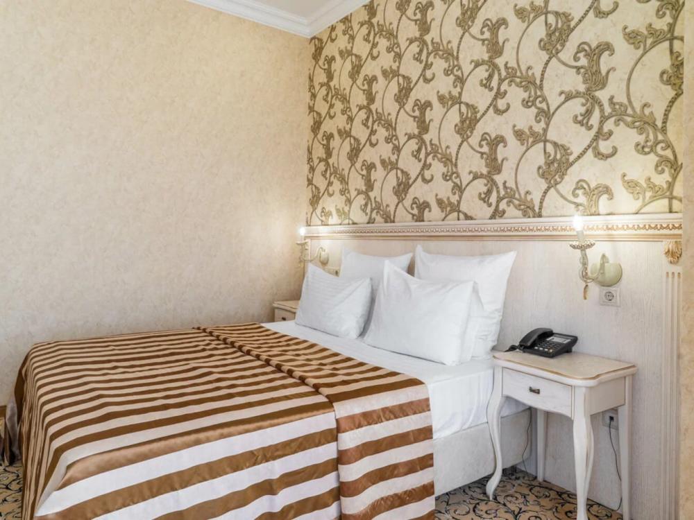 Классический номер с сдержанным интерьером, оборудованный двуспальной кроватью, прикроватными тумбами с прикроватными бра а также рабочим столом и ТВ с доступом в интернет. Шкаф-купе с вешалками и полками, сейф и мини-бар. Также в номере имеется свой санузел с душевой кабиной укомплектованный полотенцами, халатами, тапочками и феном, а также туалетно-косметическими принадлежностями.