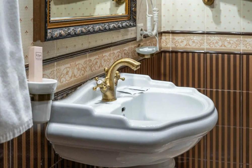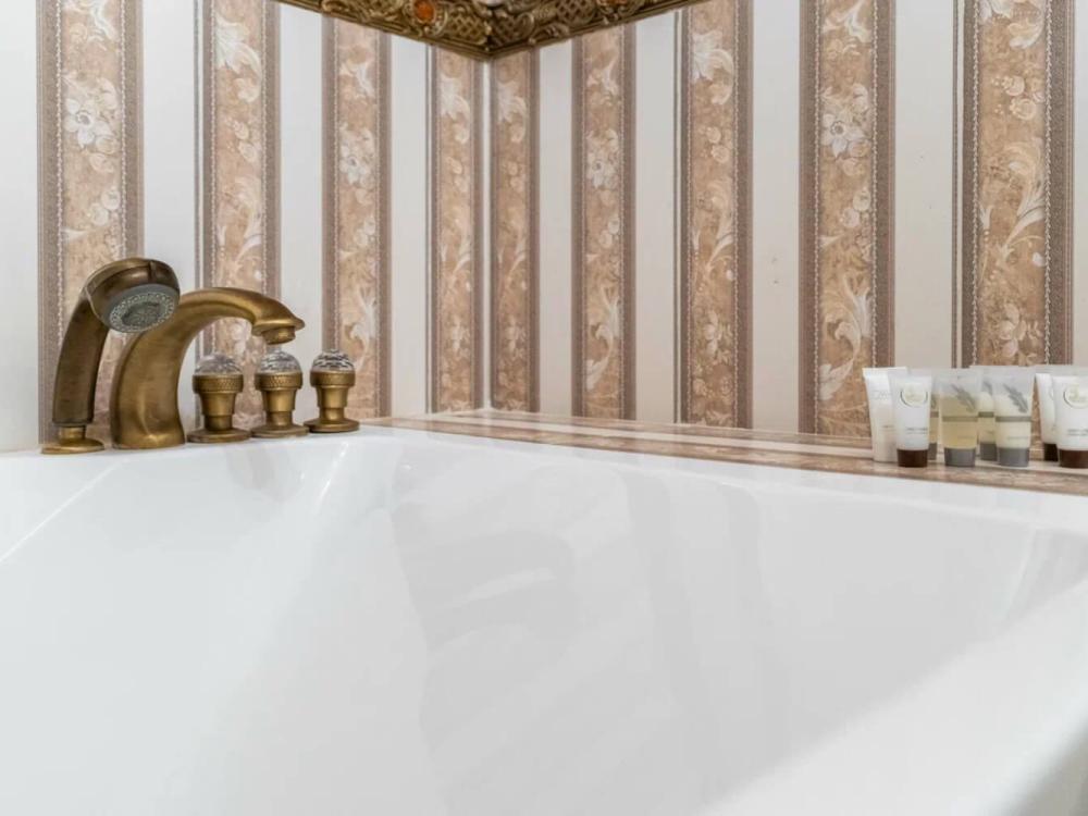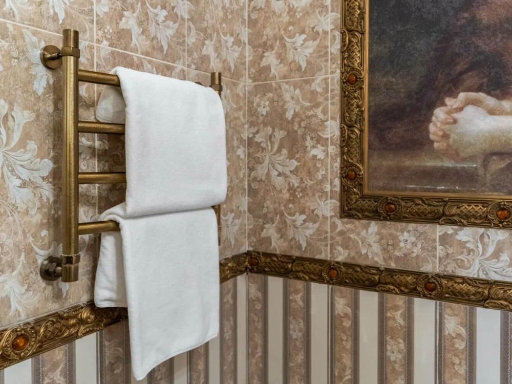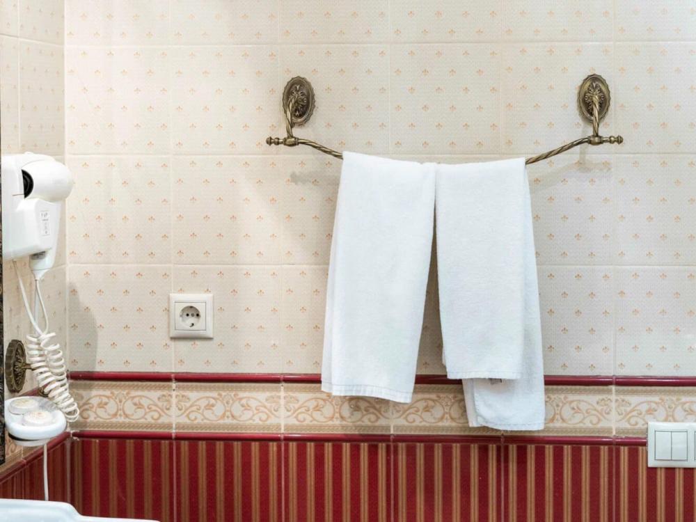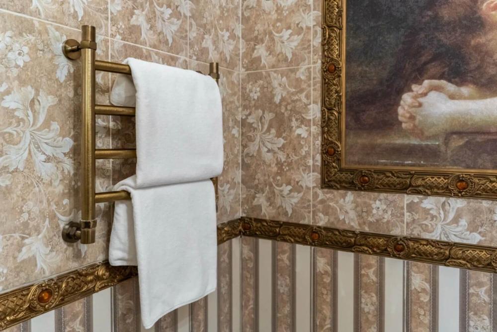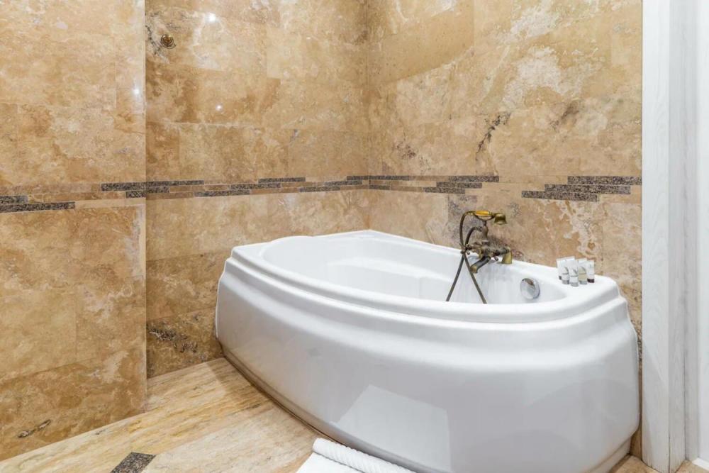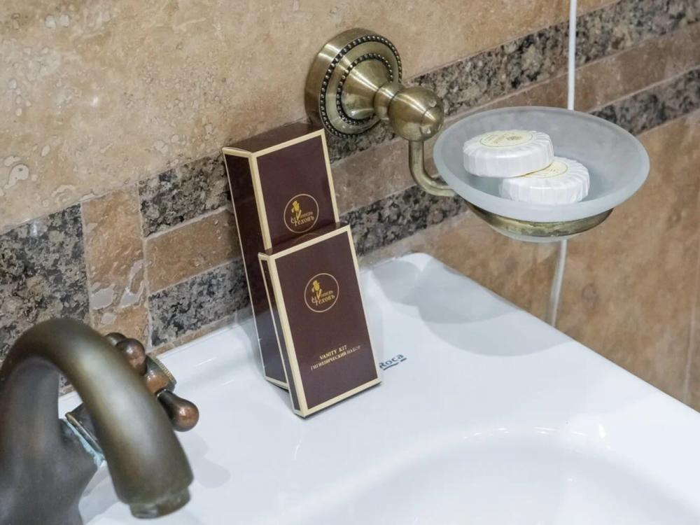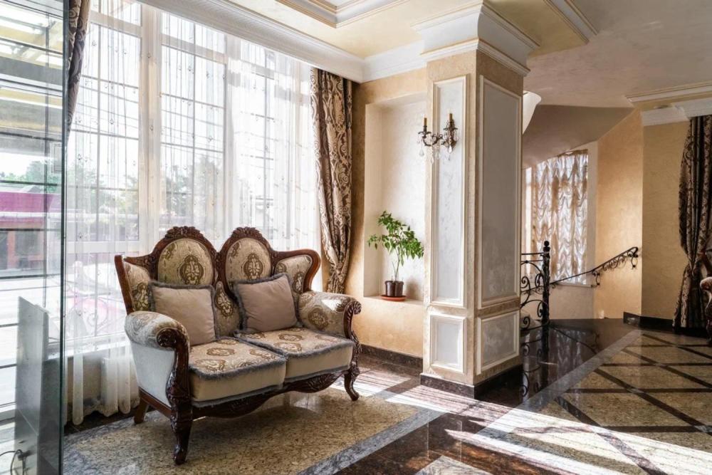 Изысканный номер в классическом стиле состоит из гостиной и спальни. В номере есть все необходимое для комфортного проживания двух гостей — большая двуспальная кровать, распашной шкаф, мягкая мебель, трюмо с зеркалом, телевизор, сейф. Дизайнерская ванная оснащена большой ванной и биде. Для гостей предоставляются полотенца, халаты, тапочки, фен, набор туалетно-косметических принадлежностей.