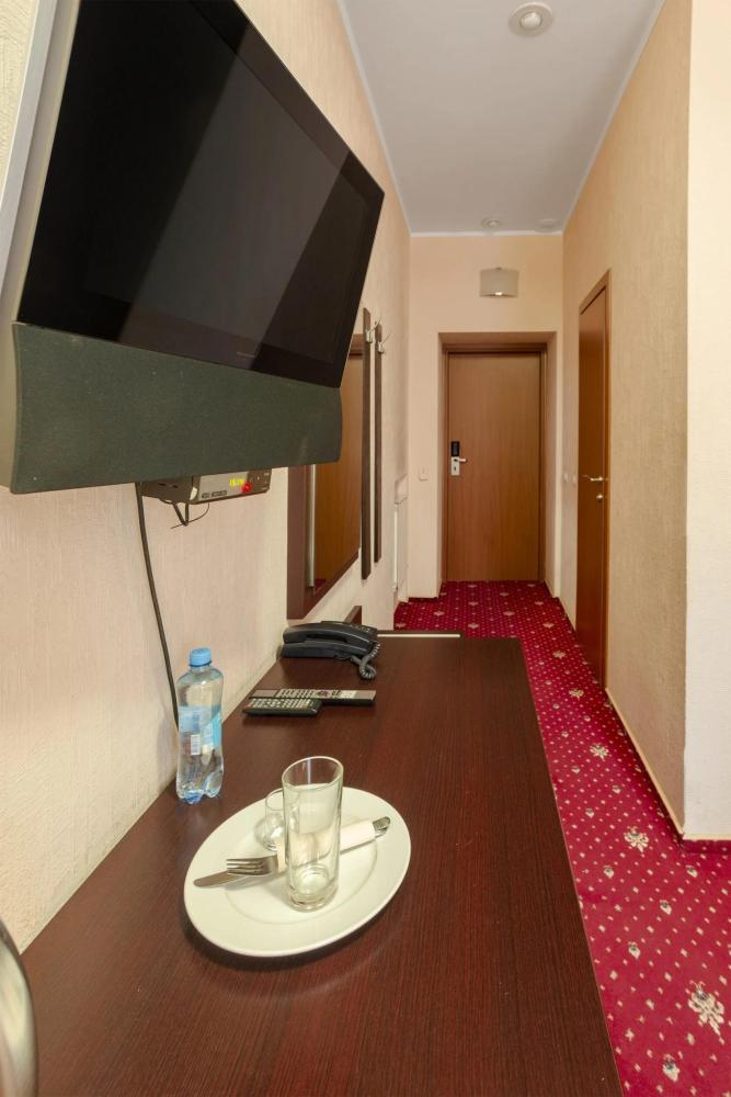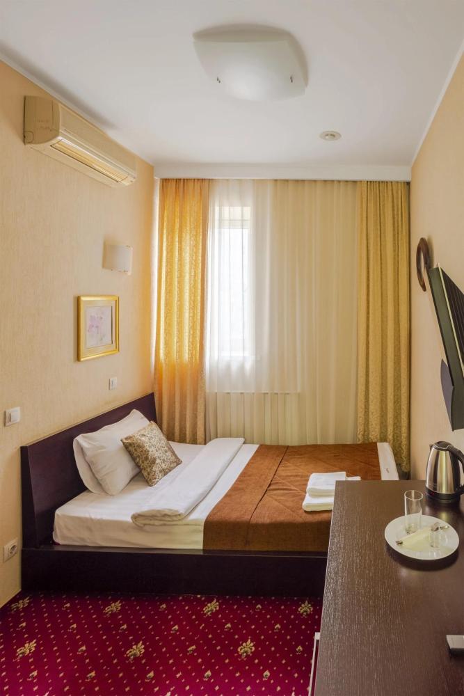 Однокомнатный номер стандарт общей площадью 22 м² для размещения до 2-х гостей. Для комфортного проживания гостей номер оснащен всем необходимым: кровать 200 x 160, прикроватные тумбочки, постельные принадлежности, сплит, холодильник, зеркало, письменный стол, шкаф, интернет, телевизор, душевая кабина, санузел, фен, косметические принадлежности.