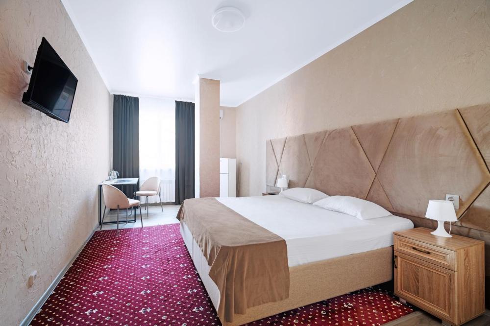 Уважаемые гости, приглашаем вас посетить наши уютные, комфортные а самое главное новые, высококачественные номера по очень приемлемым ценам! Абсолютно новая мебель, просторные номера, свежее постельное белье, чистота и уют, что на минуточку отличает нас от всех. Ждем вас в гости! Номер "Стандарт" располагает собой размещение для двух гостей на совместной двухспальной кровати. Во всех номерах данной категории располагается: -уборная; -сплит система; -телевизор; -холодильник; -шкаф; -стол, стулья; -чайник; -столовые принадлежности; -большое зеркало, и также среднего размера в уборной для наших привлекательных гостей! -в зимний период отопление; -прикроватные тумбочки; -бесключевой доступ в ваш номер (карта); -новые комфортные матрасы, для вашего приятного отдыха и сна! Также немаловажный ресурс Wi-Fi на всей территории гостиницы! Присутствует общая кухня. Вход в отель круглосуточно с помощью вашей магнитной карты!
