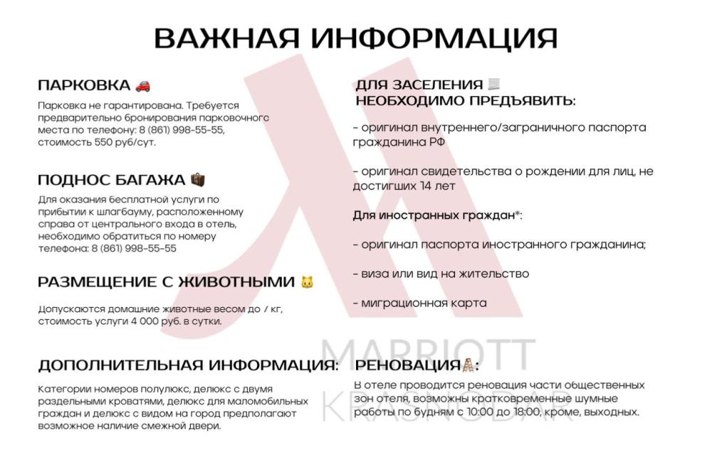 Из номера с обновленным дизайном открывается прекрасный вид на город. Он отлично подойдет для проживания одного или двух человек. Идеальное место, чтобы провести время только вдвоем, или разместиться в период командировки. Парковка не гарантирована. Требуется предварительное бронирование парковочного места по телефону. Парковка не гарантирована. Количество мест ограничено. Требуется бронирование парковочного места по телефону: 8 (861) 998-55-55, стоимость 550 руб/сут. Для оказания бесплатной услуги подноса багажа по прибытии к шлагбауму, расположенному справа от центрального входа в отель, необходимо обратиться по номеру телефона: 8 (861) 995-55 -55