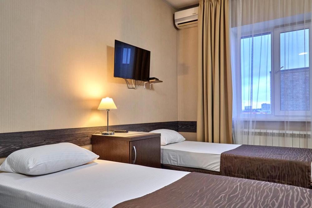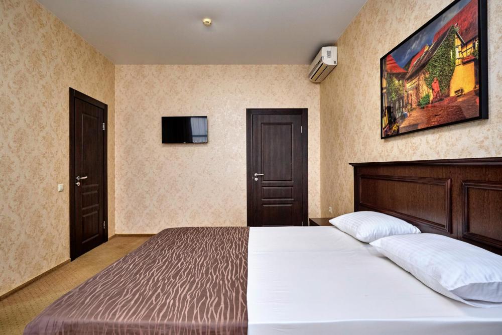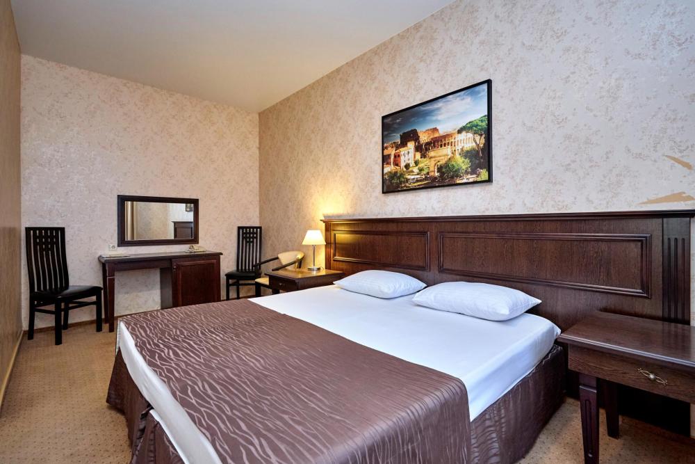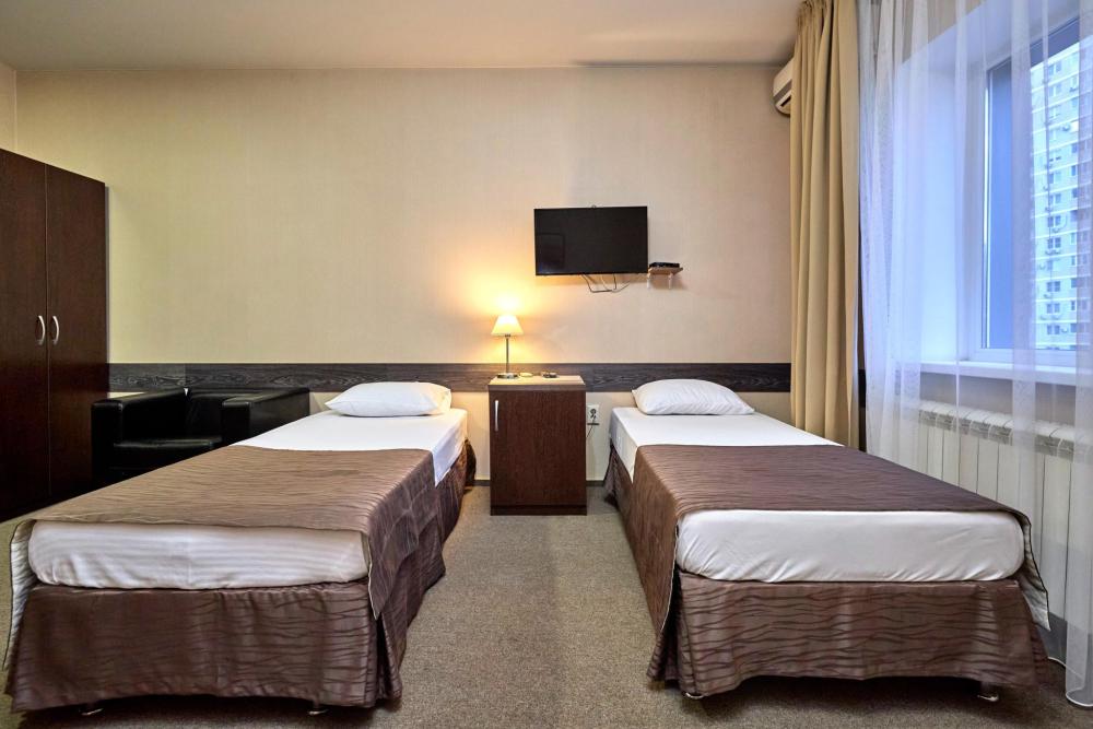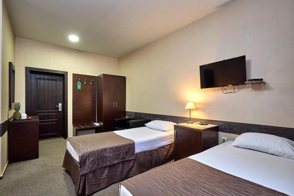 Двухместный номер стандарт, оборудованный всем необходимым для комфортного проживания. В номере: двуспальная или 2 односпальные кровати, комплект мебели, телевизор, кондиционер, санузел с душем.