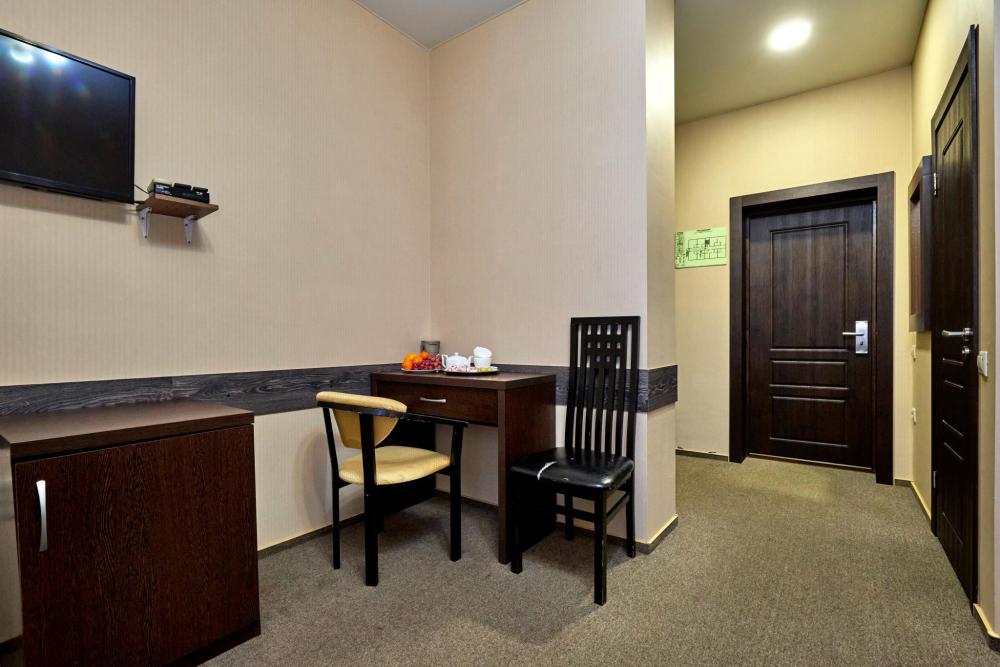 Двухместный номер полулюкс, оборудованный всем необходимым для комфортного проживания. В номере: двуспальная кровать, комплект мебели, телевизор, кондиционер, санузел с душем.