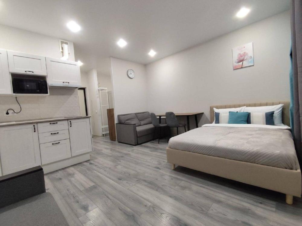 Студия с вместимостью до 2 гостей. В квартире есть все, что нужно для комфортного проживания: раскладной диван, WiFi, телевизор, постельное белье, полотенца, набор посуды, электроконфорка, электрический чайник, микроволновая печь, холодильник, стиральная машина, утюг,...
