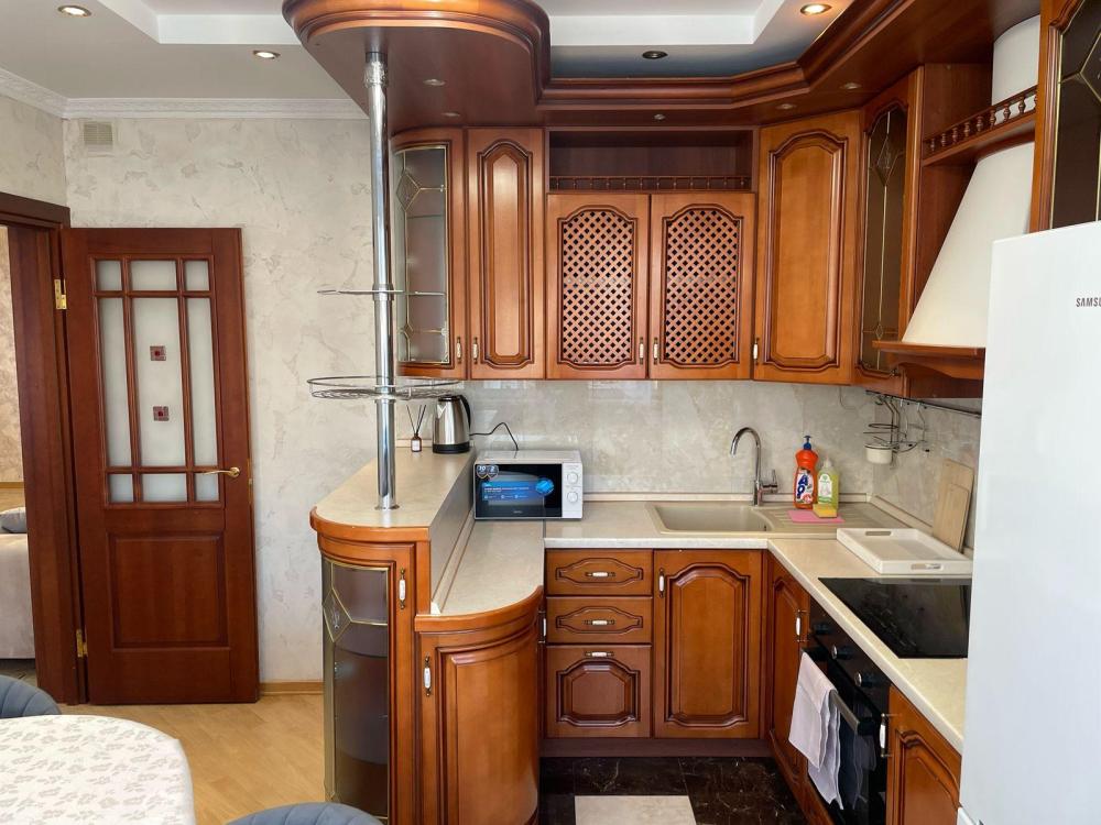 - электрическая плита, духовка, вытяжка, микроволновка, чайник, холодильник;