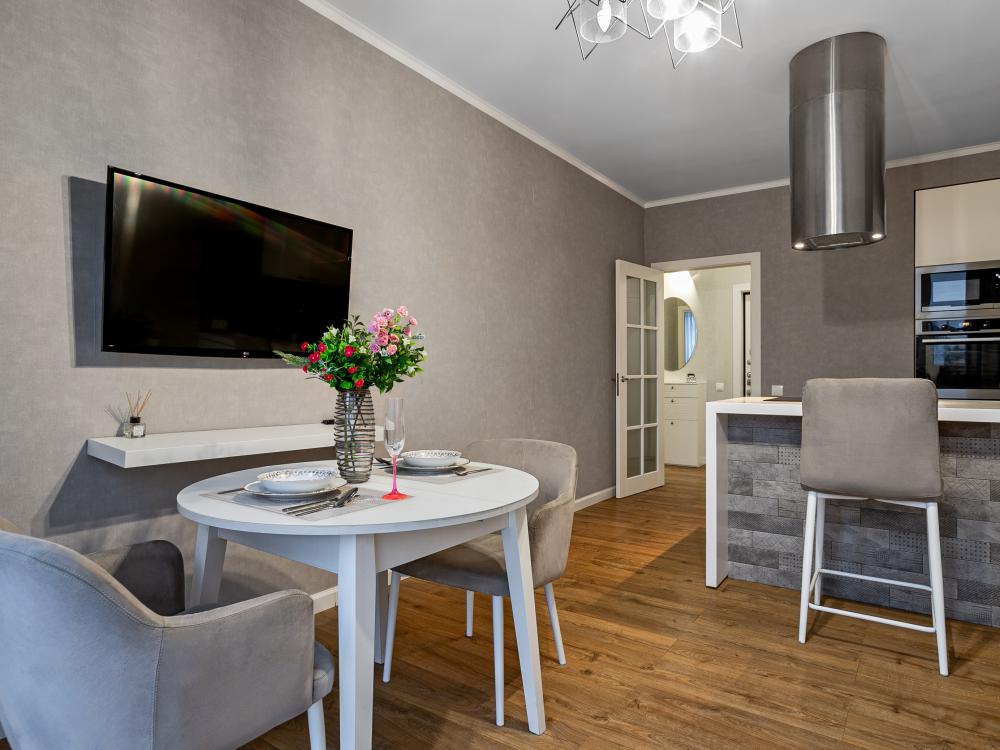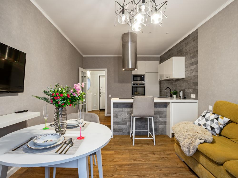 Однокомнатная квартира в новом доме со свежим ремонтом. Удобства: в квартире есть все необходимое для проживания, отдыха и работы: Wi-Fi, ТВ, стиральная машина, электрочайник, фен, утюг, вся необходимая посуда для приготовления и приема пищи, постельное белье, полотенца.
