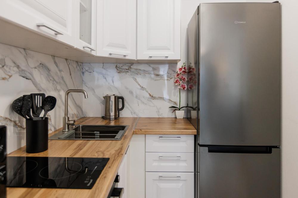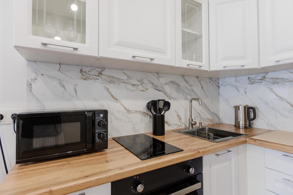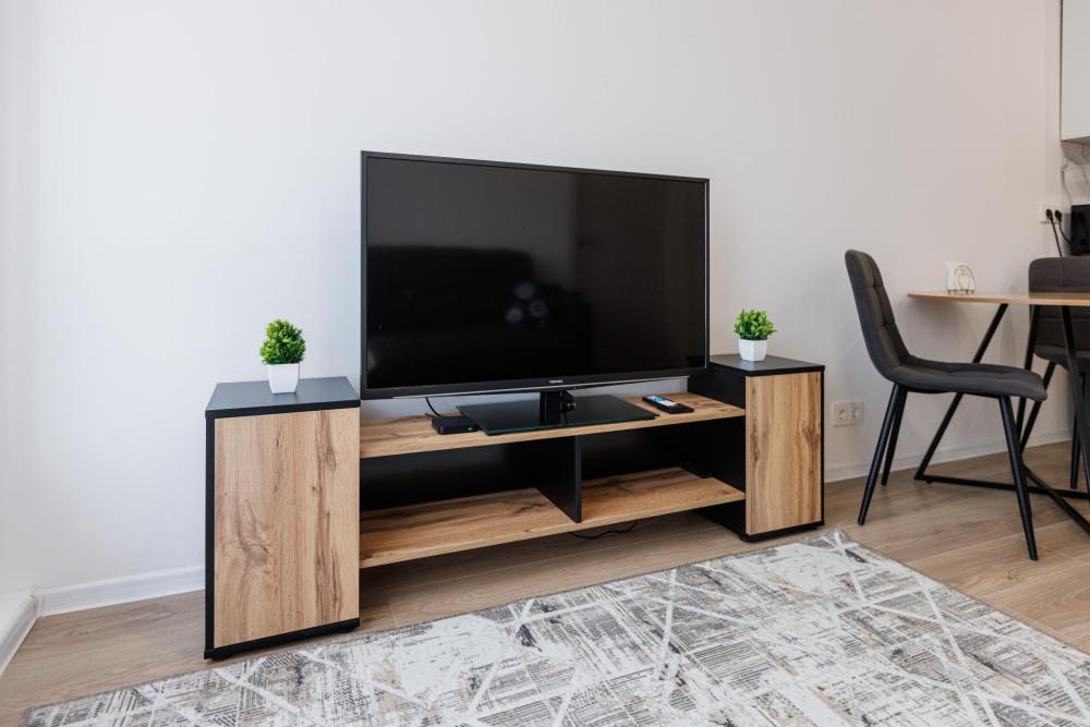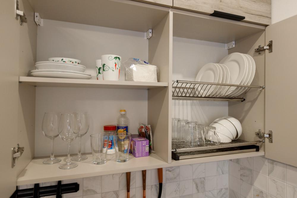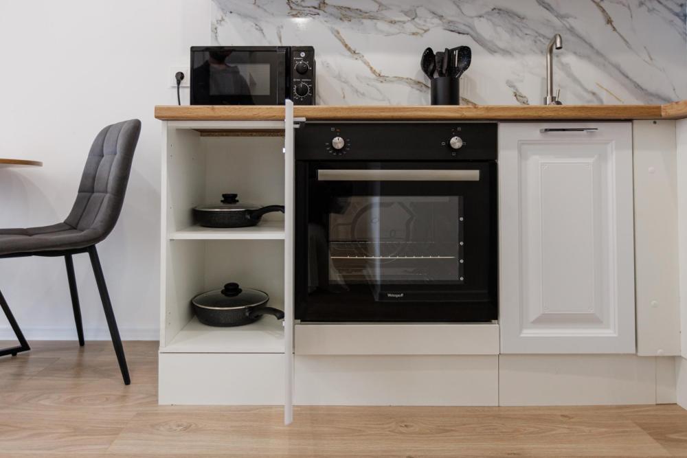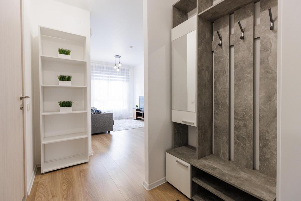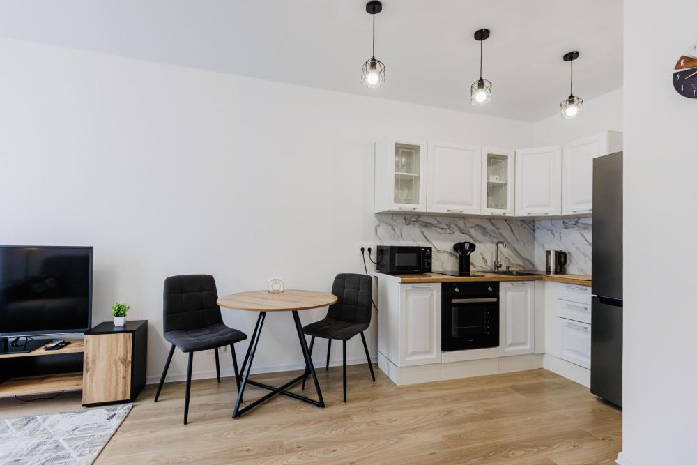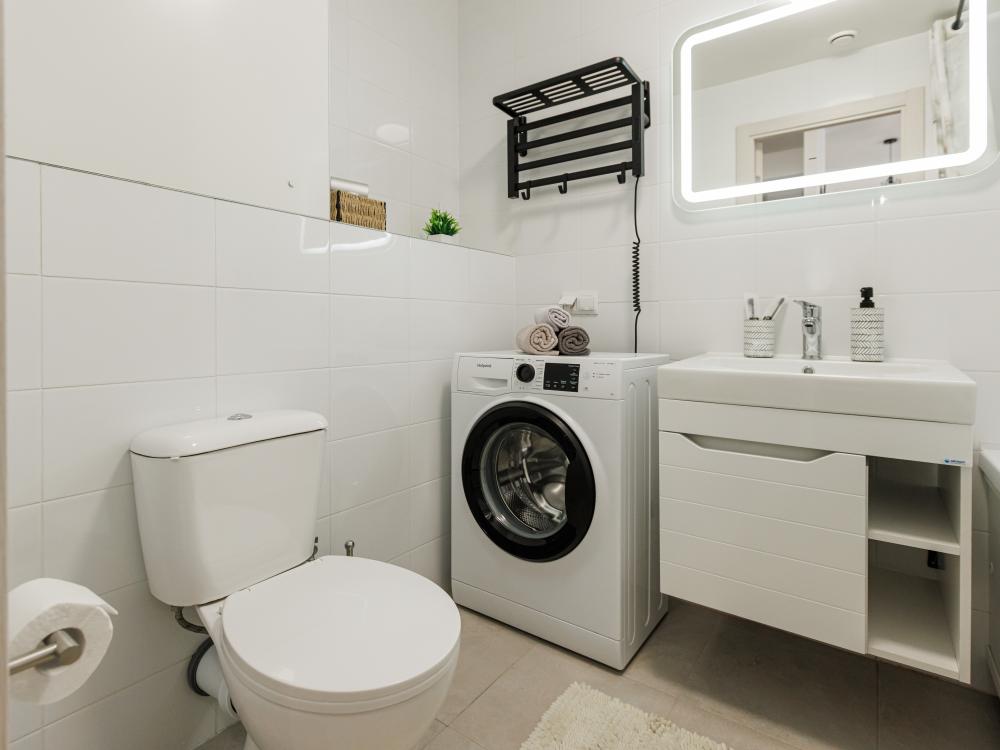 Апартаменты-студия подойдут для размещения 2-4 человек. Спальные места: двуспальная кровать с ортопедическим матрасом и раскладывающейся диван. Имеется все необходимое для комфортного проживания: высокоскоростной WI-FI и TV, стиральная машина, сушилка для белья, фен, гладильные принадлежности. В кухонной зоне: плита, холодильник, чайник, СВЧ-печь, посуда и кухонные принадлежности. Постельное белье, полотенца и средства личной гигиены предоставляются индивидуально.