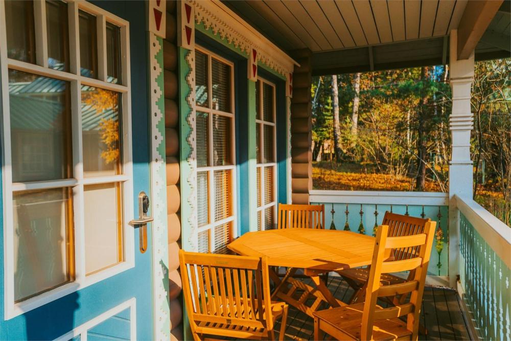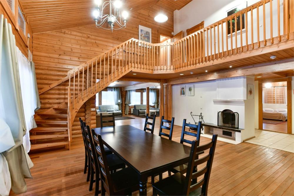 Дом с 4 спальнями, 2 с/у, каминный зал, сауна, терраса, оборудованная кухня. Интерьер и экстерьер коттеджей может отличаться от представленных фотографий. Конкретный номер дома присваивается накануне заезда.