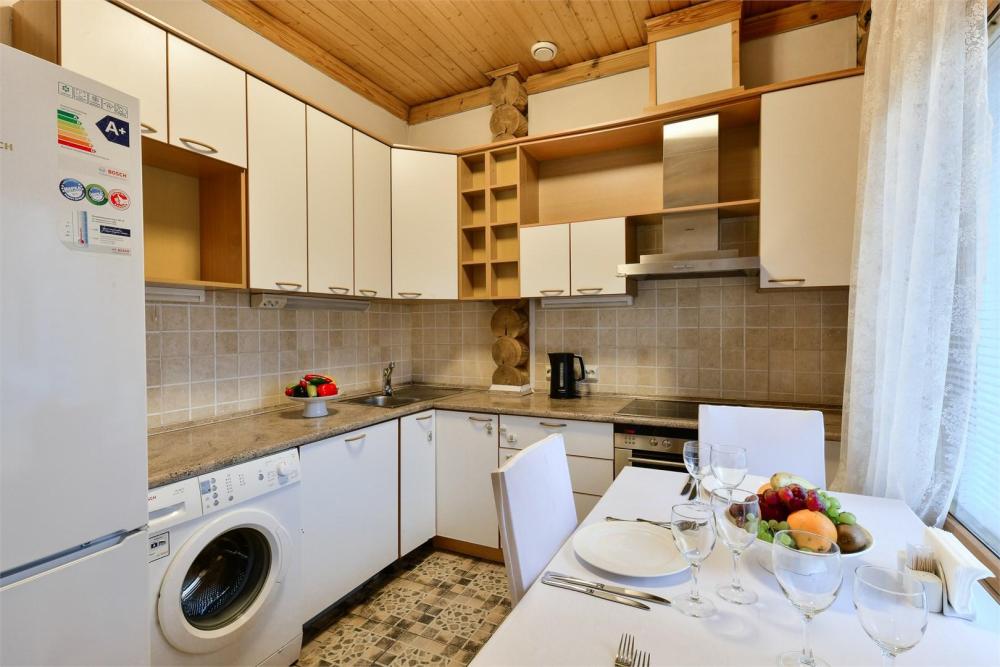 Все таунхаусы выполнены по одному проекту с планировкой: первый этаж: прихожая, гостиная, кухня, спальня с гардеробной комнатой, санузел с душевой кабиной второй этаж: 2 спальни и санузел с ванной. В гостиной каждого таунхауса выложен камин, создающий в доме особый уют. А также полностью оборудованная кухня с плитой, вытяжкой, духовкой, посудомоечной машиной и холодильником, встроенные шкафы. Интерьер таунхаусов может отличаться от представленных фотографий. Конкретный номер дома присваивается накануне заезда.